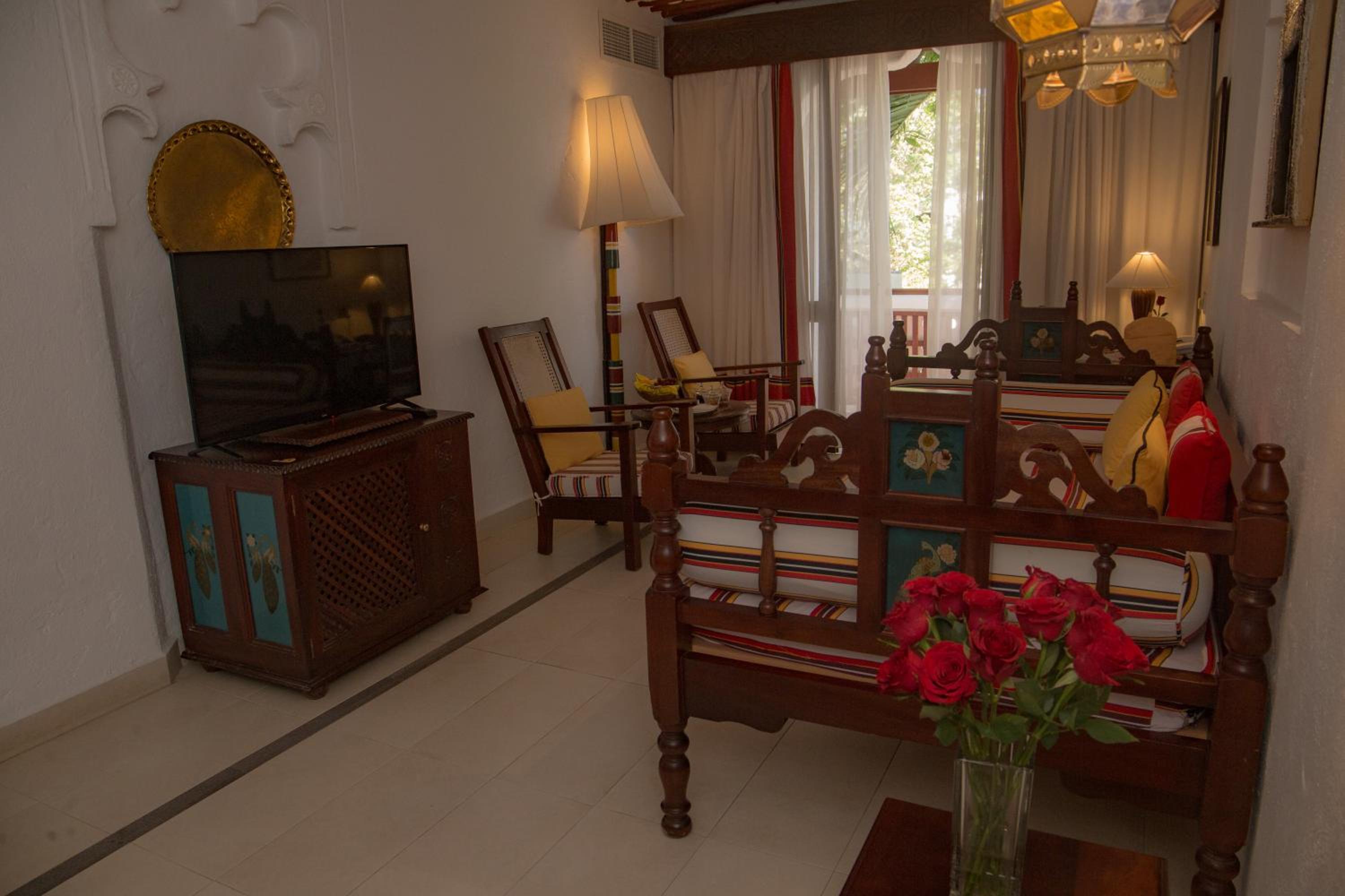 Experience comfort in spacious, air-conditioned rooms adorned with Swahili-style décor and cozy mosquito net-covered beds. Enjoy modern amenities like a TV, minibar, and a private bathroom in each room.