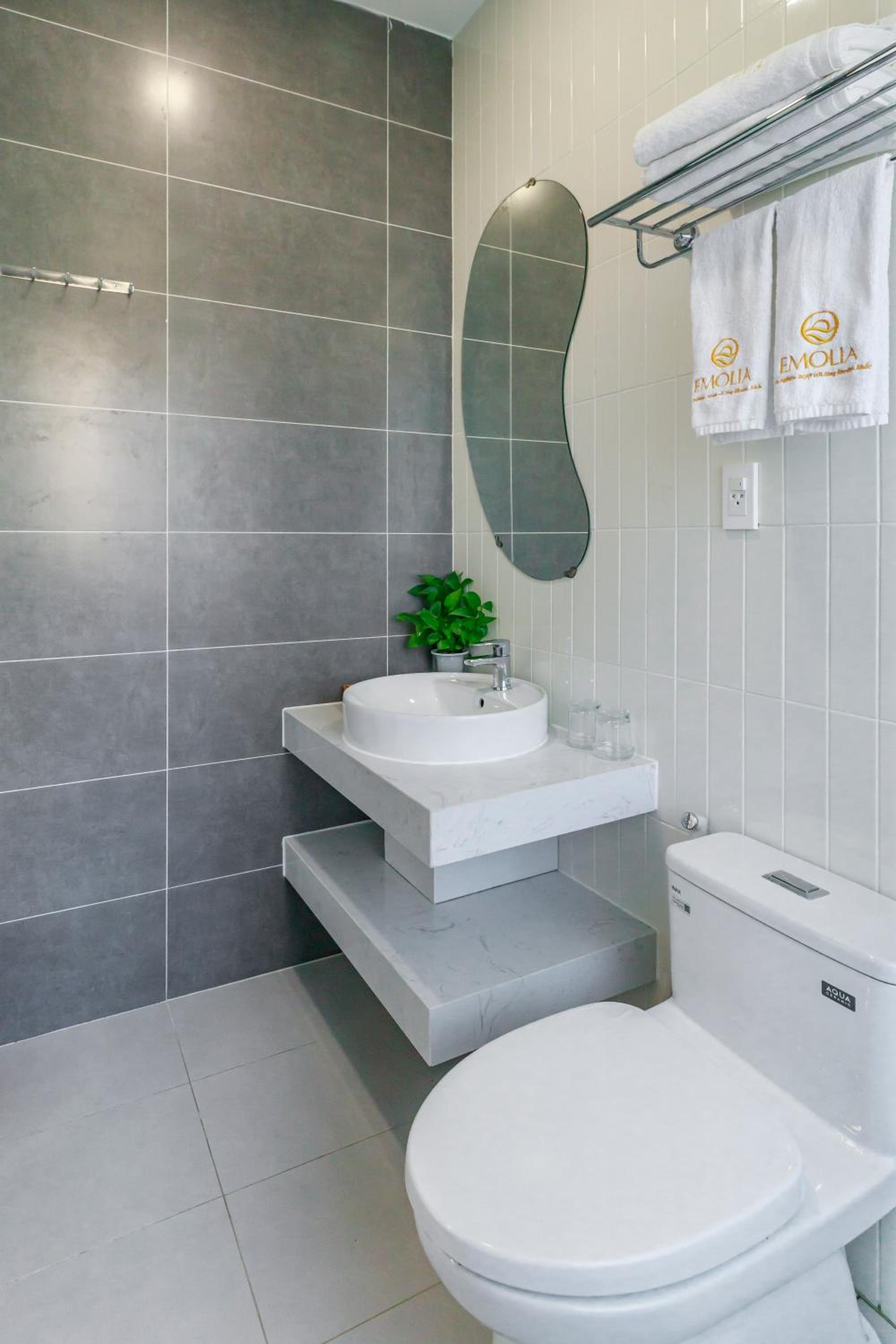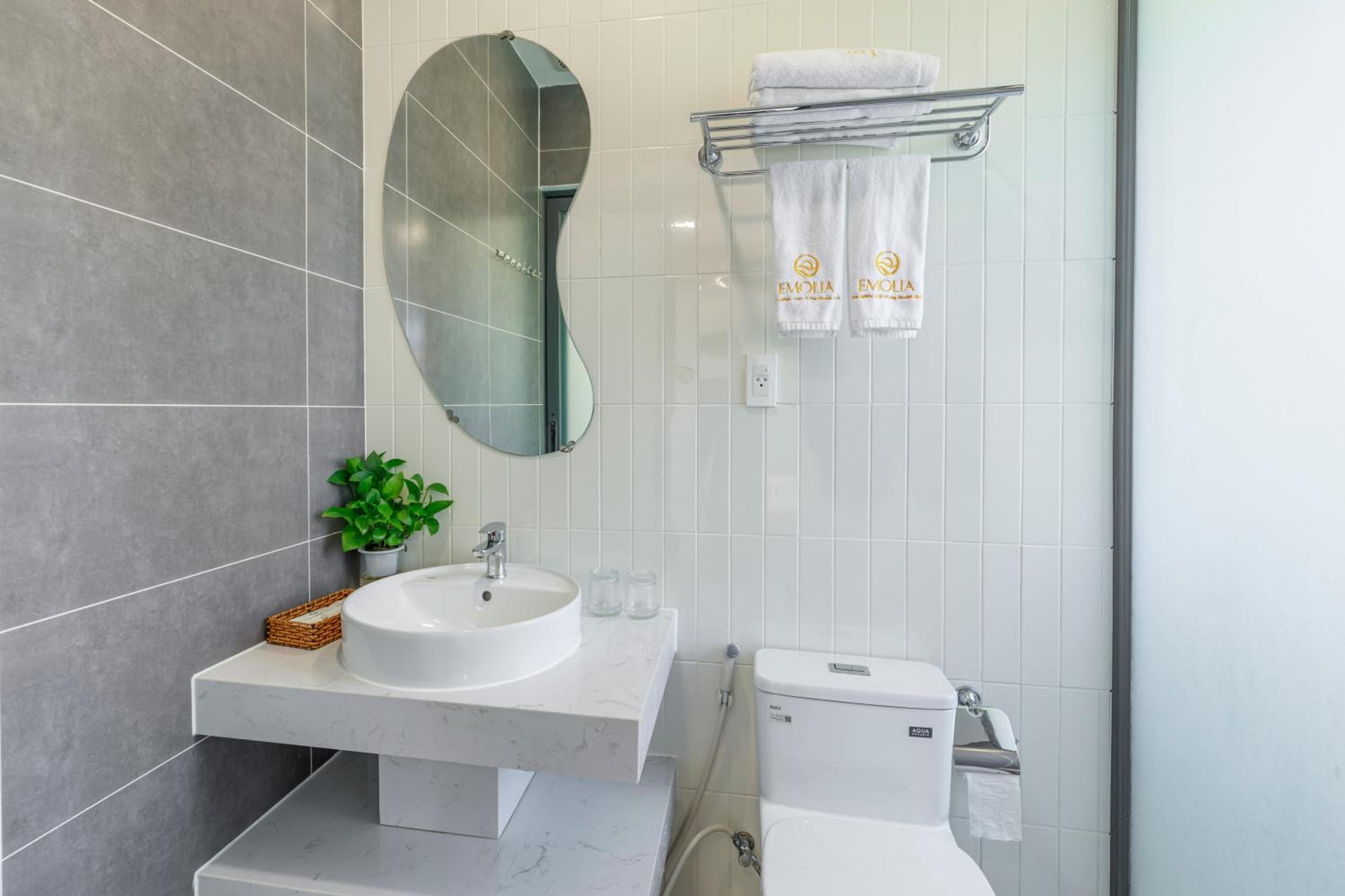 EMOLIA Phu Quoc hotel offers a luxurious stay with a bar, private beach area, and stunning city views. Guests can unwind at the terrace and enjoy the comfort of air-conditioned rooms with modern amenities.