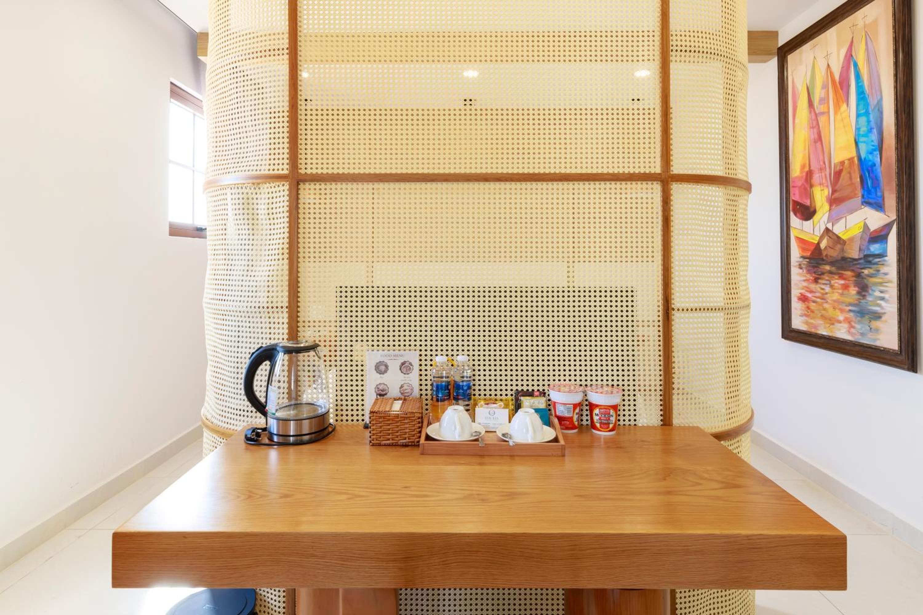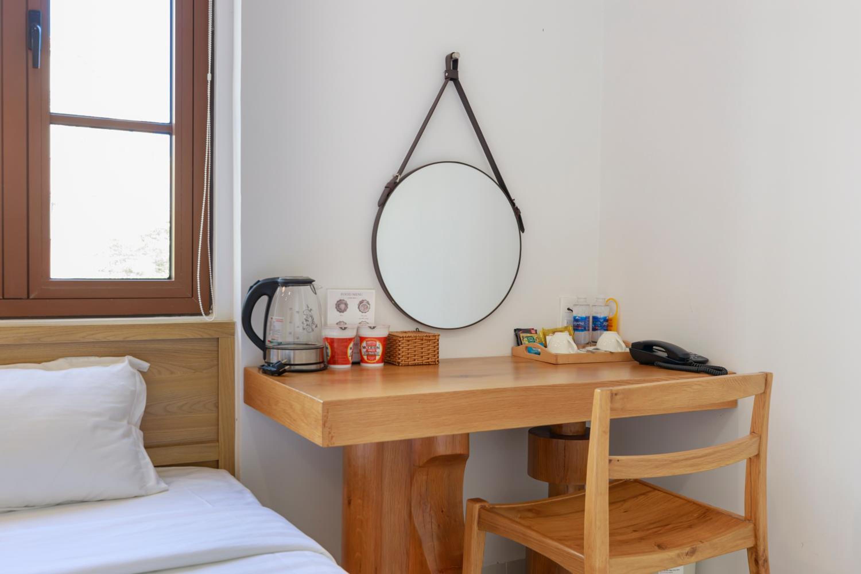 Mange faciliter som stod listet på Booking.com var ikke til stede. Bl.a. Minibar, Køleskab på værelset, Spa- og wellnescenter, Privat strand, lydisolerede værelser. Personalet var meget, meget unge, og kunne kun meget få ord på engelsk. De kunne ikke hjælpe med selv basale service informationer til turister. Morgenmaden var uden kaffe og te. Ville man have kaffe, skulle dette tilkøbes til et ekstra gebyr på 5% pga. de ikke laver kaffe på stedet, men henter det i en nærliggende cafe. Te kunne de ikke lave. Hvis vi var heldige fik vi et glas vand til morgenmaden, men de fleste dage glemte de det. Det er samme personale som både er i restaurenten og i hotellet, og de har tydeligvis ikke tjek på noget af det - eller også har de alt for travlt. De er søde og smilende, men meget lidt hjælpsomme. Alt i alt en skuffende oplevelse for os.
