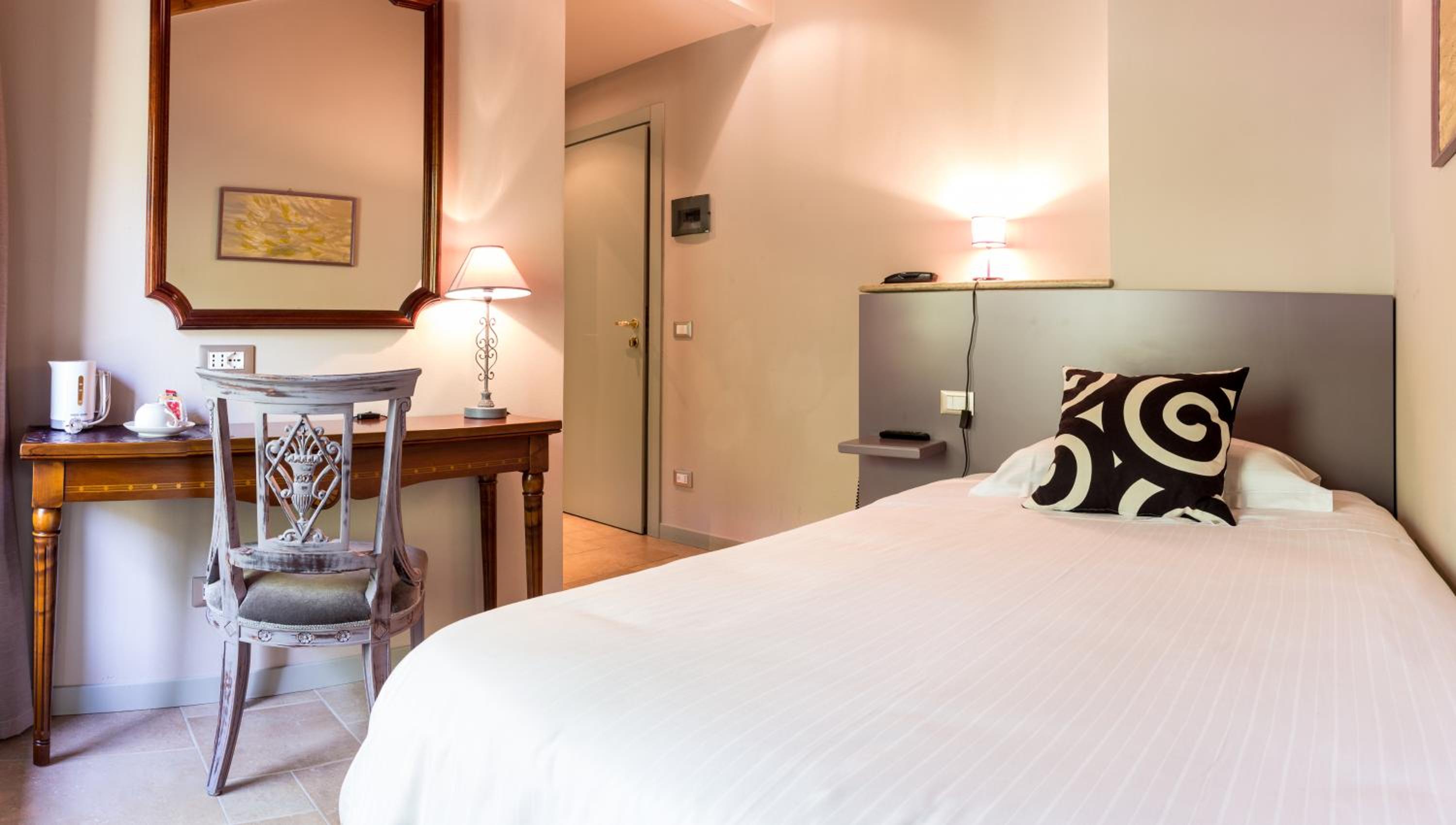 La camera è arredata con uno stile provenzale e di buon gusto.