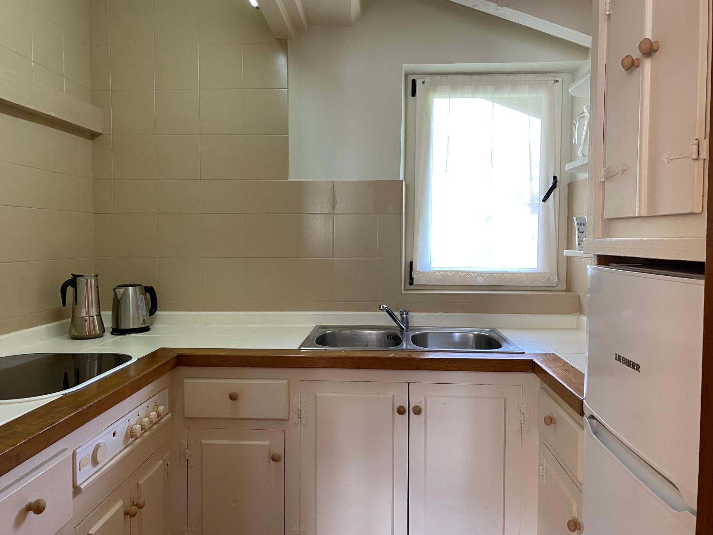 Mooie, verzorgde bloementuin en prachtig uitzicht het dal in vanaf ons appartement (no 5). Wij hadden een terras en de schuifdeur kon helemaal open, waardoor je als het ‘s avonds iets frisser werd alsnog het gevoel had buiten te zitten.