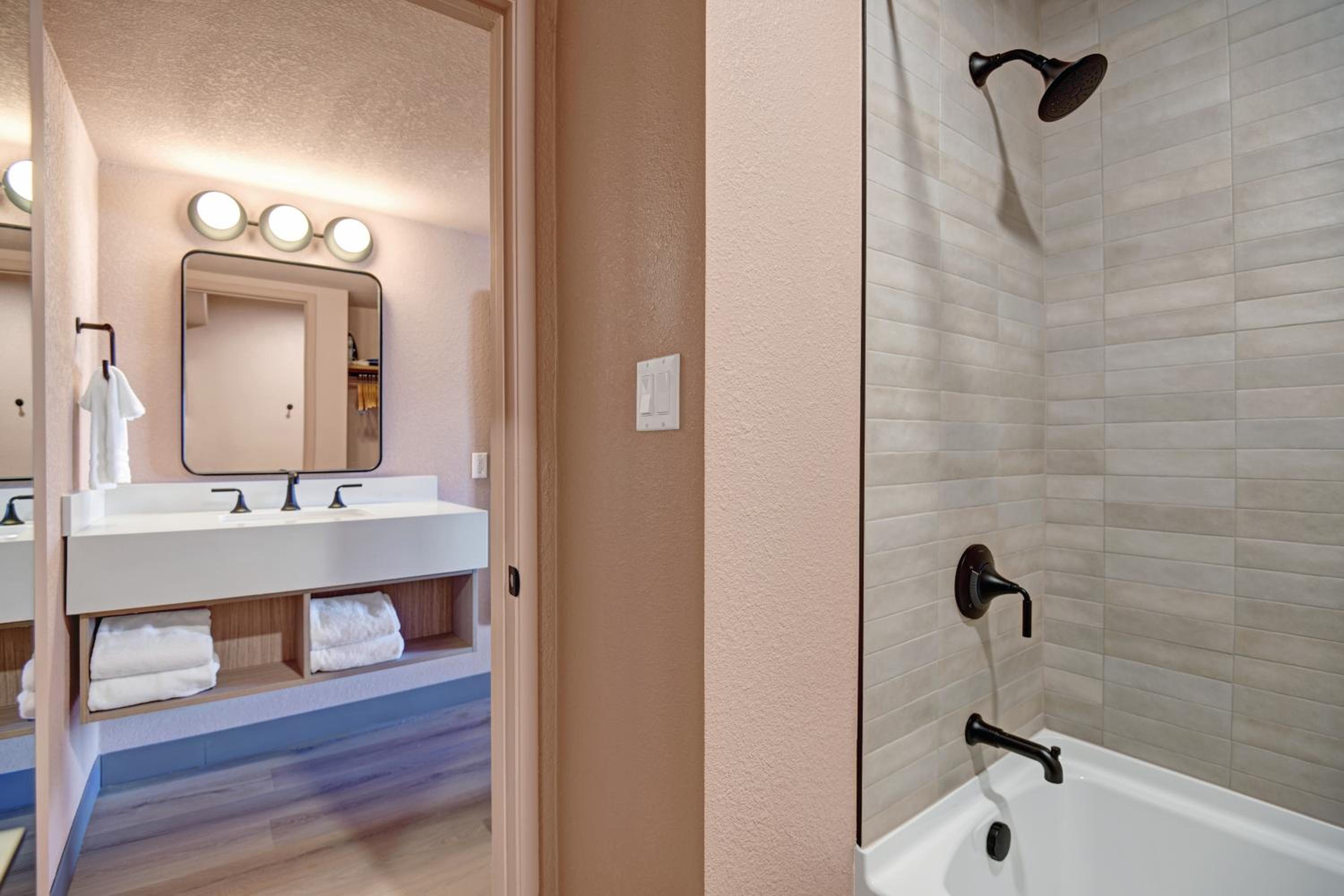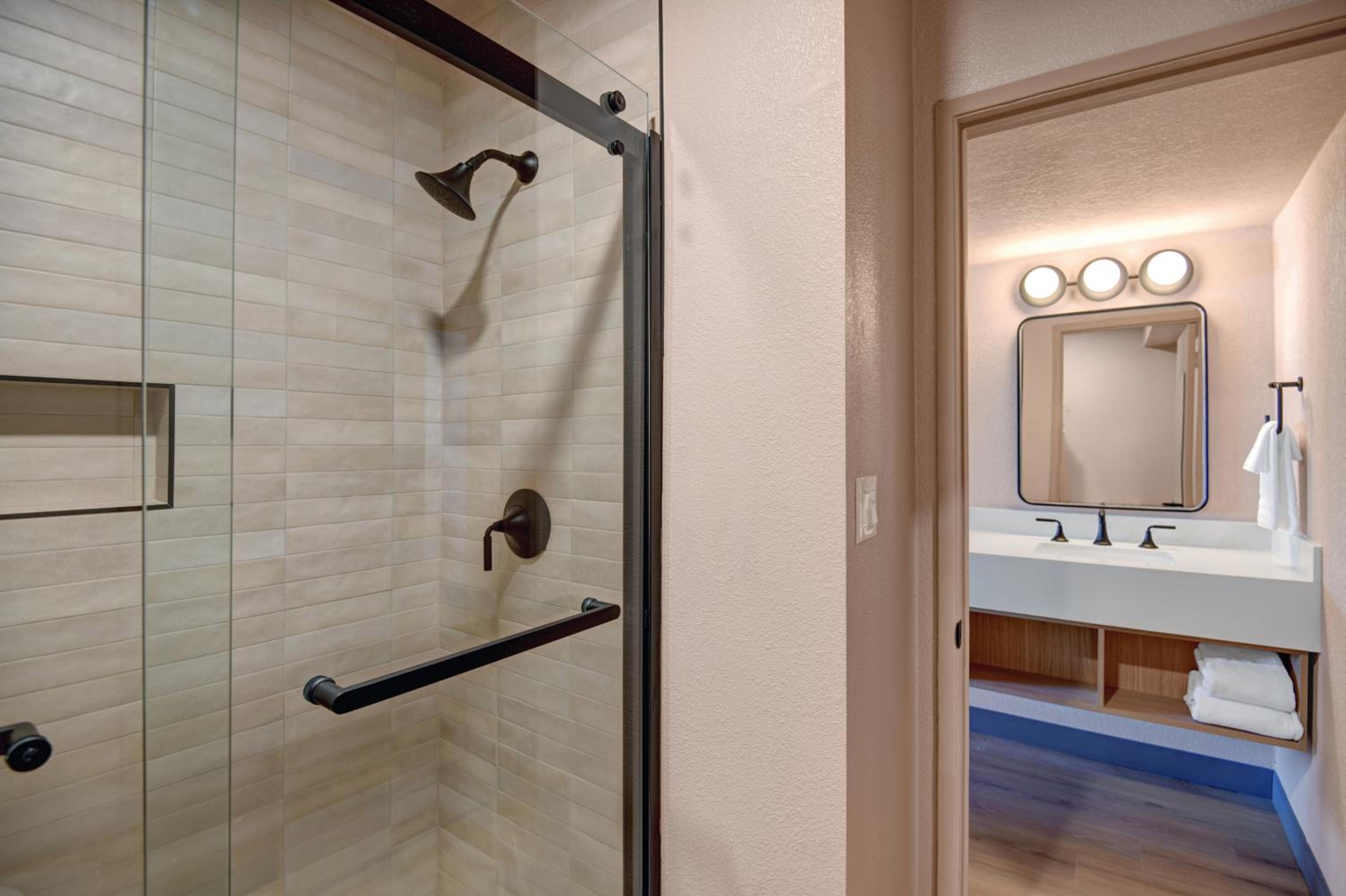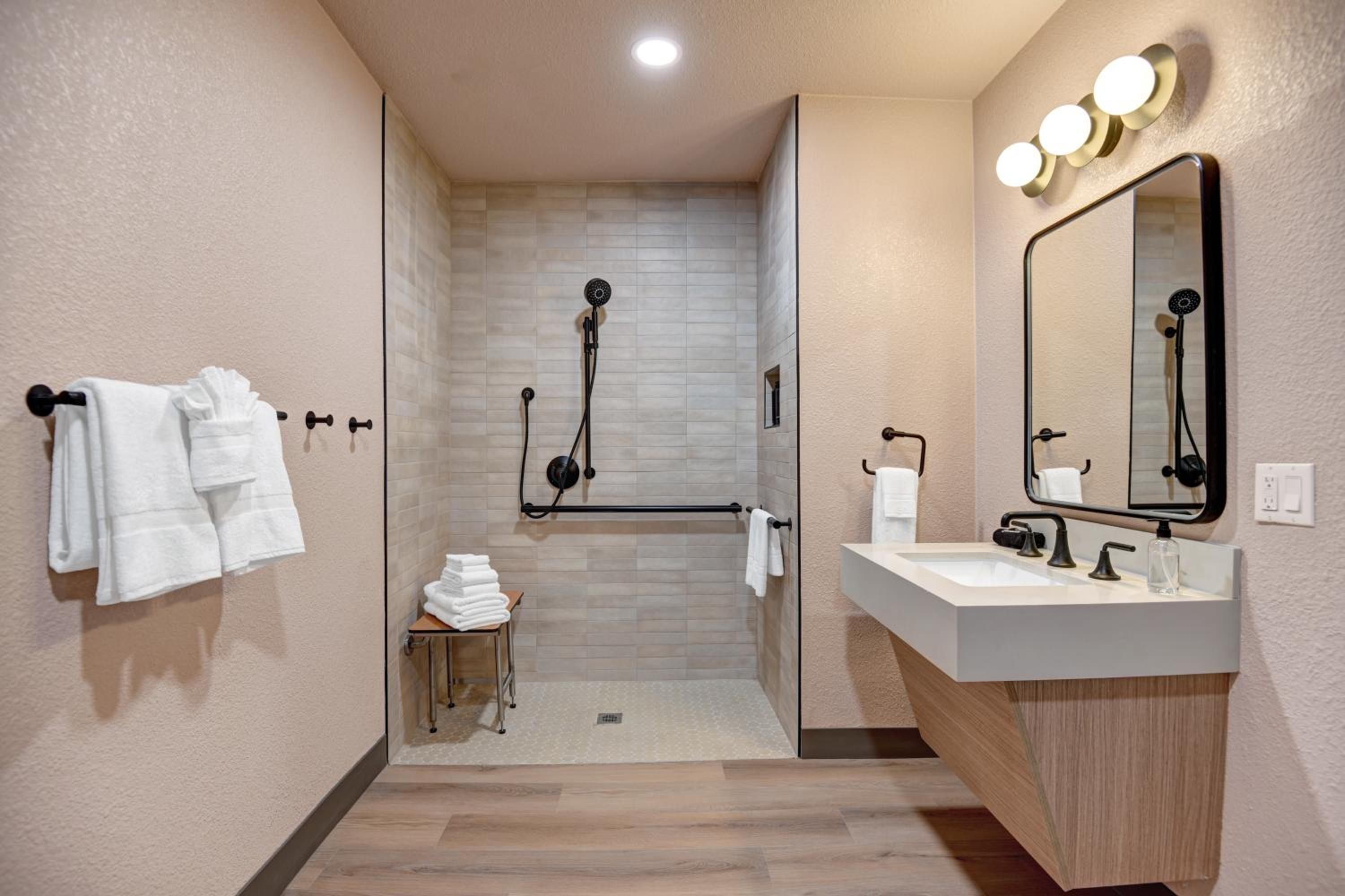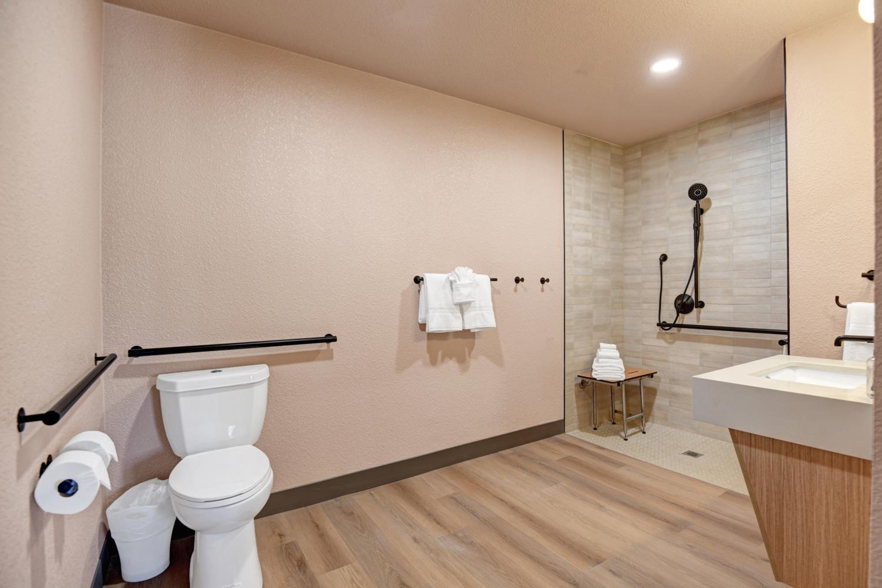 I asked for grab bars in the shower because of a knee injury. We were given a room outfitted for a wheelchair. We were immediately offered another room but were worried about being late for a show so we stayed. We easily switched rooms the next day because the staff was so accommodating.