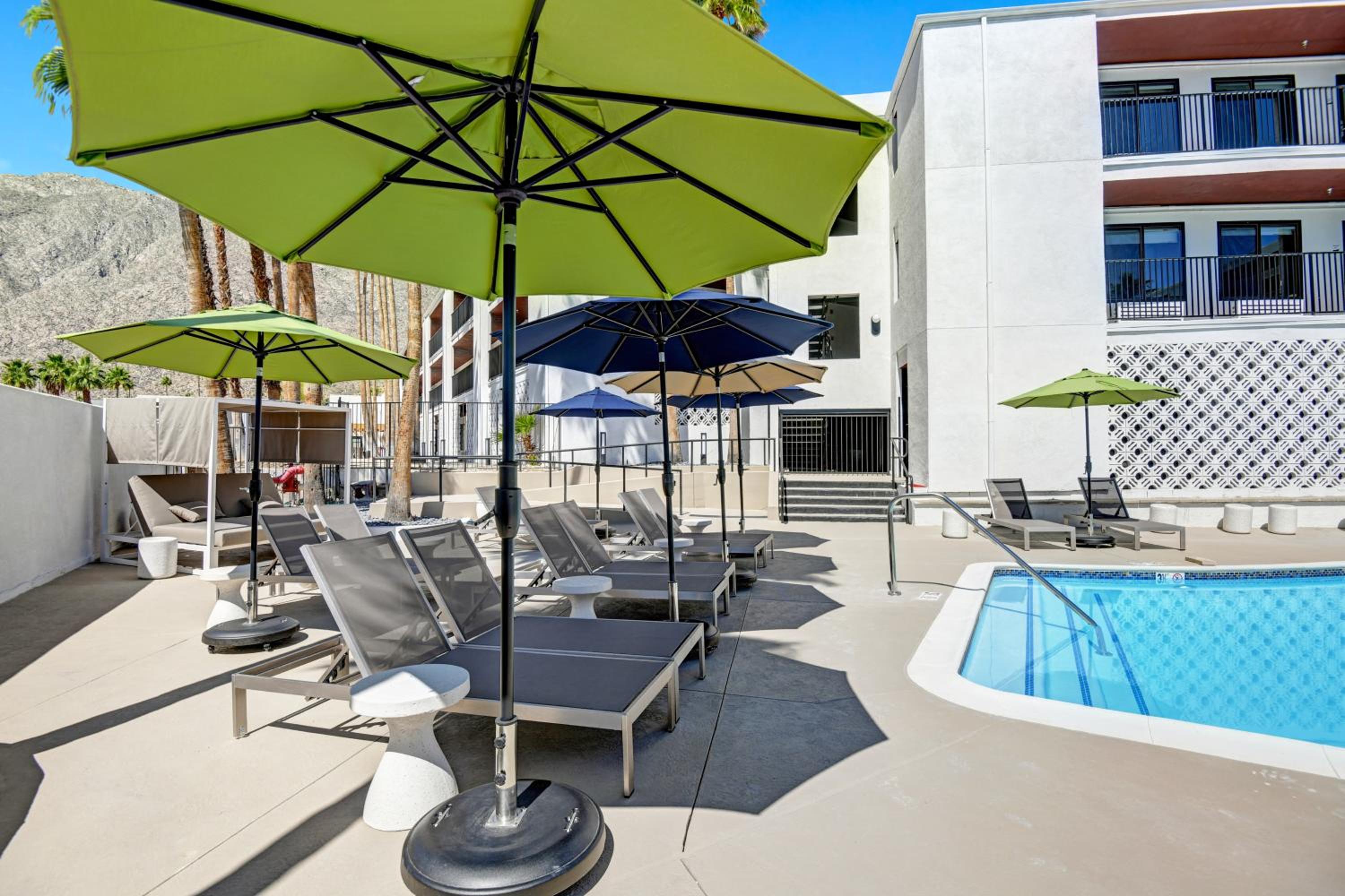 Unwind by the outdoor swimming pool, hot tub, or explore nearby attractions like the Palm Springs Aerial Tramway and golf clubs.