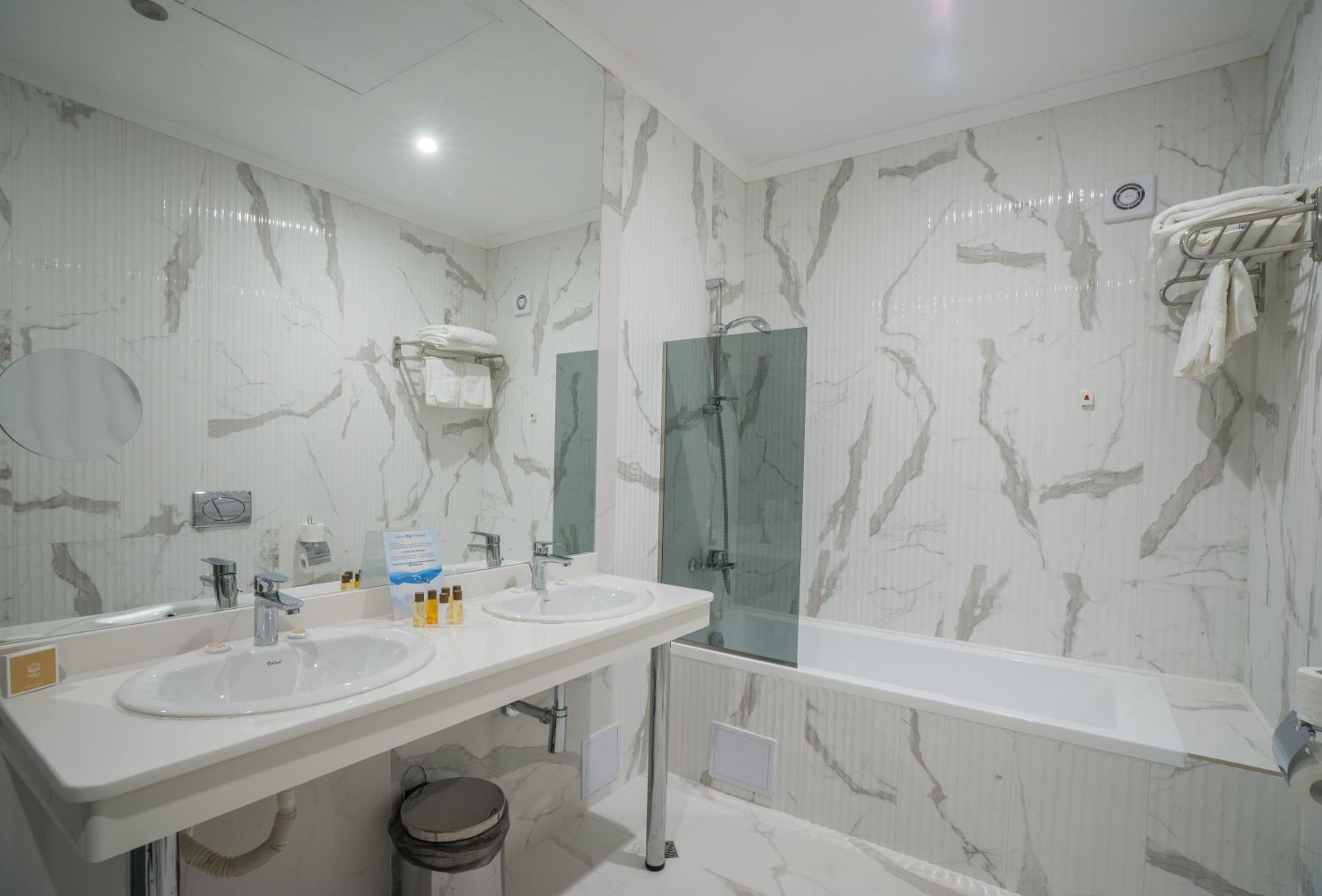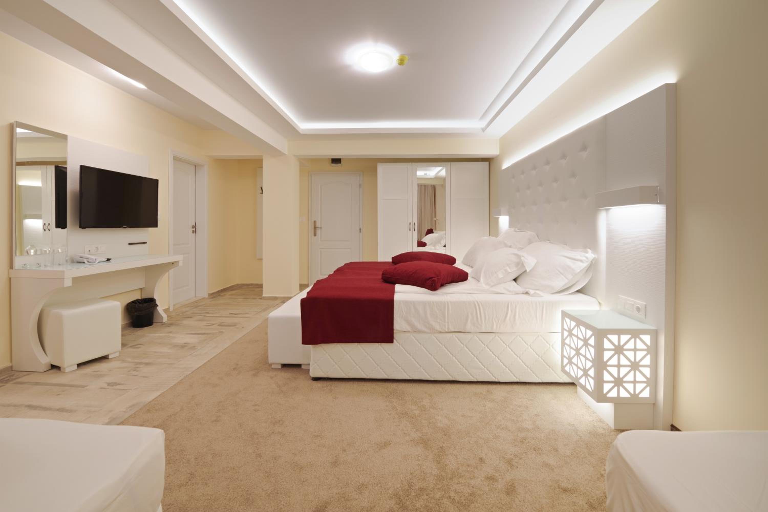 Nu pot sa spun decat ca am fost extrem de dezamagita de acest sejur. Am rezervat tocmai pentru ca este un hotel de 5 stele, insa facilitatile lor sunt de 2 stele cu indulgenta. Nu am vazut in viata mea sa mergi la all inclusive si sa ai o camera cu 8 feluri de mancare, reincalzite. Mancarea foarte slaba, resturile care probabil le ramaneau dintr-o zi, erau folosite pentru a doua zi intr-un alt fel de mancare. Nimic gatit corespunzator, si eu nu sunt o persoana pretentioasa. O piscina extrem de mica, loc de joaca pentru copii inexistent, in afara unui tobogan si a doua leagane rupte. Un singur bar in lobby cu bautura pe care nu o puteai bea. Fata bar pe plaja sau la piscina. Wi-fiul functiona doar in camera. Extrem de dezamagita! Daca vreti hotel de 5 stele nu mergeti aici!