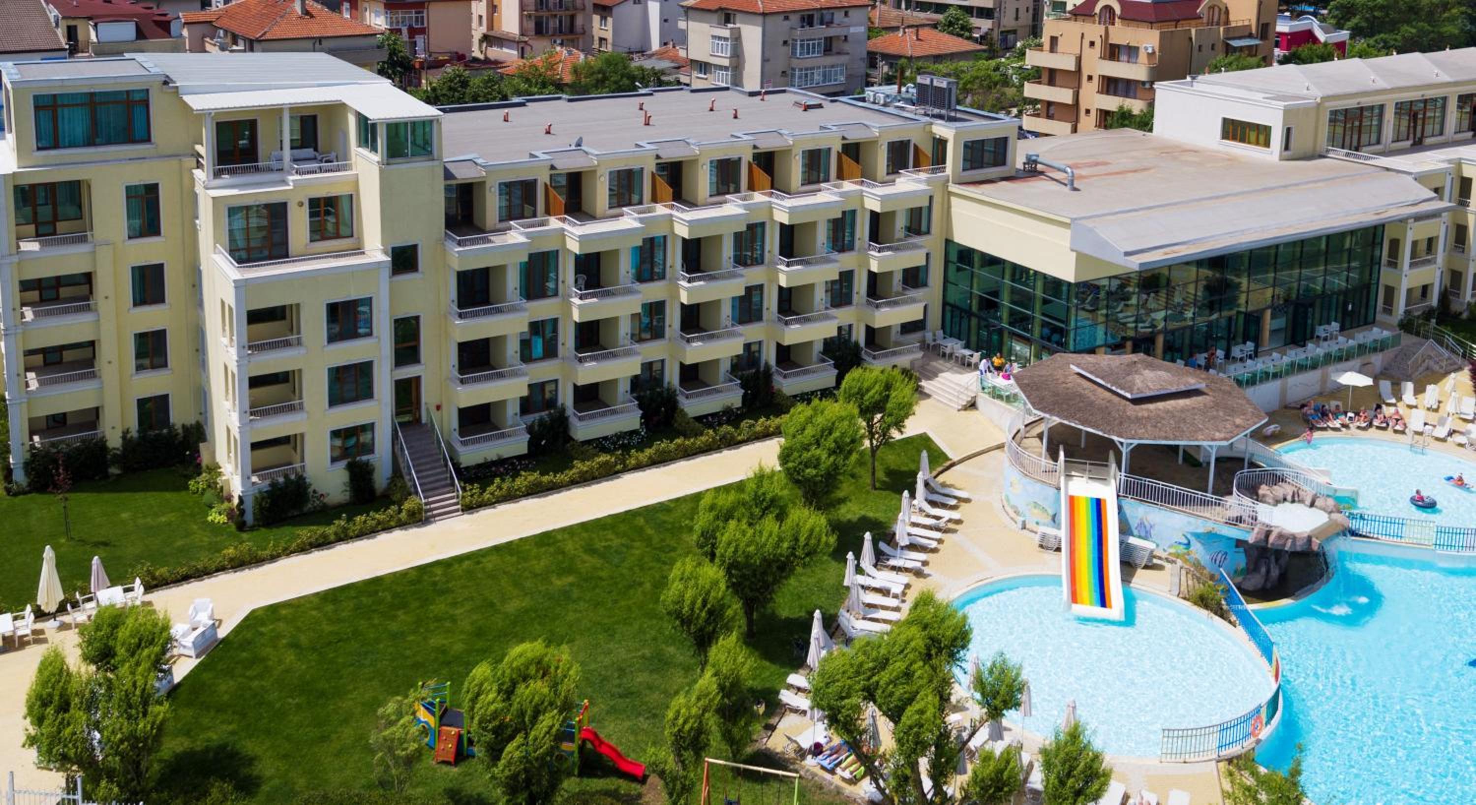 Family-Friendly Fun: With an outdoor pool, seasonal pool, and children's playground, there's something for everyone in the family to enjoy at Complex Perla Beach Primorsko.