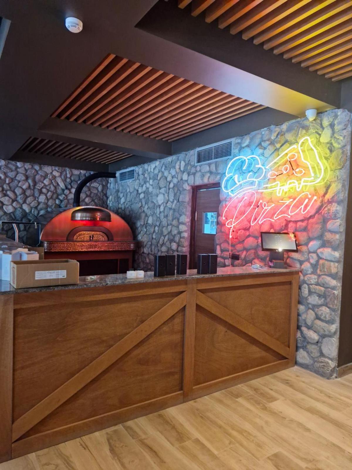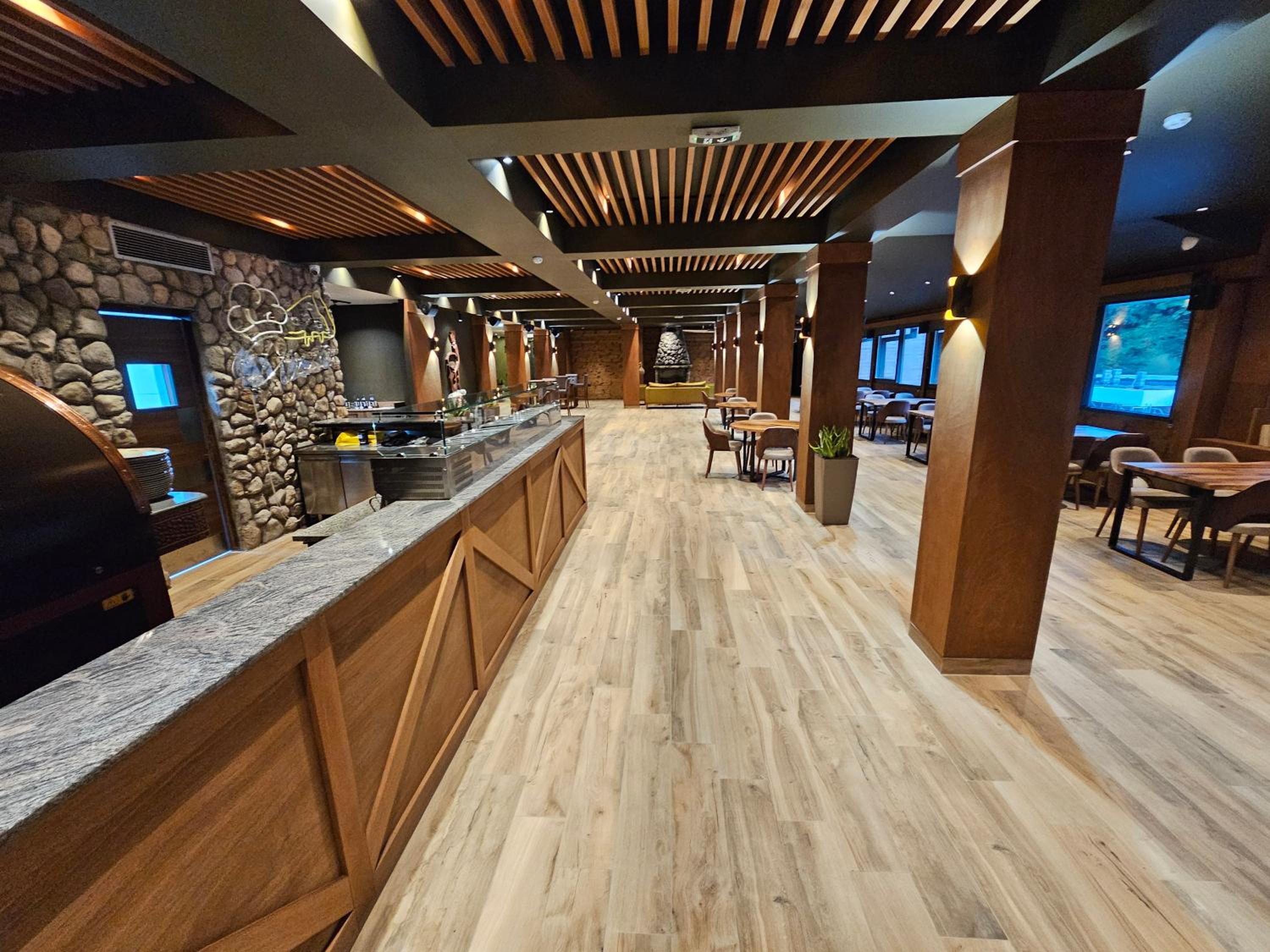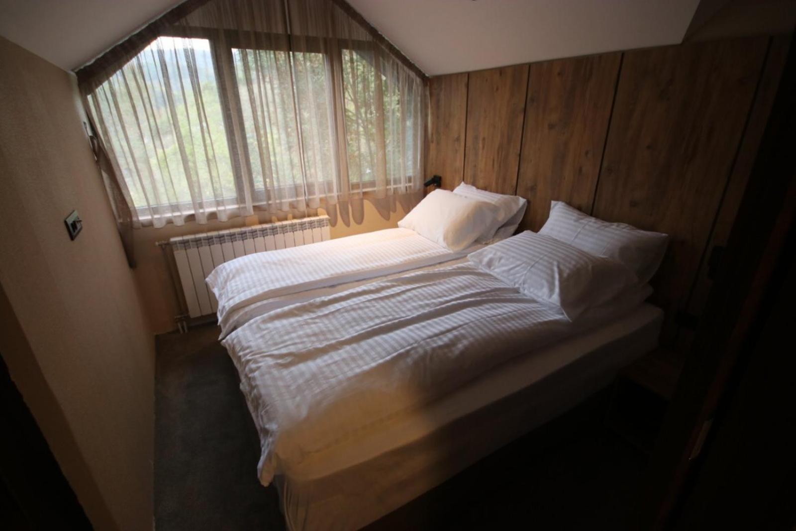 First when we arrived we were not sure where the main entrance is. It is a quite dark and you need to climb stairs to get inside and no possibility for a stroller or for a people with dissability to enter. Then the other surprise came that the Spa was not included in the price which was the most expensive from all the hotels in Mavrovo. Even though that we agreed to pay and also to reserve the spa 1 hour before, when we went into it it was cold and out of function. They told us to wait one hour more and then called us to explain that they will need one hour more to repair it. So it was already late for spa. Other thing which was very discusting was the face towel even though it was set up as clean there was a brown stain on it. The breakfast was included in the price but the choice was very poor consisted from eggs only ( scrabmled eggs, omelette, fried bread slices and that was it). Since I was fasting they served me fruit salat only and the second day bread with marmalade and honey. The Restaurant is pricey and they dont have a lot of choice on the menu. They did not have pizza eventhough there is a big pizza oven. Most of the staff does not know macedonian or english.