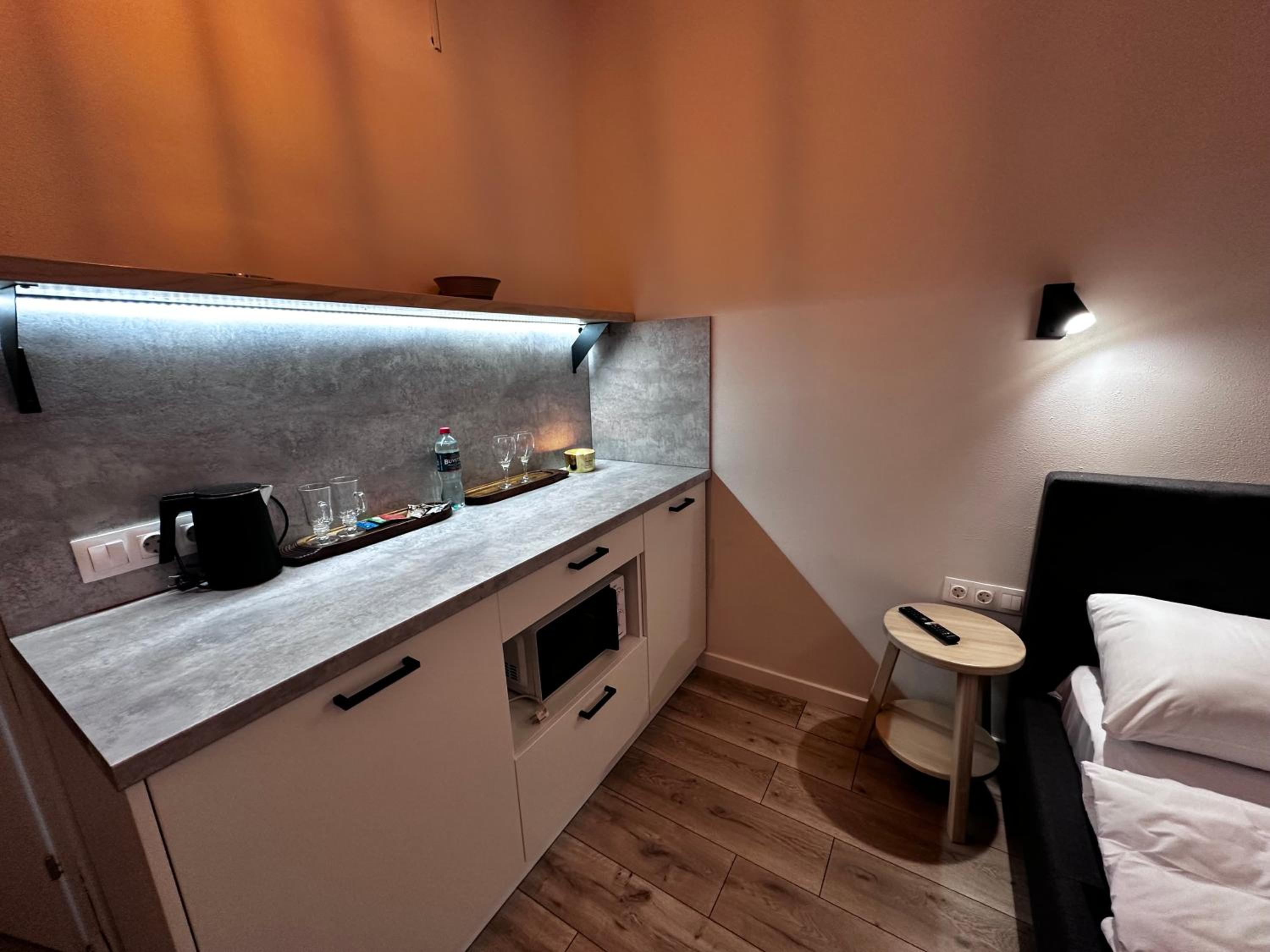 Номер дуже сподобався, невеликий але дуже чистий і охайний, сучасний ремонт. Є рушники, халати, капці, кулер з водою, кава, чай. Особливо сподобалось розташування, відразу біля площі Ринок. Тепло і постійно було світло.