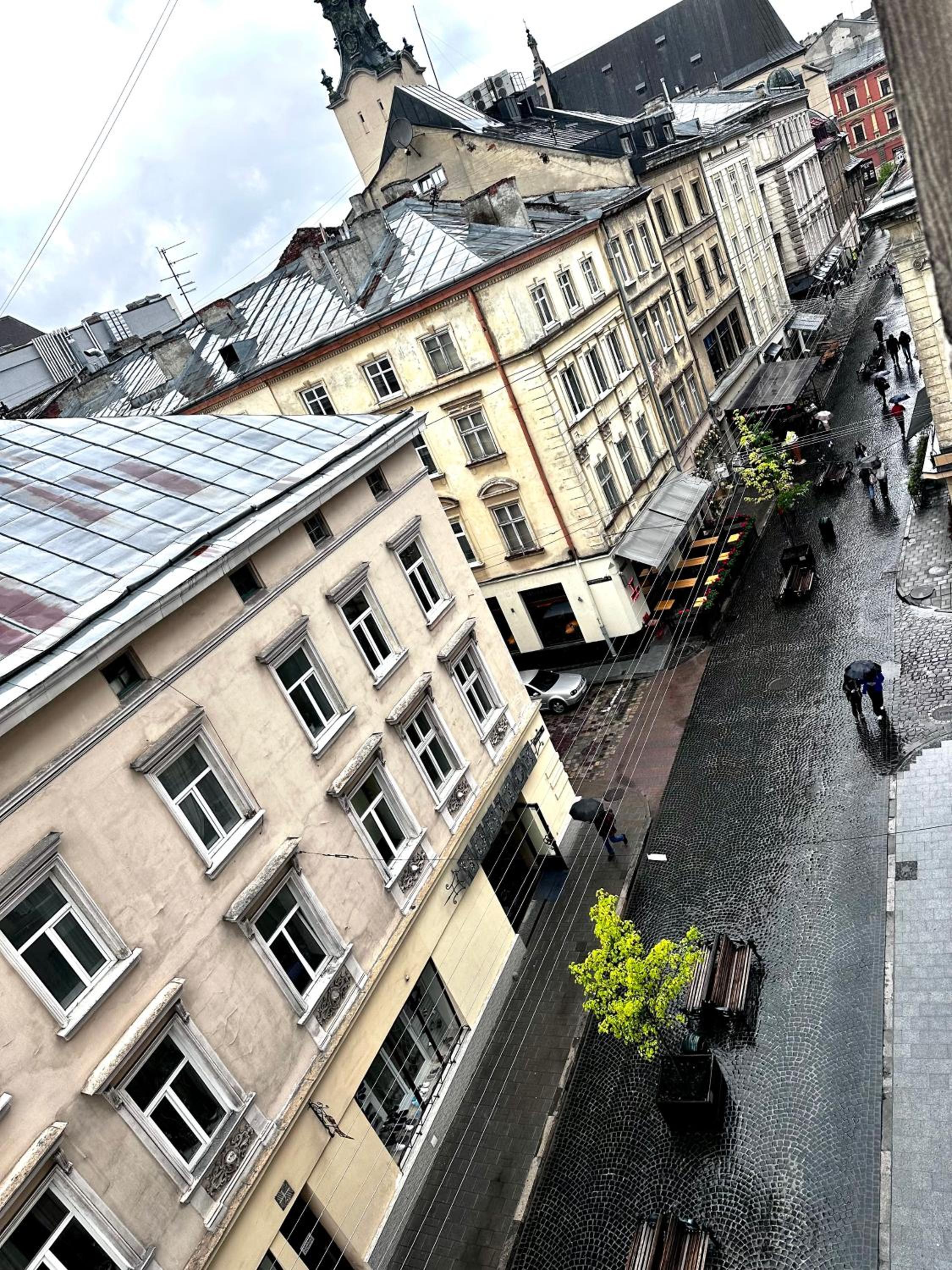 На вулиці галасно, бо готель в самому центрі Львова, де до визначних і популярних місць рукою подати. Але вночі тихо.