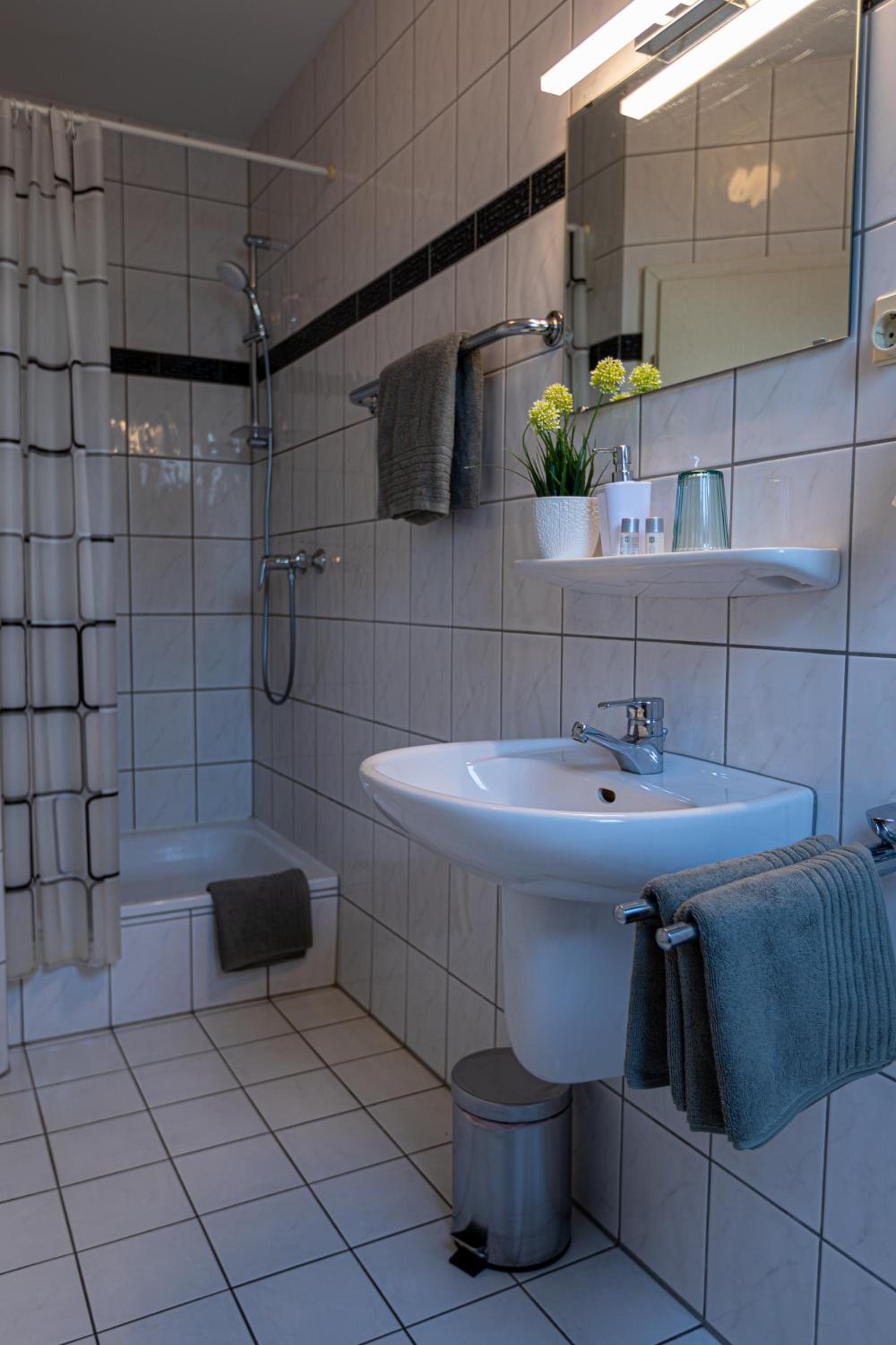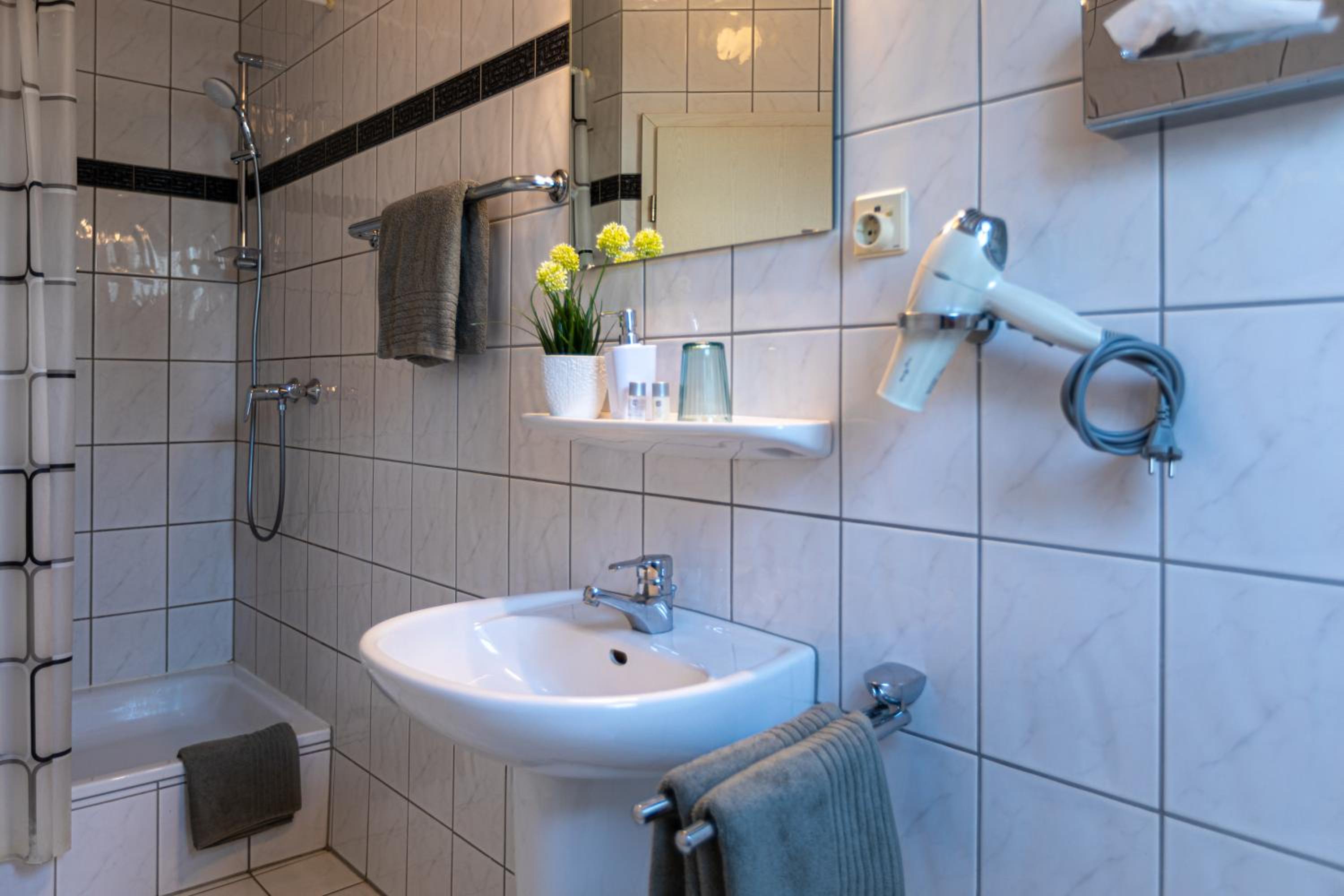 Praktisch, einfach, gut. Dusche gut, recht ruhig, auch mit offenen Fenster. Mehr braucht man nicht in der Nacht.