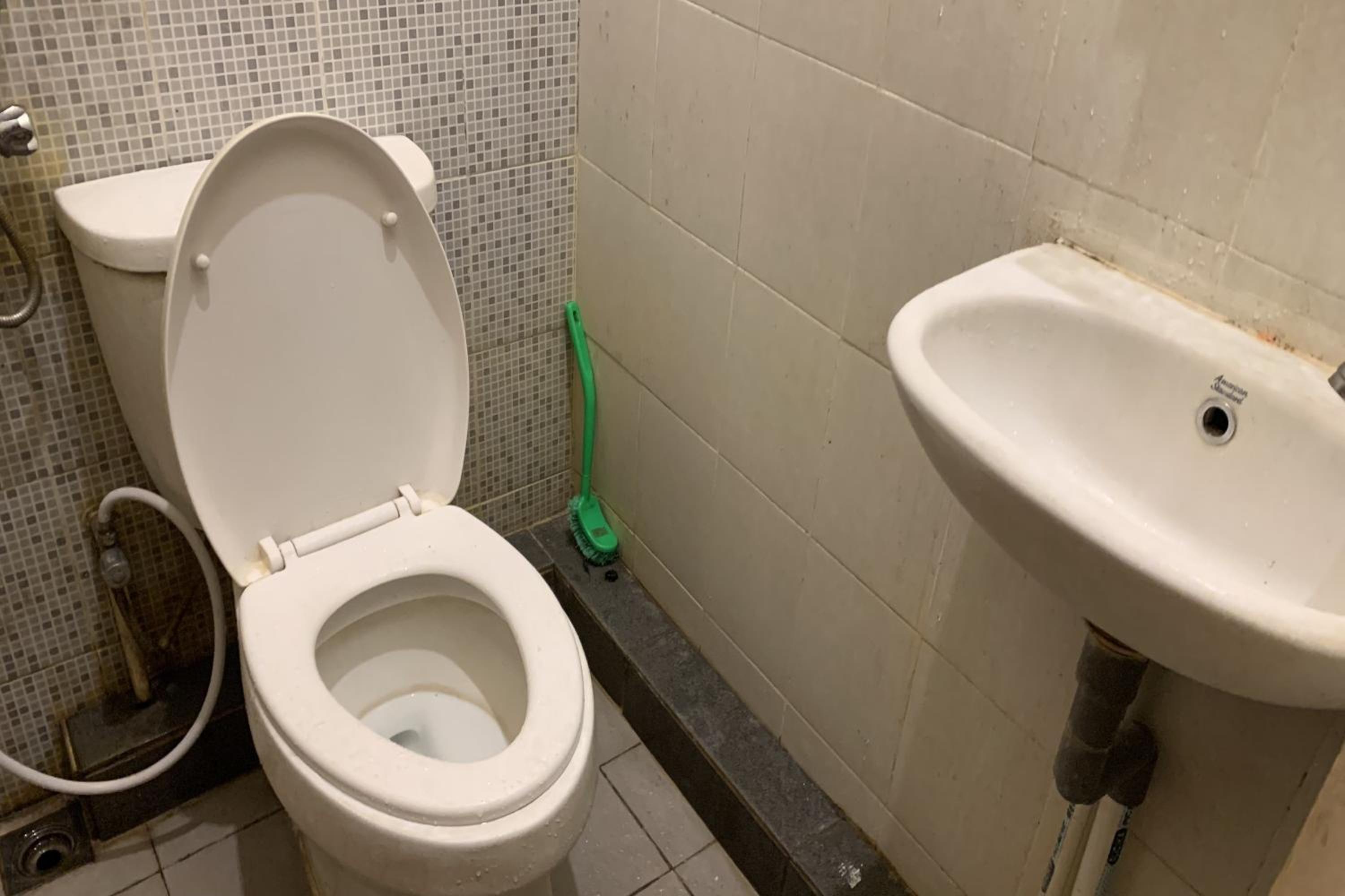 Walls are not cleaned either, with stains everywhere.