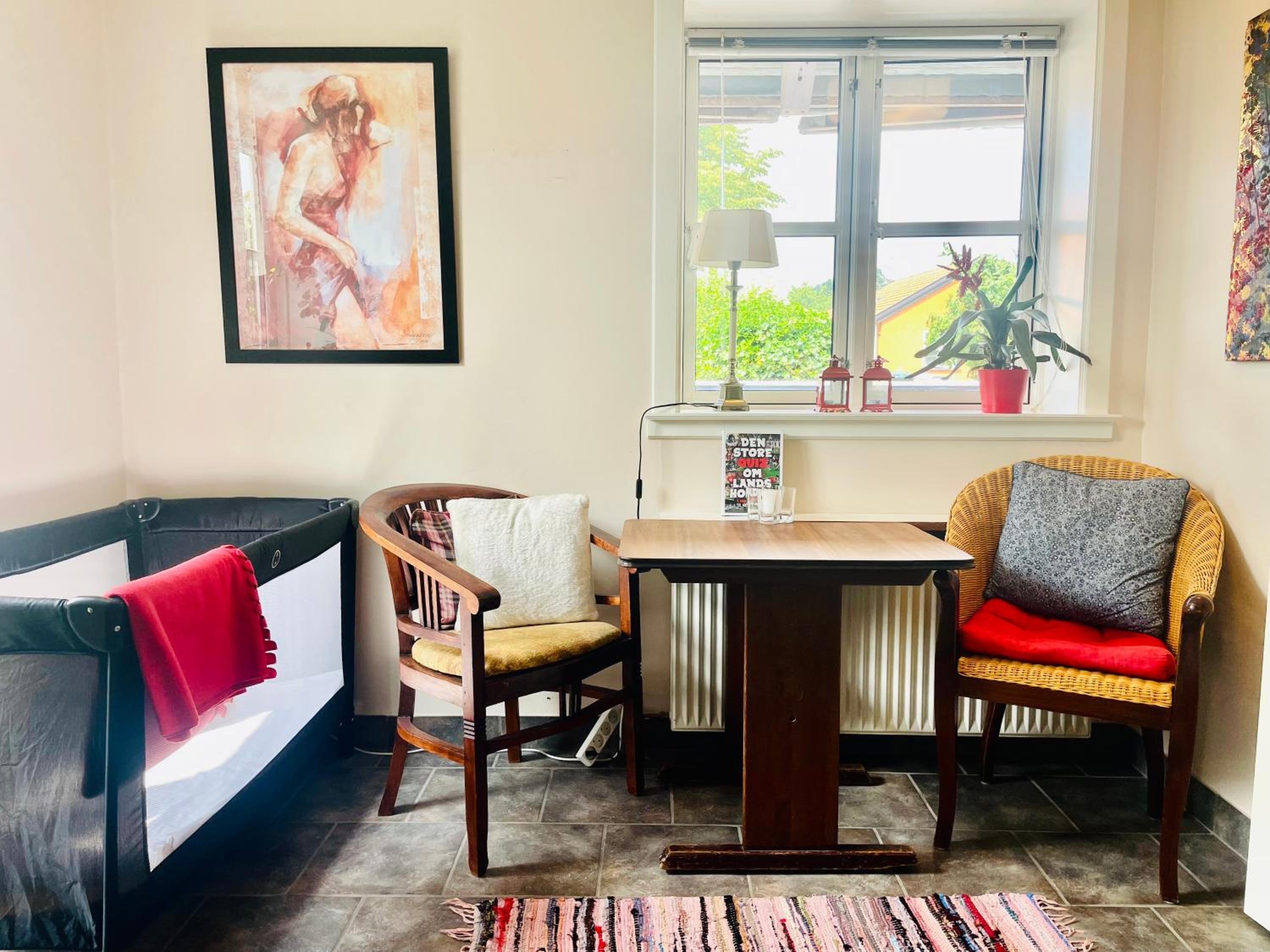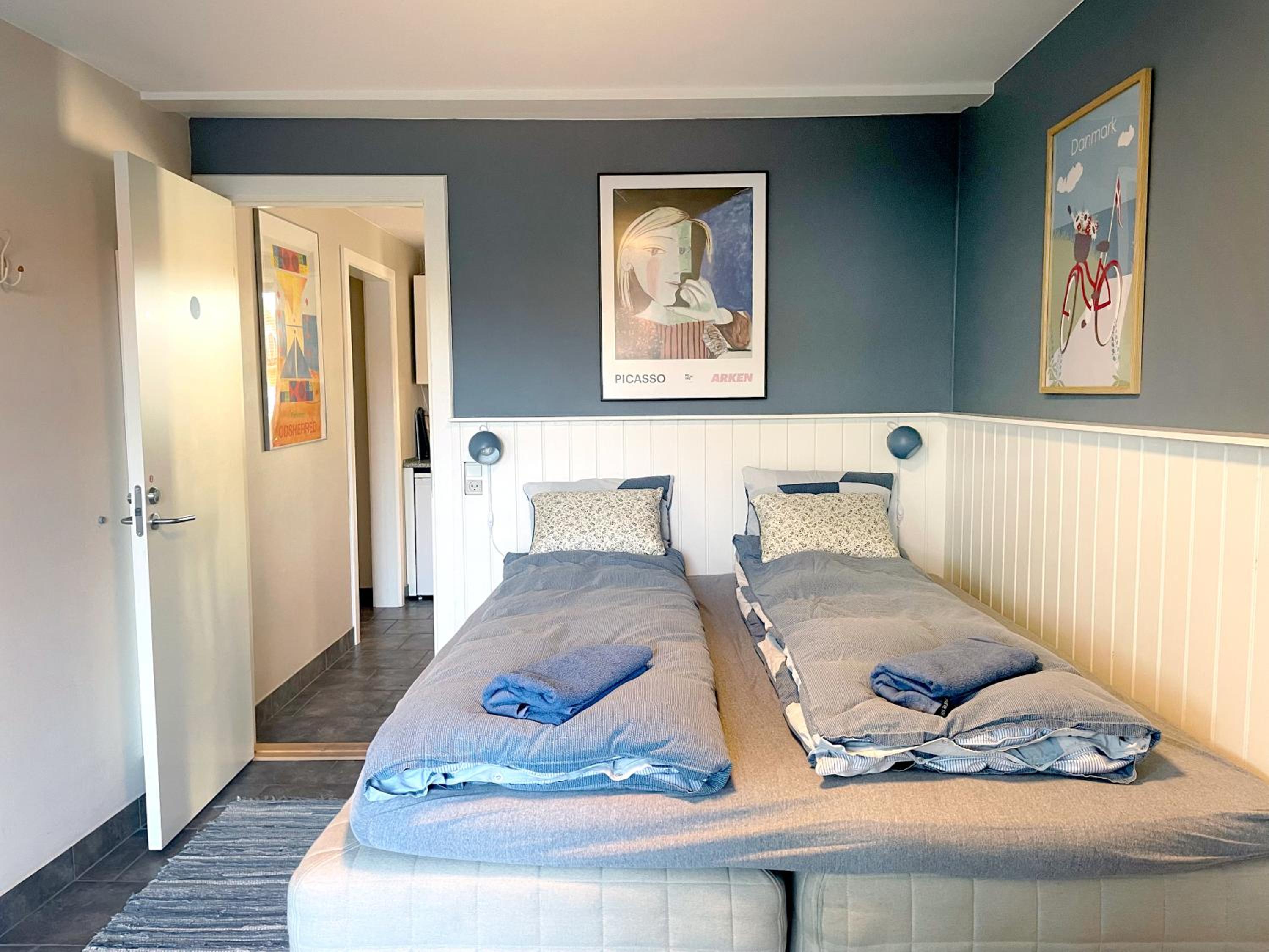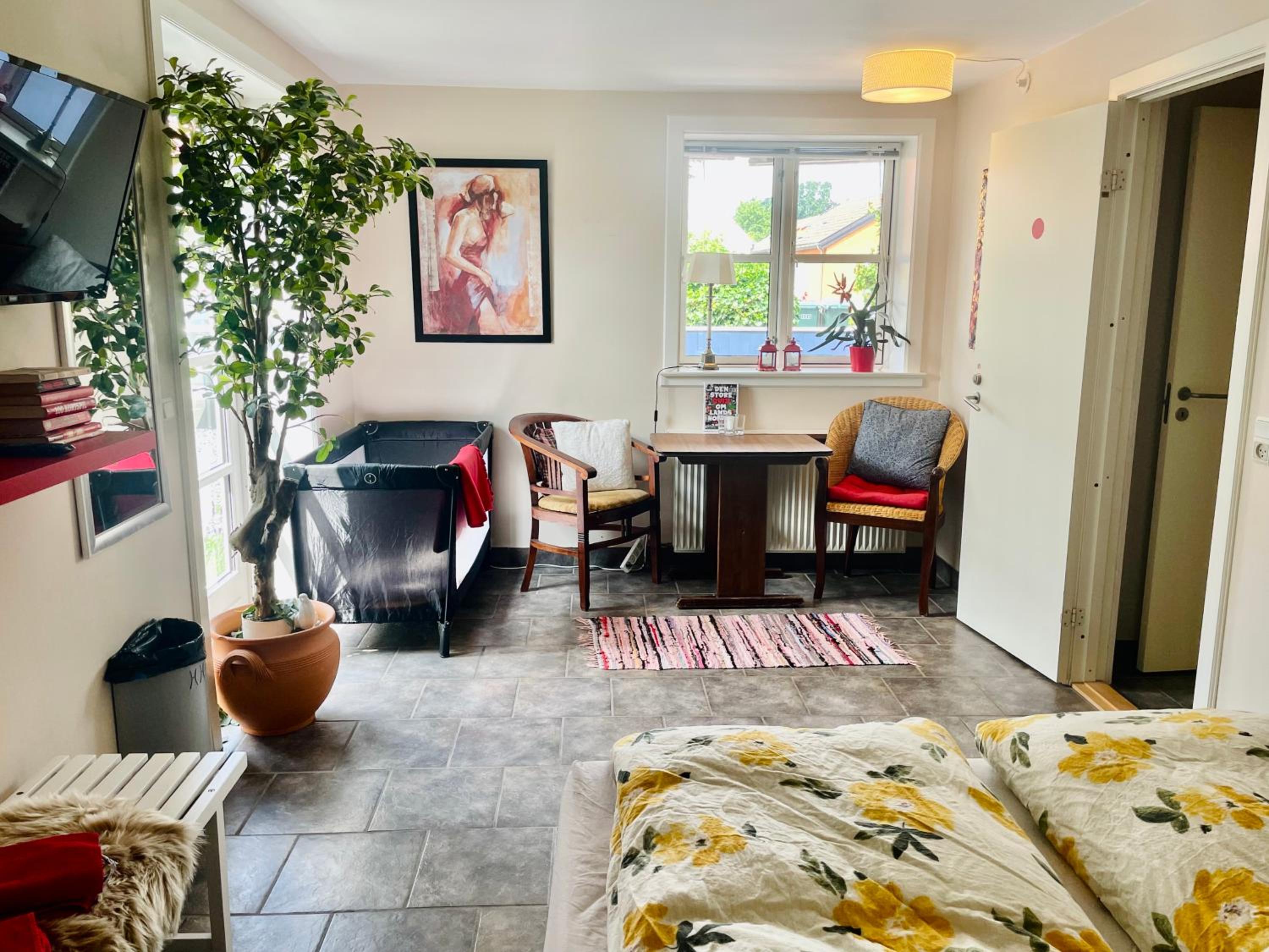 Vi overnattede kun en enkelt nat, da vi skulle til fødselsdag i området, så vi var ikke på værelset. Men det var utrolig pænt og rent og en dejlig seng! 🥰 May-Britt var sød og på ind og udtjekning var meget nemt. Vi kommer gerne tilbage og overnatter (forhåbentlig længere tid næste gang) ☺️ Jeg anbefaler dette sted. Ps. Der ligger en kro på den anden side af vejen, som har den absolut bedste bolle med ost, jeg nogensinde har smagt, den kan også anbefales 😅