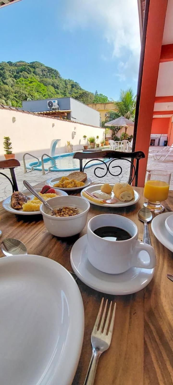 Café da manhã simples, mas bem preparado pela cozinheira Iolanda. Local do café da manhã sempre tocando jazz. O suco de abacaxi com hortelã e de laranja esprimida na hora estava delicioso.