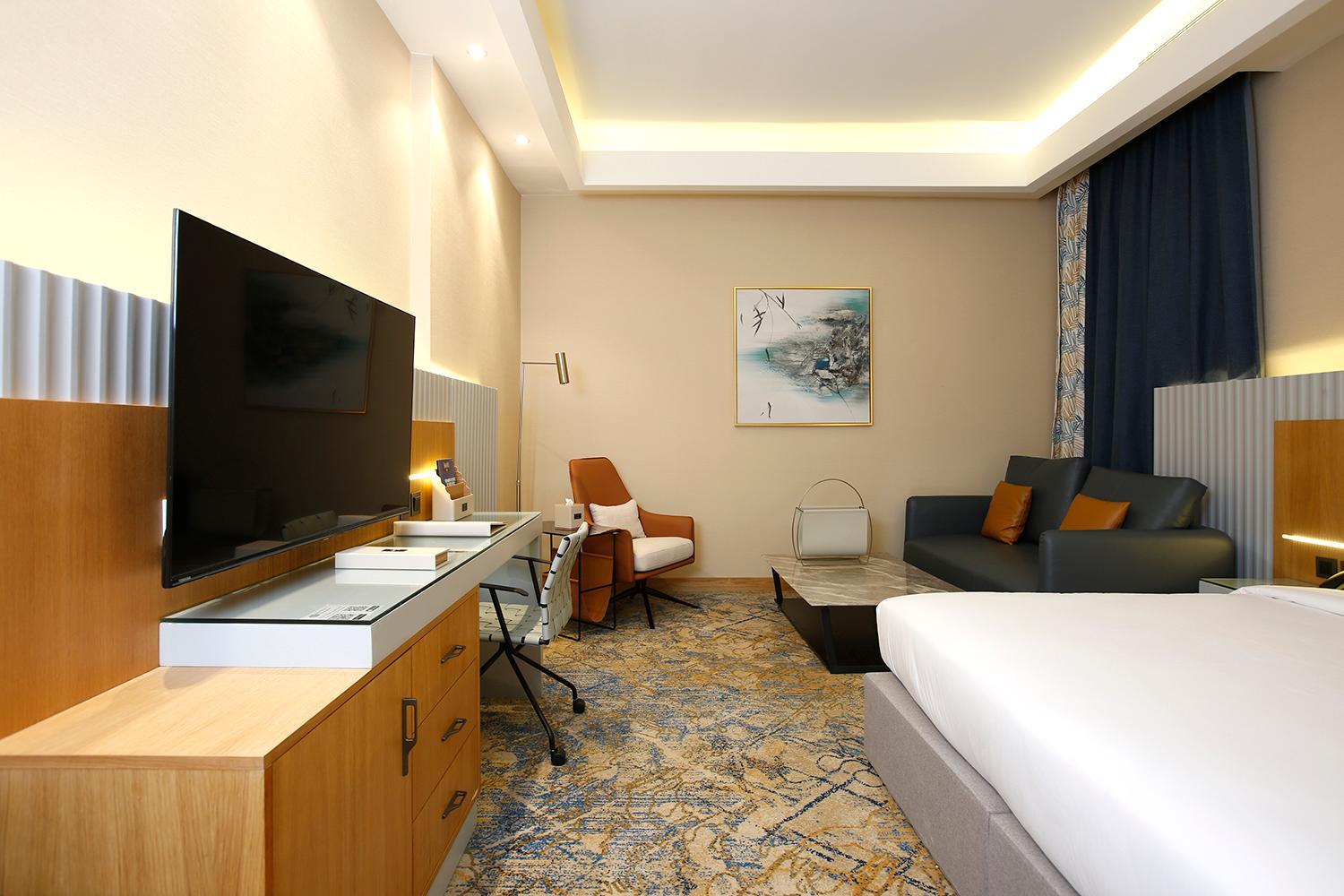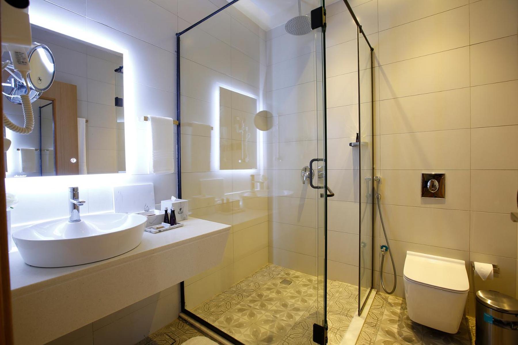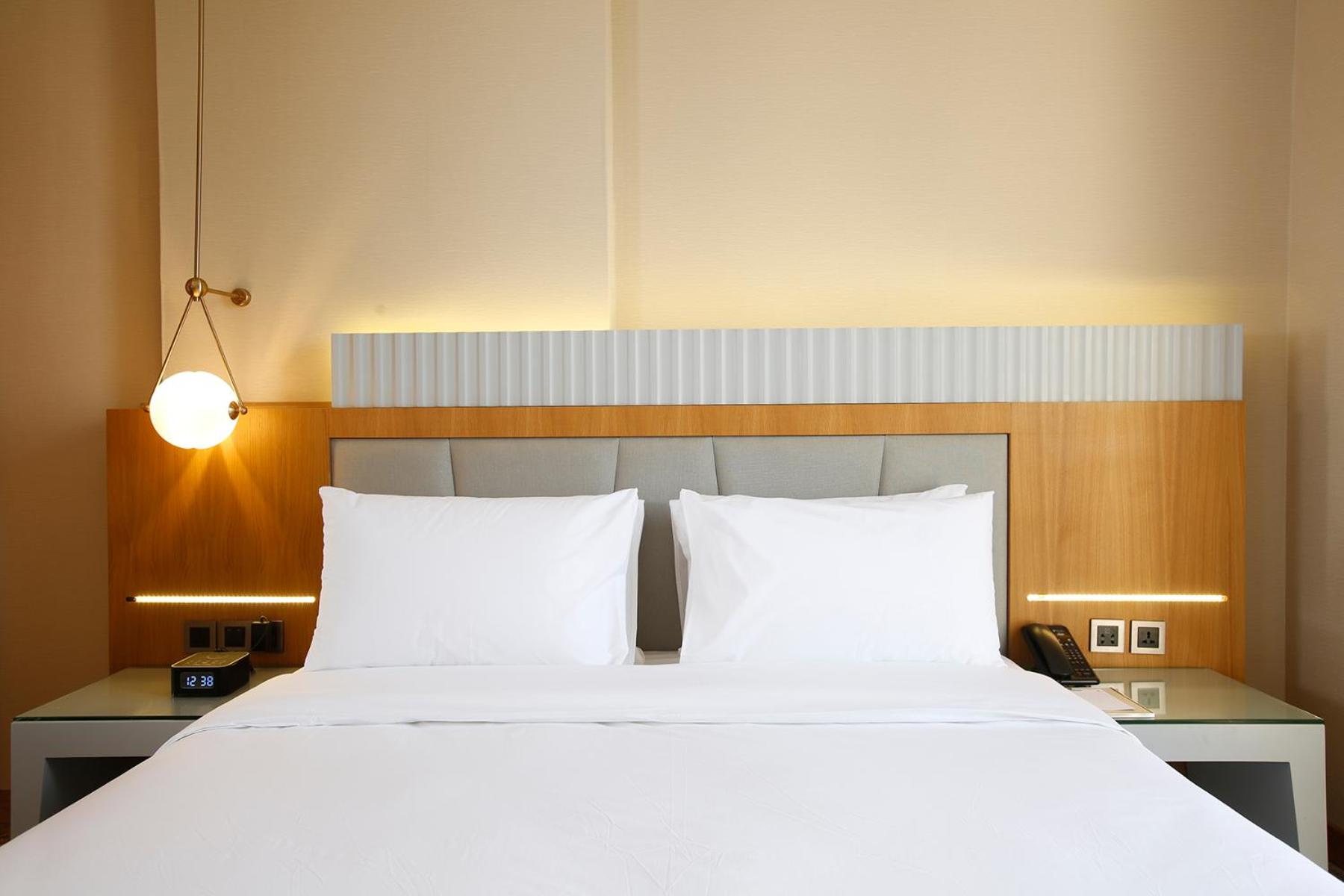 The hotel boasts spacious family rooms, making it the perfect choice for a comfortable stay with your loved ones. Each room is elegantly furnished with a wardrobe, flat-screen TV, and complimentary toiletries for a relaxing experience.