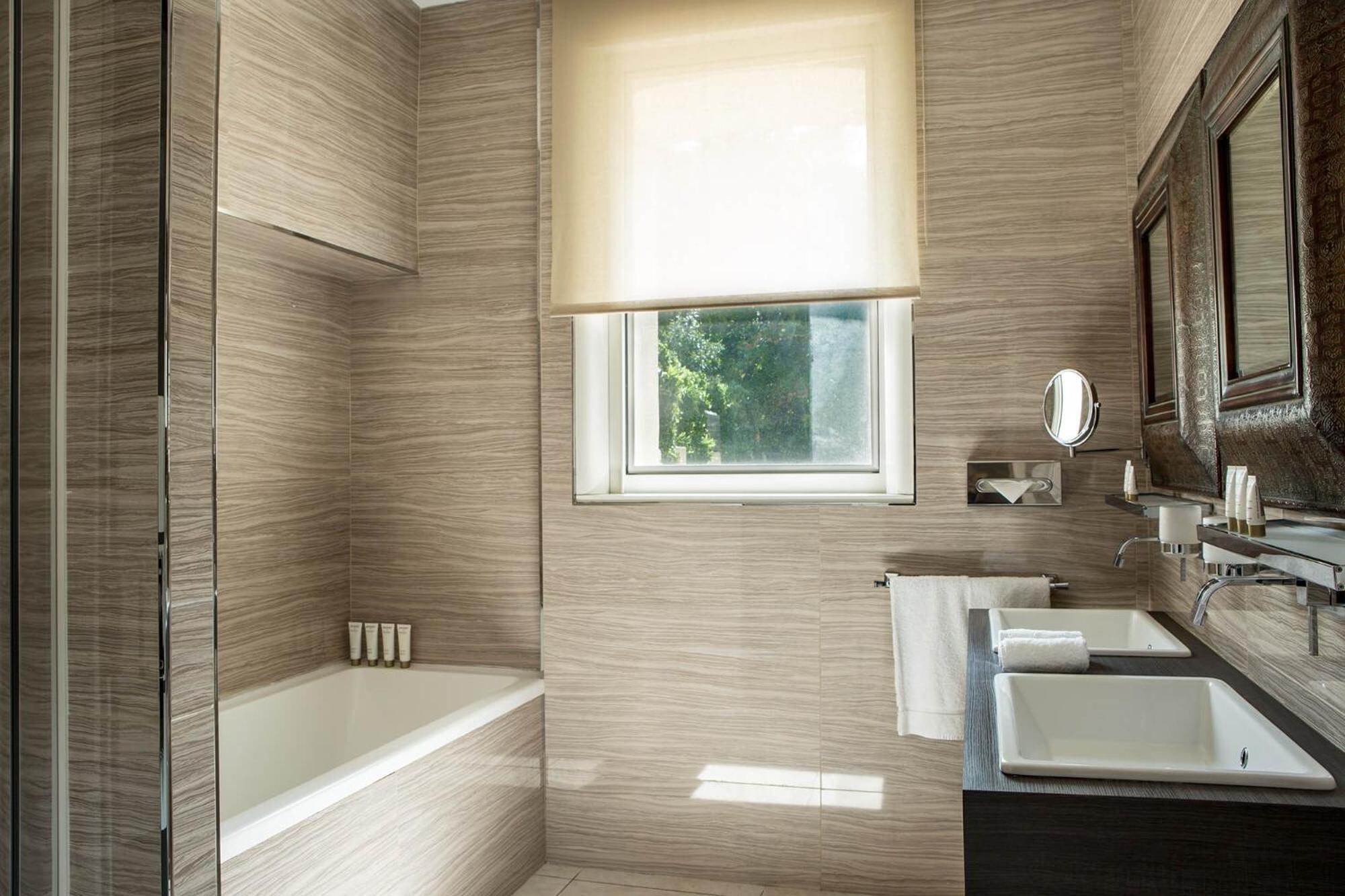 Three light bulbs in bathroom dead. Double glazed windows have melted glazing surrounds - surprising for a five star establishment. The restaurant was disappointing and the risotto of winter vegetables might have been edible had it included any other vegetables rather than turnip shavings. A single slice of decorative carrot does not a vegetable make. Two dishes, two glasses of wine and bottled water 105€