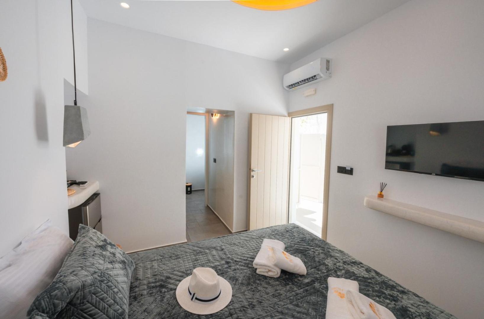 Bel emplacement, près du centre-ville de Fira (5 mins). L’appartement est compact, mais il y a tout ce qu’il faut. Les fournitures sont en très bon état, le propriétaire s’occupe très bien du logement et il offre de faire le ménage si on le souhaite.