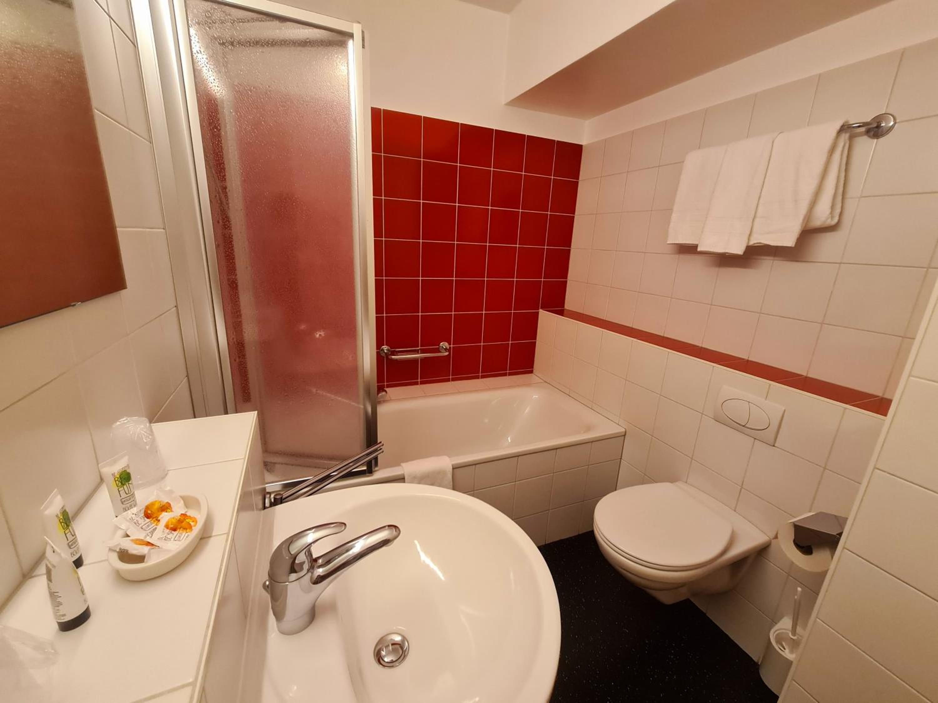 Op een kamer werkte de WC niet, na verhuizing naar andere kamer was er een hoofdkussen voor 2 personen. Geen tel. nr. op kamer om contact op te nemen met receptie, dus daarvoor moet je iedere keer naar beneden om met een receptioniste op een scherm te praten.