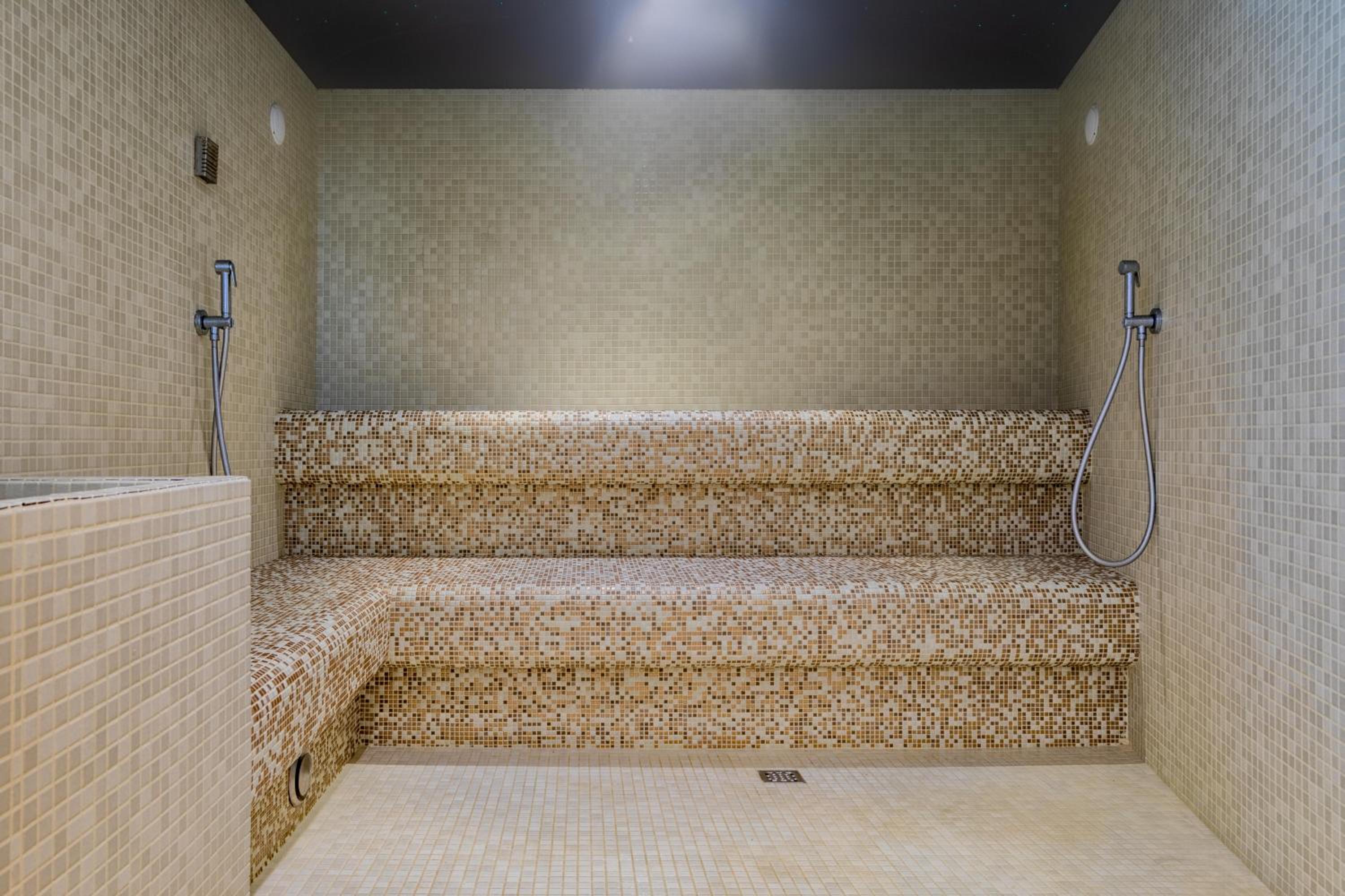 Experience the ultimate relaxation at our spa with indoor pool, whirlpool, Turkish bath, and sauna.