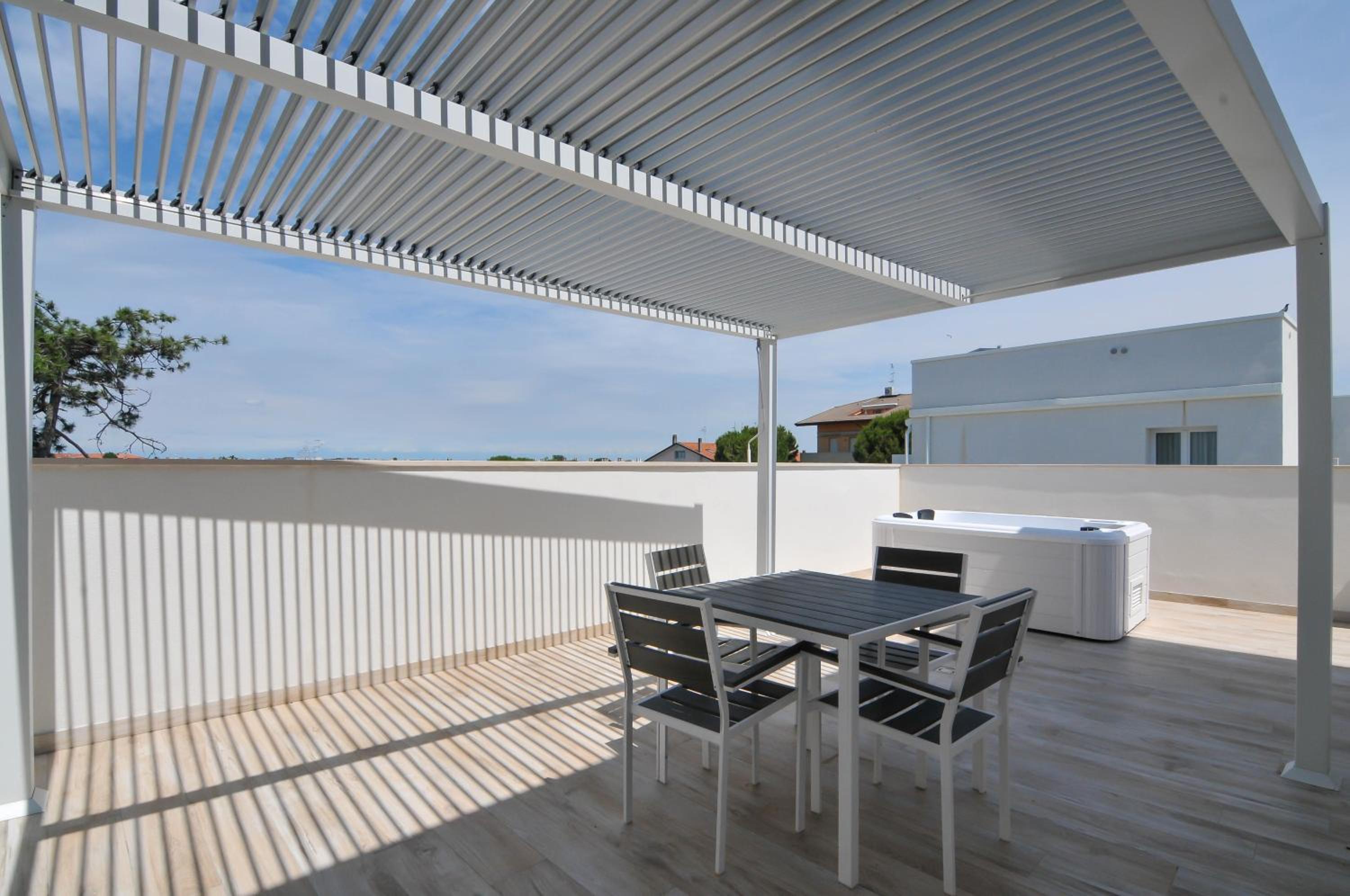 Unwind in our garden surrounded by pine trees, featuring a swimming pool and plenty of deck chairs for soaking up the sun.
