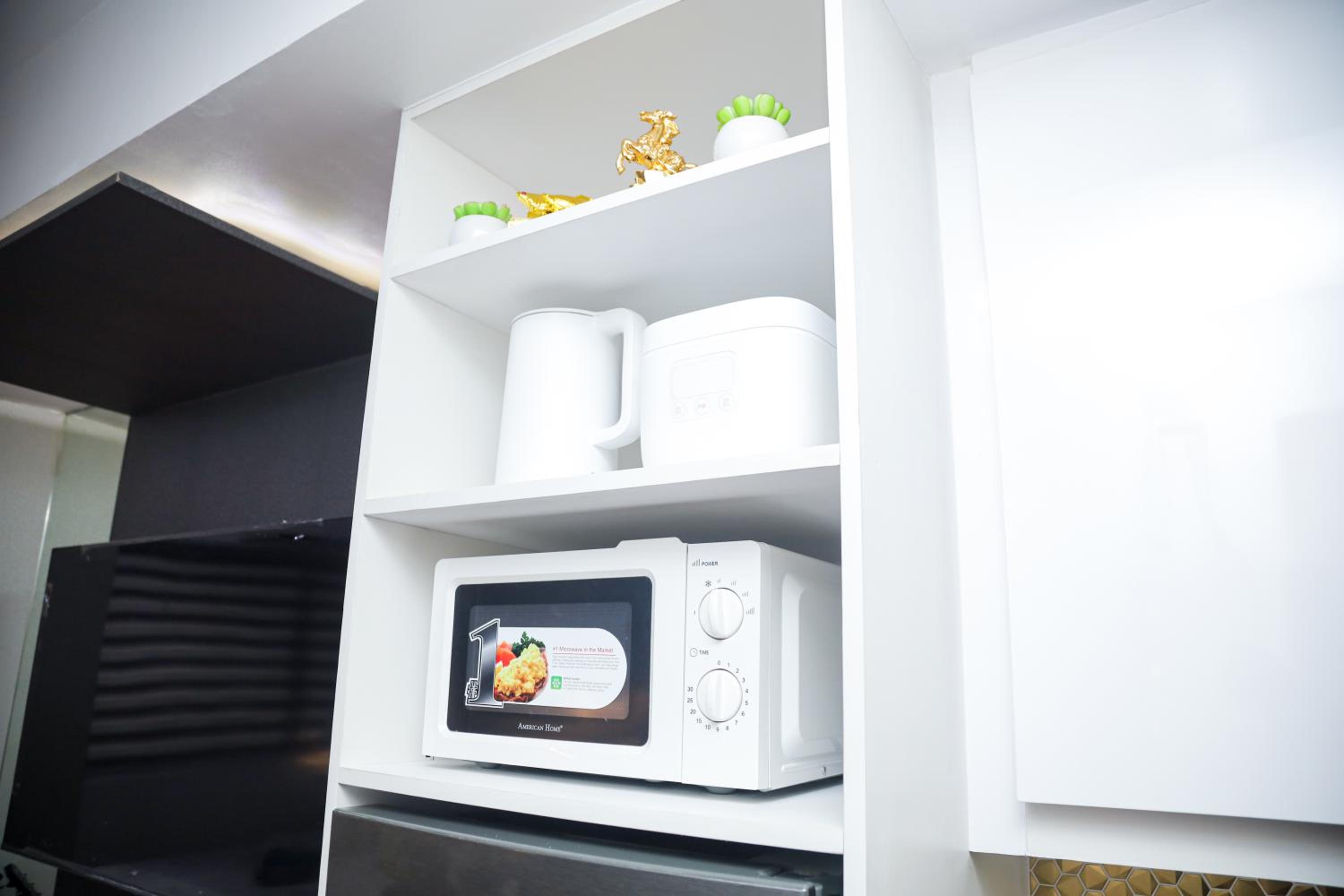 I liked everything about our room. The bed and sofa are comfy. The microwave and water heater are clean. Bathroom has a smart mirror on it where you can play songs while taking a bath. Internet is fast, no issue in terms of streaming Netflix and using multiple devices at once. Will definitely stay there again.