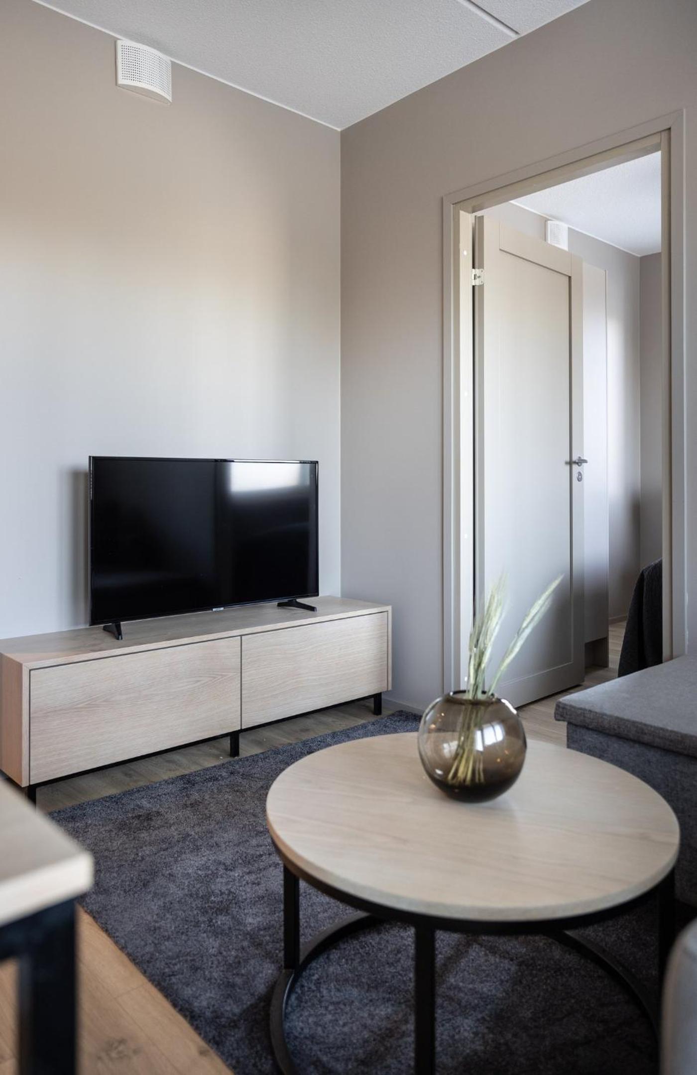 Modern Amenities: Enjoy a fully equipped kitchen, flat-screen TV, and soundproof rooms in this sustainable aparthotel.