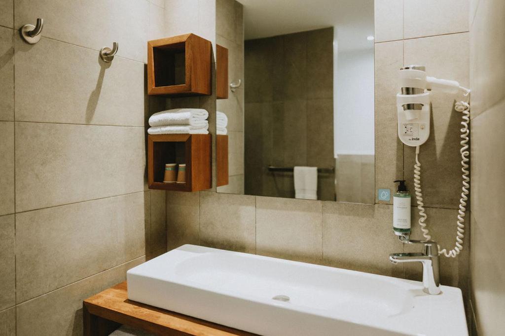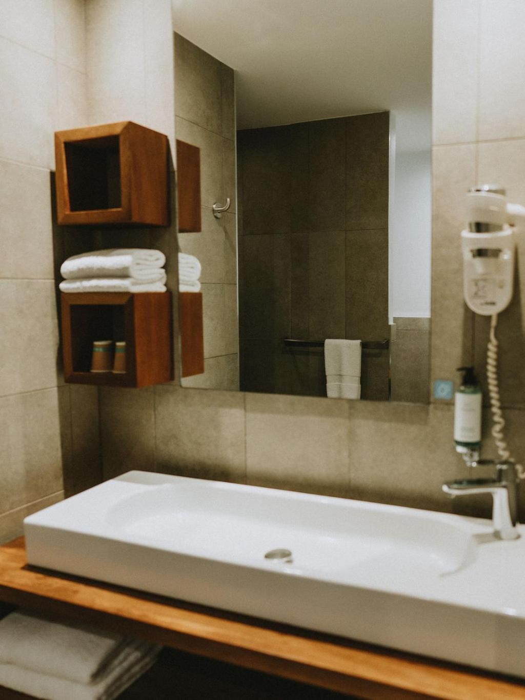 Hotel situé en ville avec parking à proximité de tous les commerces et à 2 rues de la plage et du port. Le personnel accueillant. Grande chambre. très propre.. la piscine pas très grande mais chauffée.