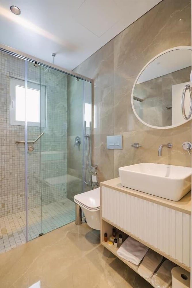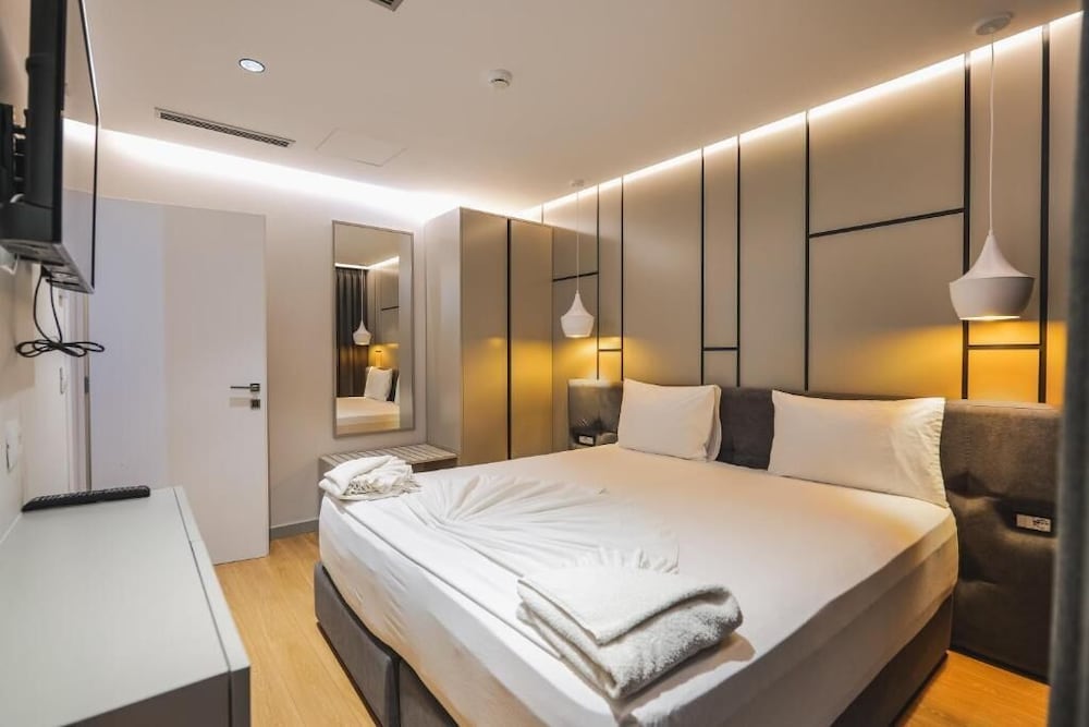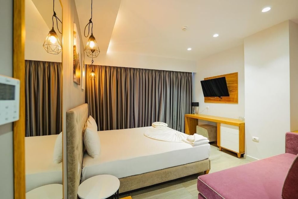 Great hotel in a great location in the center of the action in Ksamil. Very clean, comfortable and spacious rooms. Great bed, excellent water pressure in the walk-in shower, quiet AC, and a nice balcony with great views of Ksamil islands. A short walk to the beach and dozens of restaurants all around. Very highly recommended