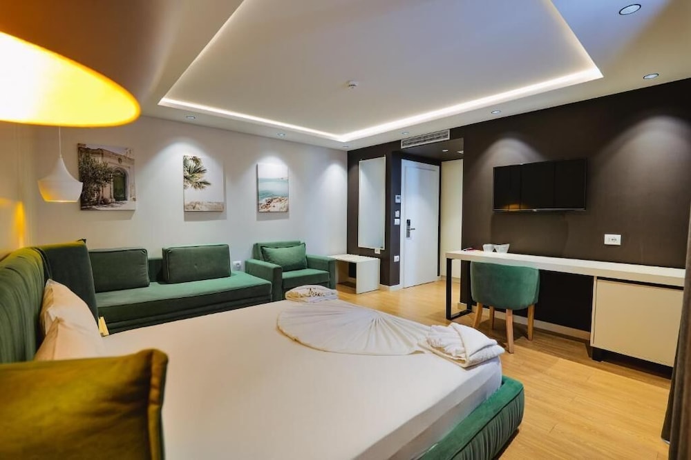 Really pleased with our stay here and would definitely recommend. It felt like a brand new hotel. Pool areas were immaculate and the one on the roof on 5th floor had beautiful views of Ksamil islands. The room had a sofa bed for the kids, and they would’ve preferred a bed or sofa each, but only a minor issue and didn’t impact our stay. Staff were friendly and attentive. Caesar salad was the best I’ve ever eaten, and the Gorgonzola pasta was amazing! A perfect place to enjoy some peace and quiet and relax by the pool away from the busy beaches