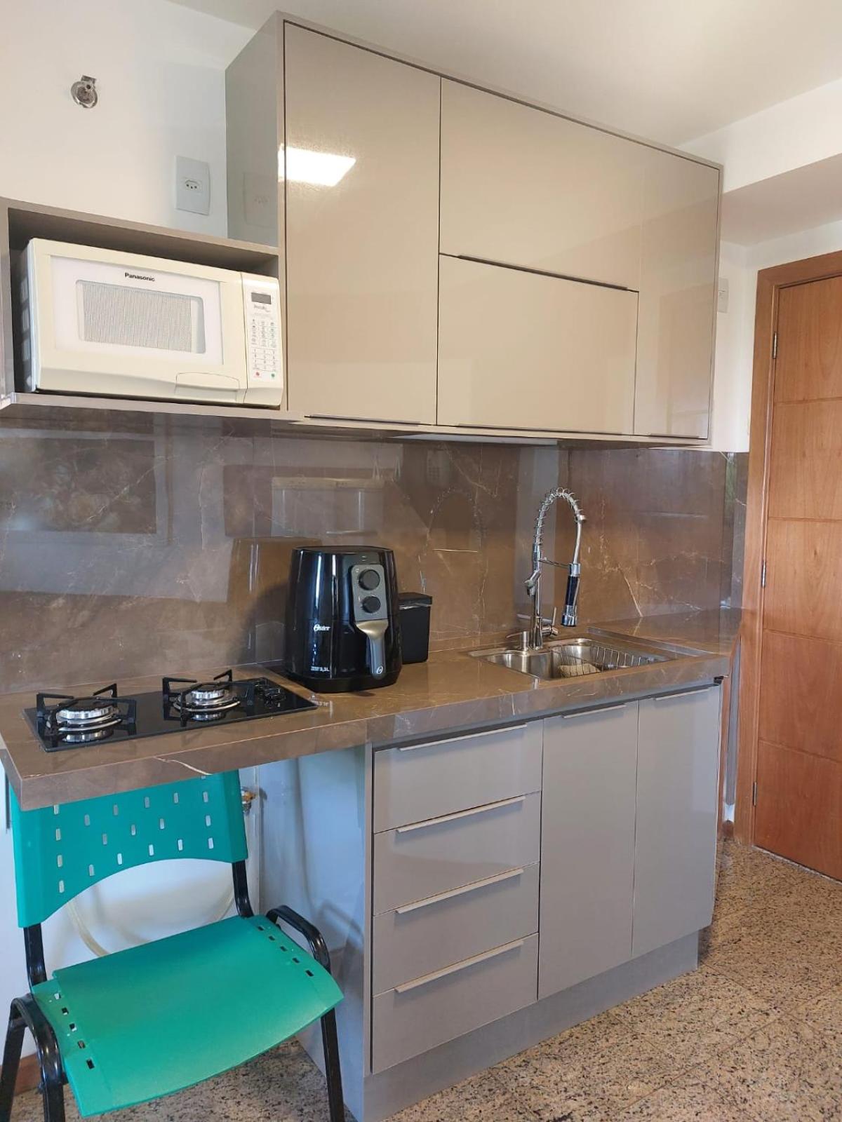 O quarto é bem equipado. O espaço de lazer e área social são excelentes.