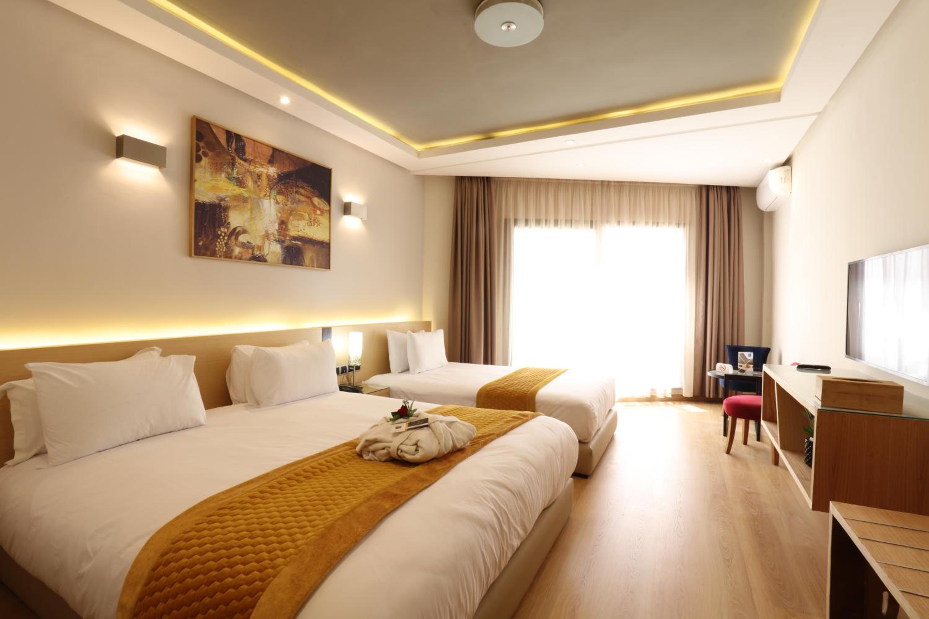 Je suis désolée la qualité n'a rien avoir avec le prix et le classement 4* même le petit déjeuner et minable pas de soupe pa de omelette des boissons sans des nectar pas de jus de fruits frais l'accessibilité de Tax ou drive n'est pas facile a cause des ⛔ il ya meme de l'humidité sur les murs .je suis vraiment désolée . Ça représente l'image du Maroc ce n'est pas Comme ça que ça va continuer ..