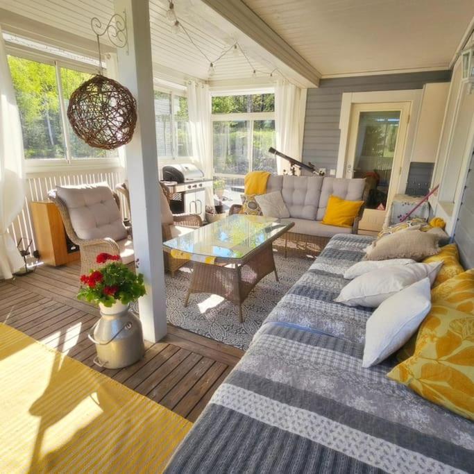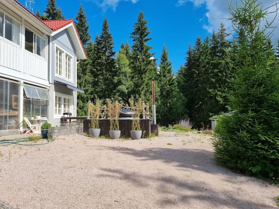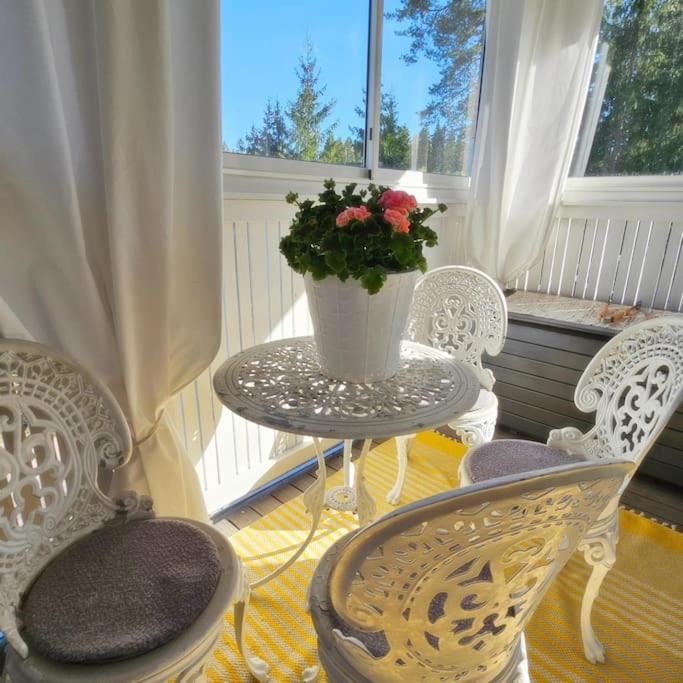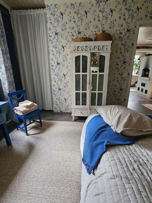 A lovely house with a great atmosphere. You feel like you are visiting a very friendly hostess who accommodates guests in two rooms. A well-equipped kitchen where you can prepare your own meals, a refrigerator in your own room. Living space on two floors, including tv's and a lovely dreaming place upstairs, i.e. lounge chairs, with a view directly into the forest. A wood-heated sauna is available and there is a pond in the yard where you can take a dip. We would definitely like to come again.