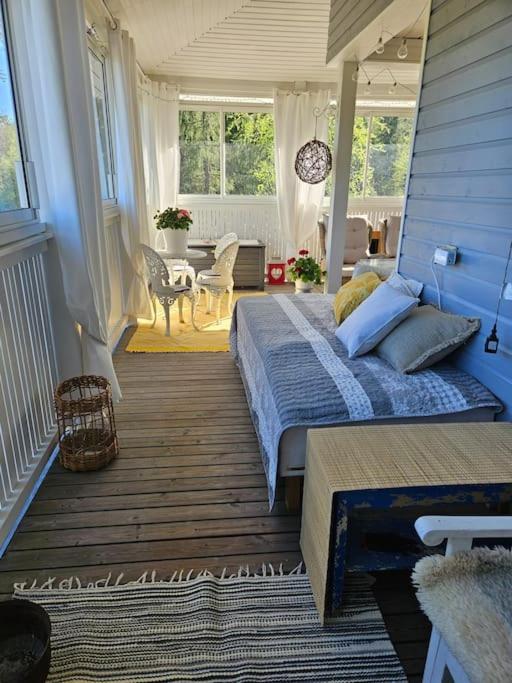 This was so far the cleanest house I have ever seen. Everything is very artfully decorated. There are two rooms Blue i.e. Sininen and Yellow, Keltainen houne. There is a beautiful wooden sauna, a well equipped kitchen. Beautiful bed linen and comfortable bed.