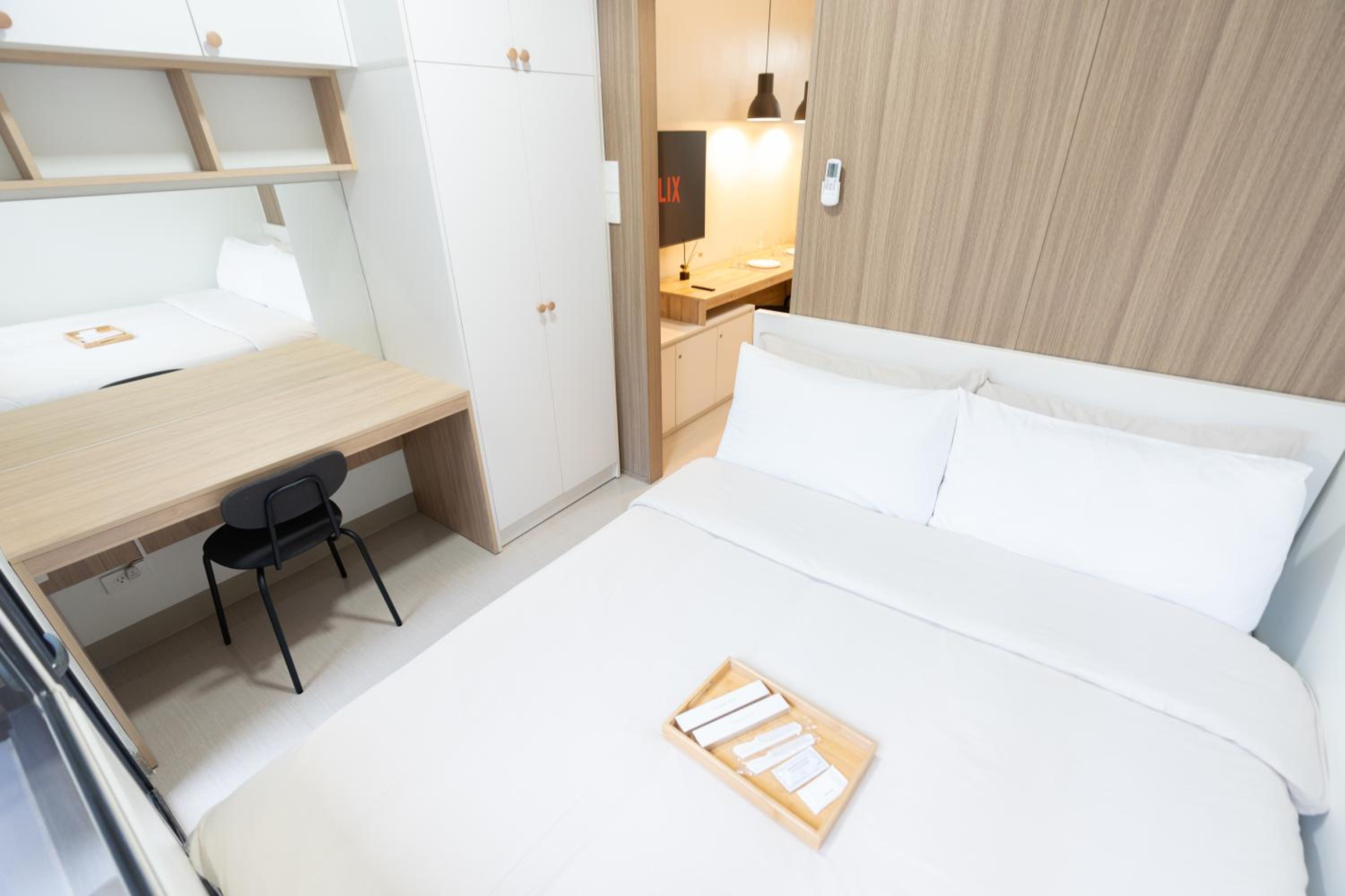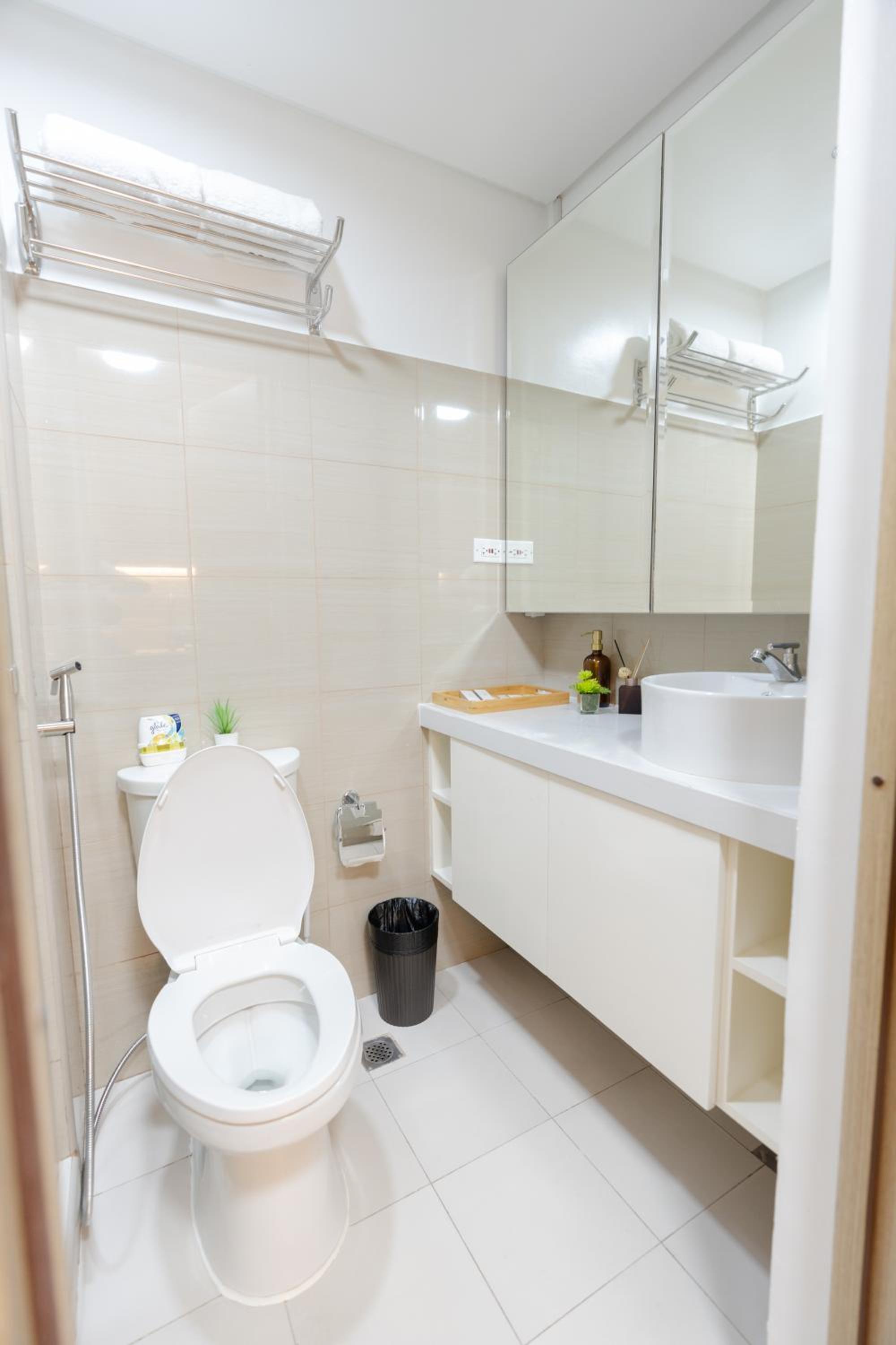 I did not find the room provided was not clean. There were cockroaches found and waste bins were not provided with plastic. There were washing machine available, however, you couldn’t dry them at the balcony area. Laundry services were also available downstairs, but with some costs and time consuming (depending on the number of laundry of the day).