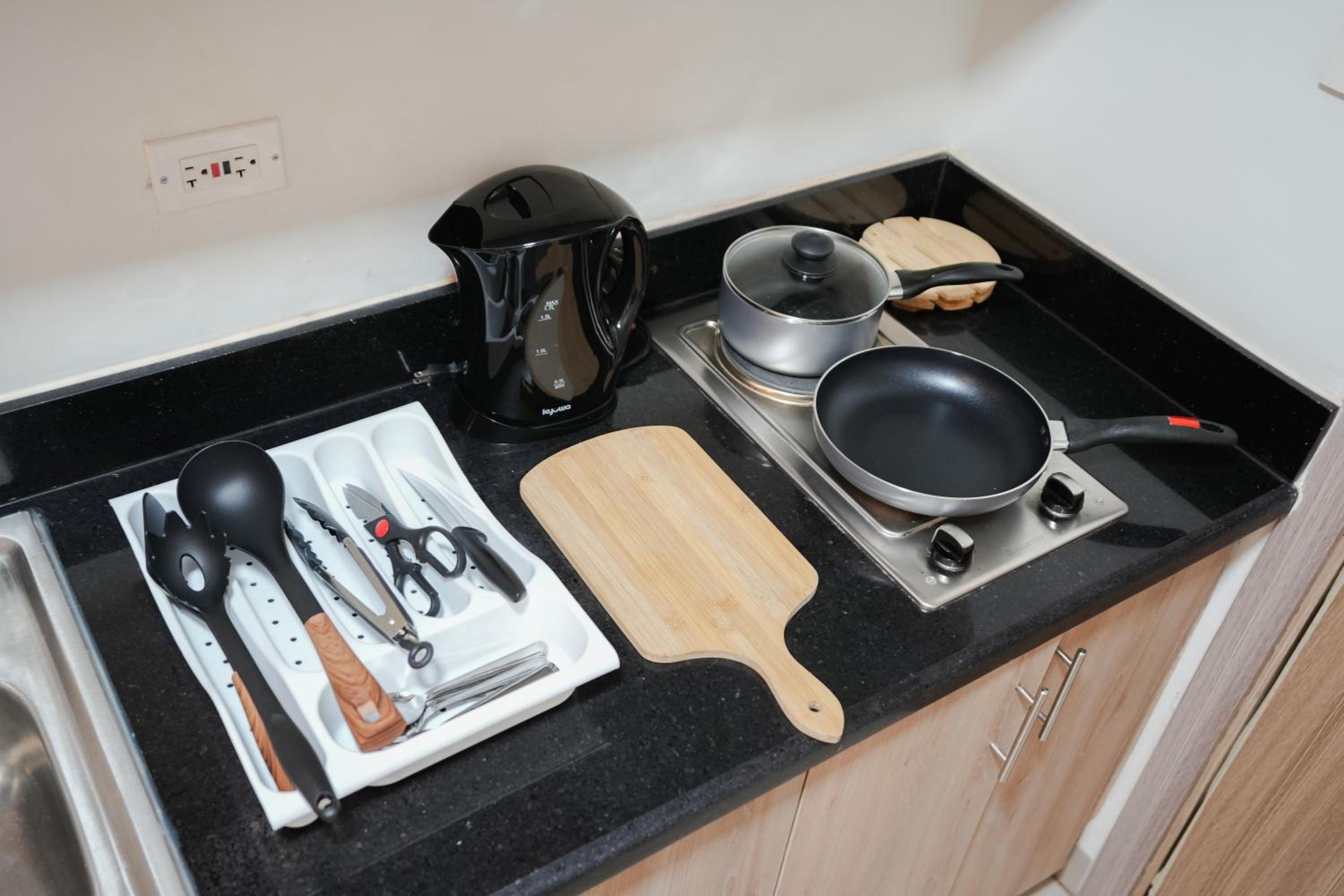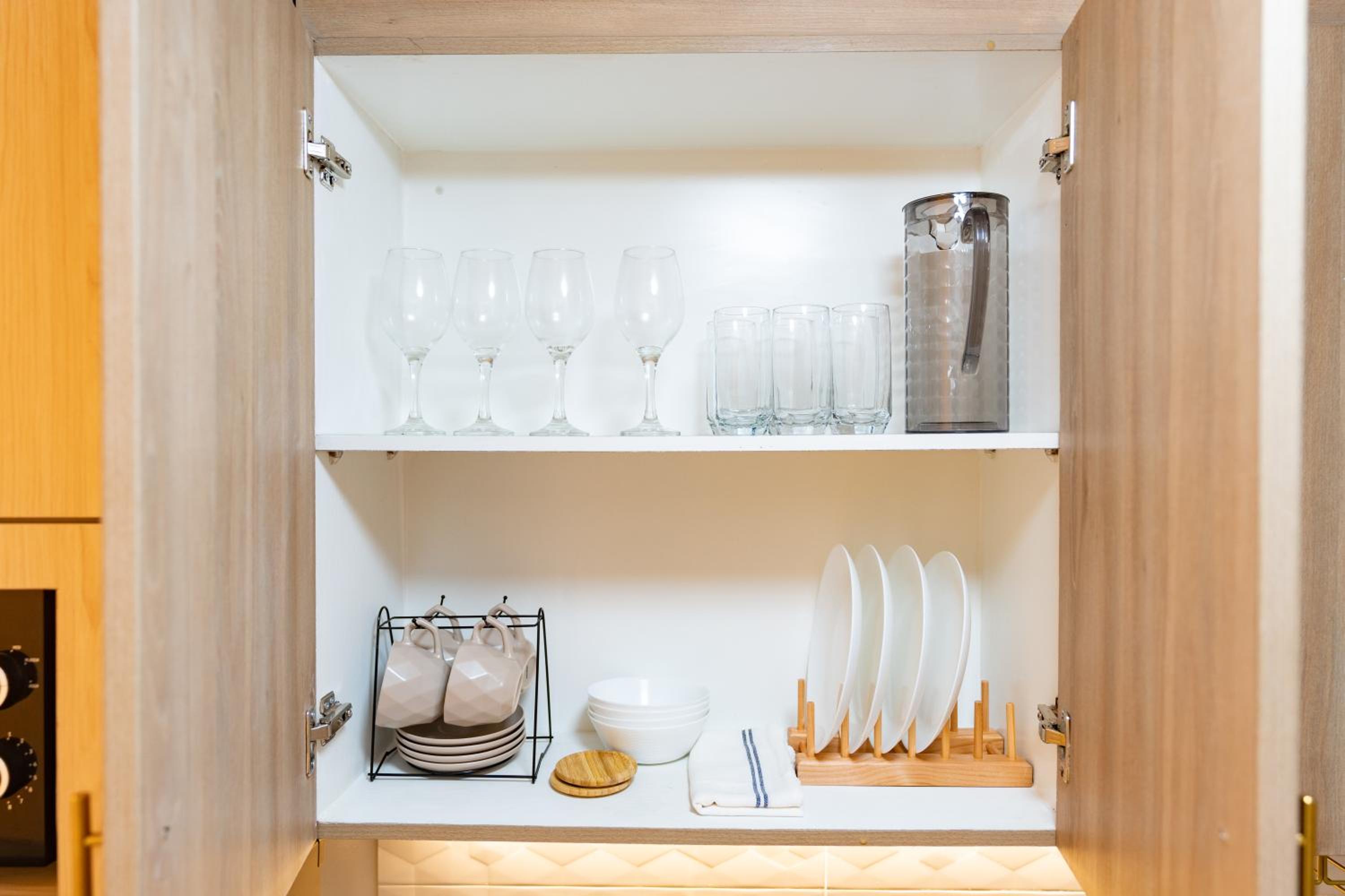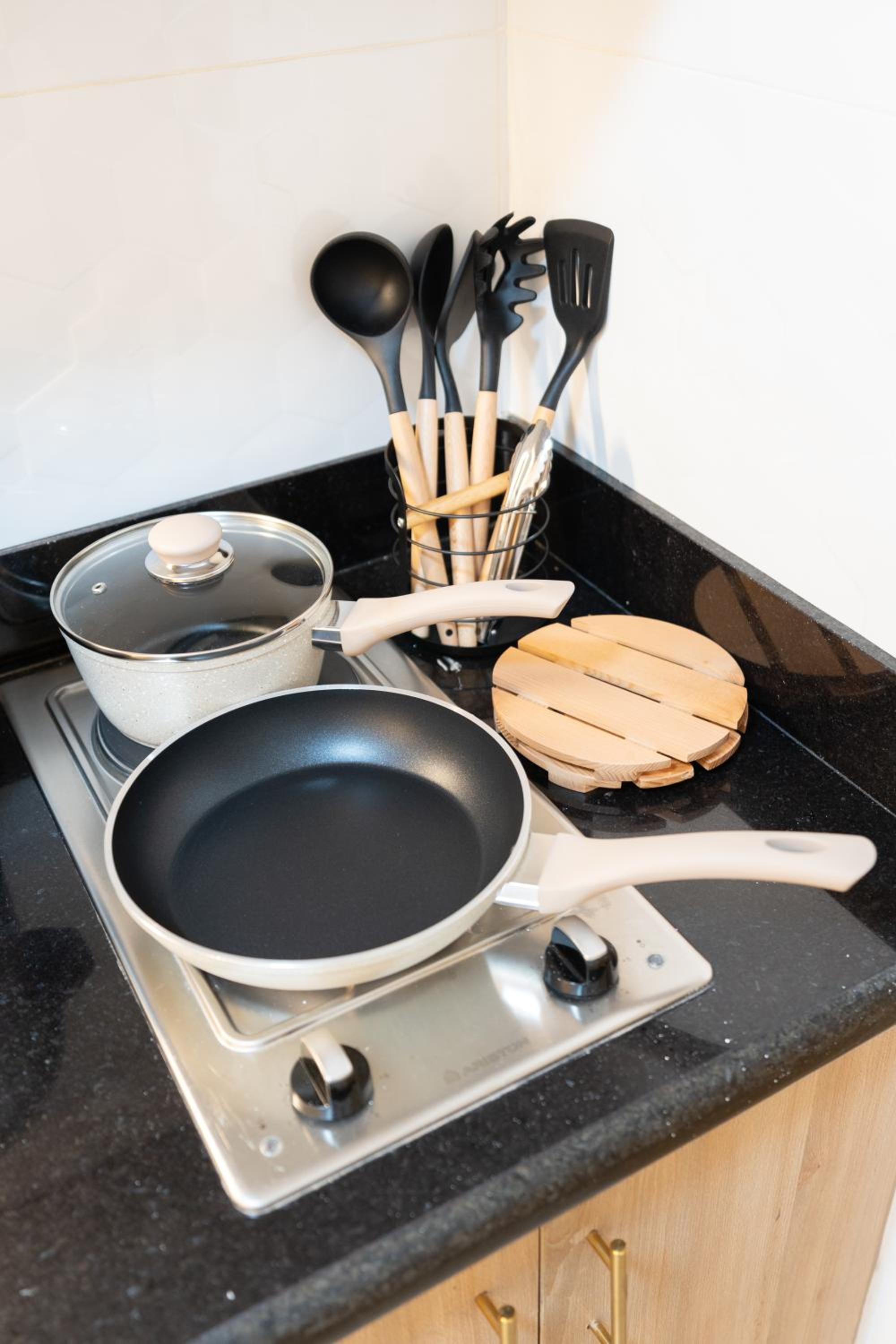 - Had everything to make a meal but we didn’t need it. It also had a washing machine.