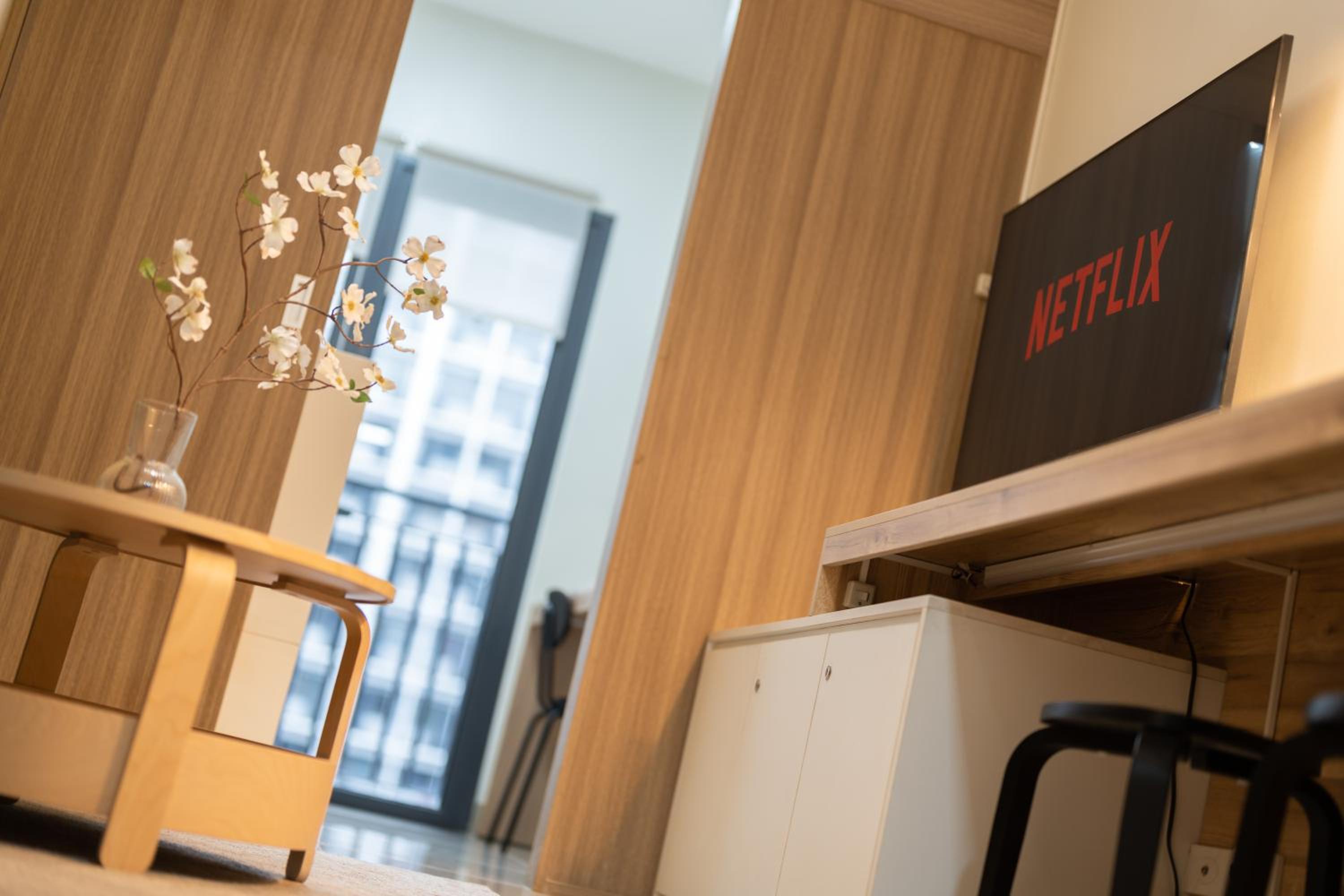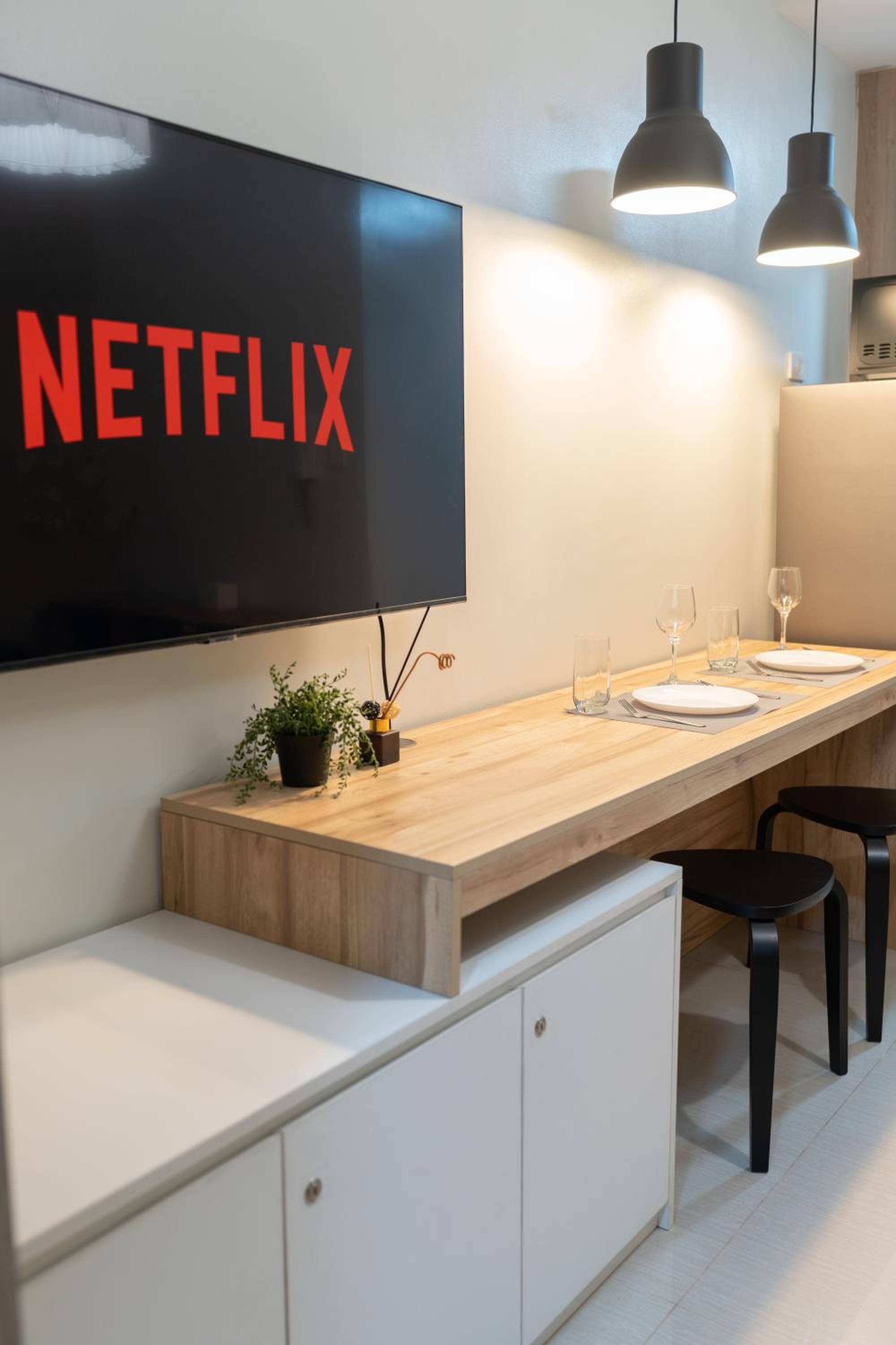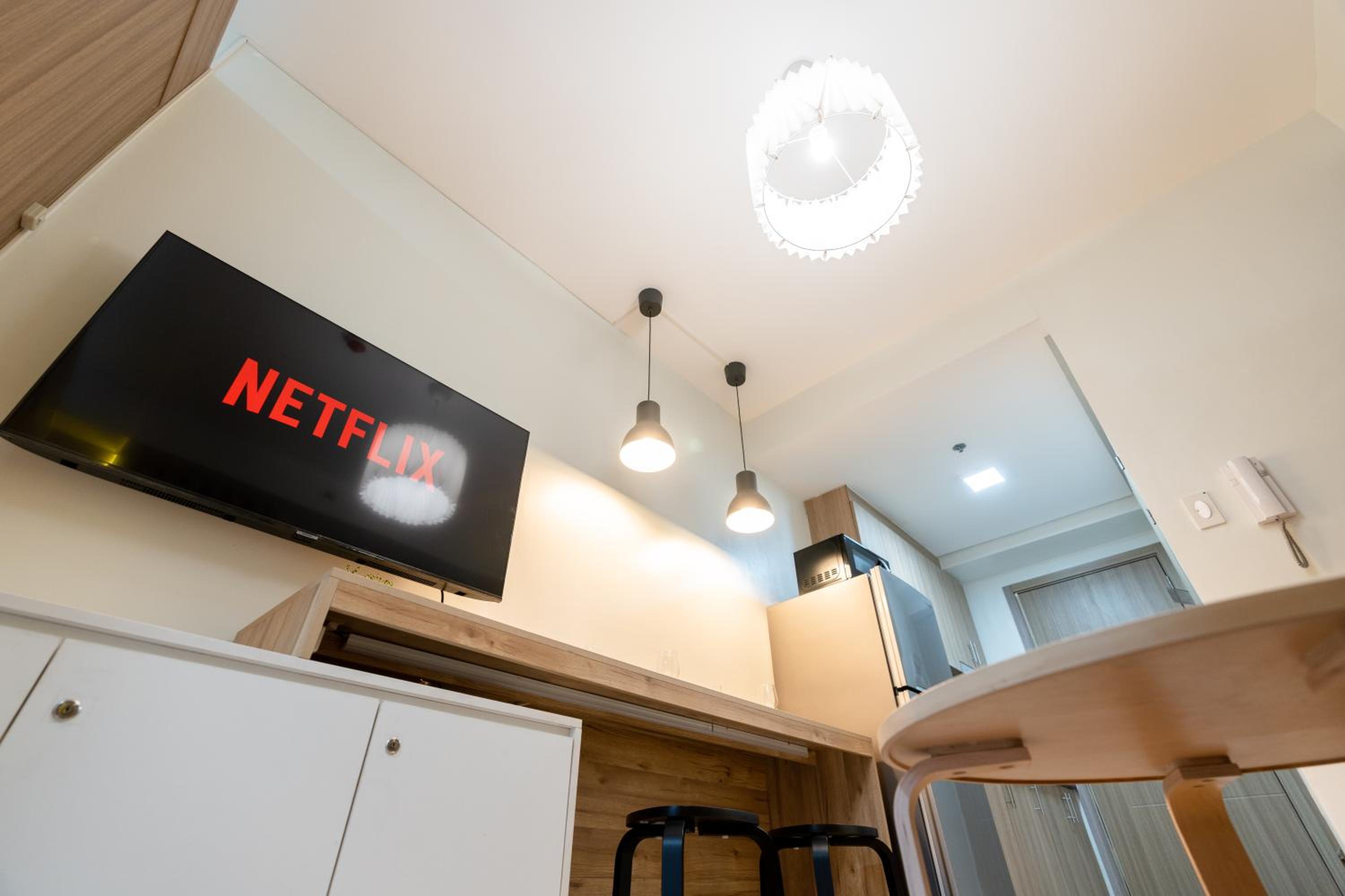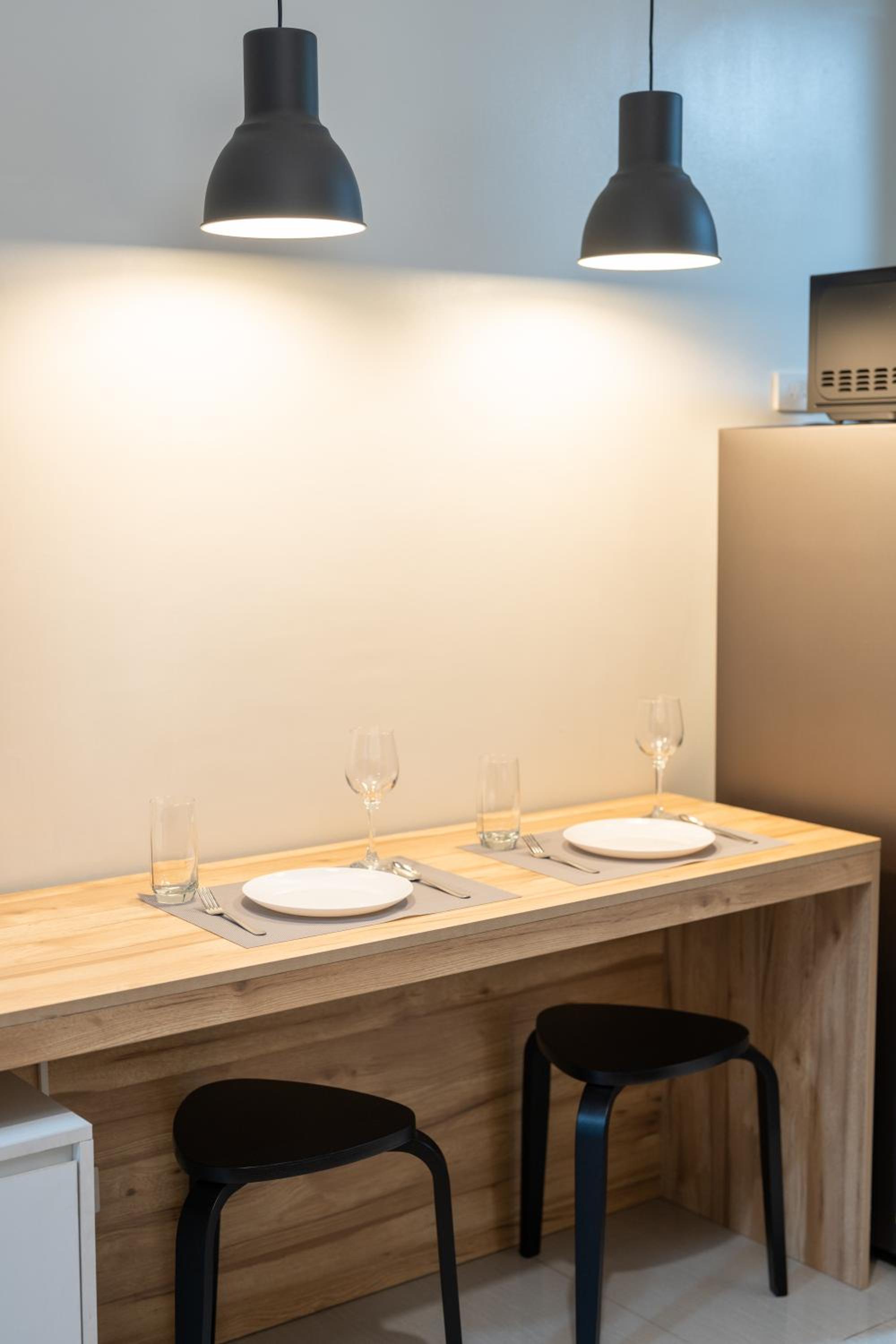 - Really nice place. Bit small but nice and modern. It’s a studio but there’s a wall to separate from the “living room”.