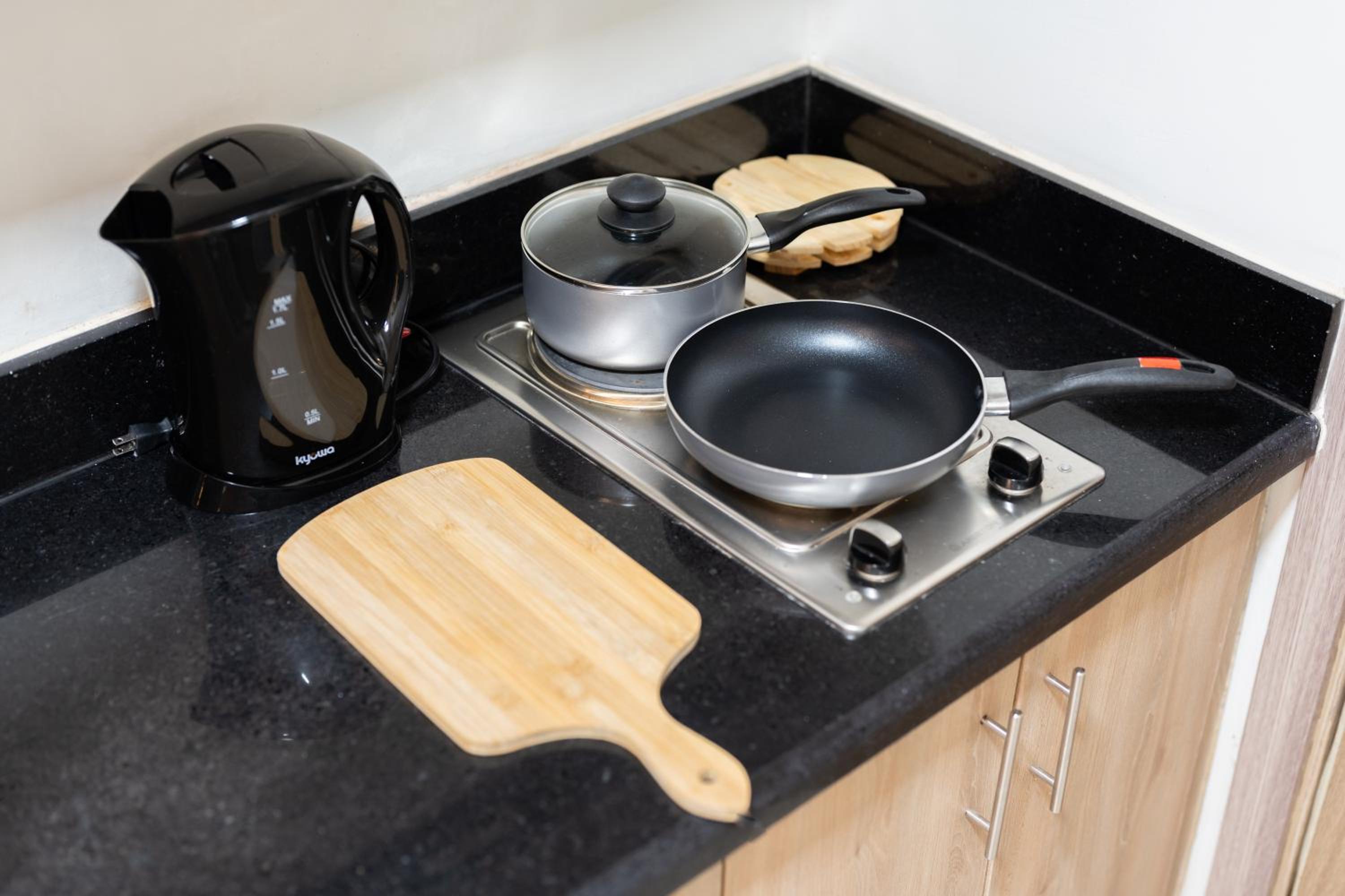 Fully Equipped Kitchen and Balcony with Pool Views - Feel at home with a fully equipped kitchen and relax on the balcony while enjoying picturesque pool views.
