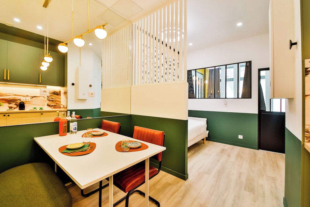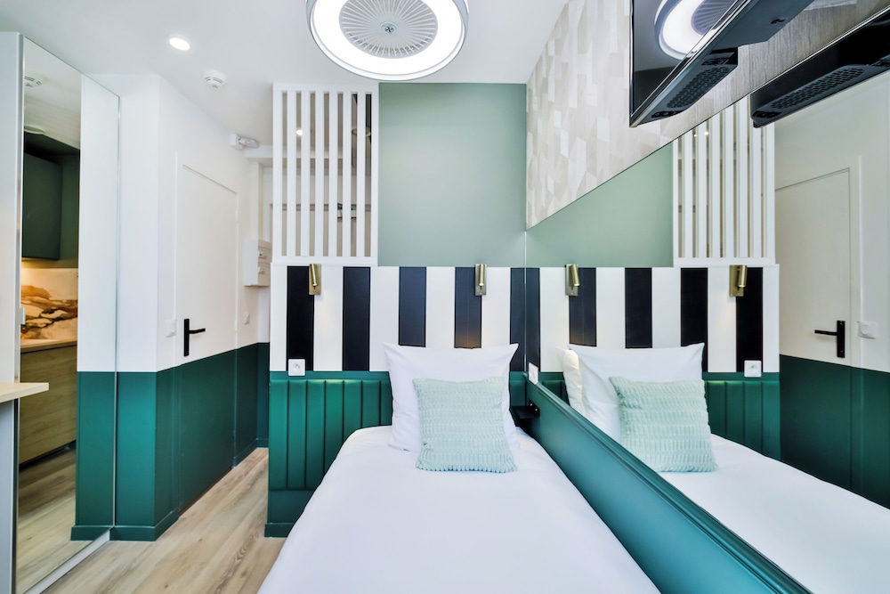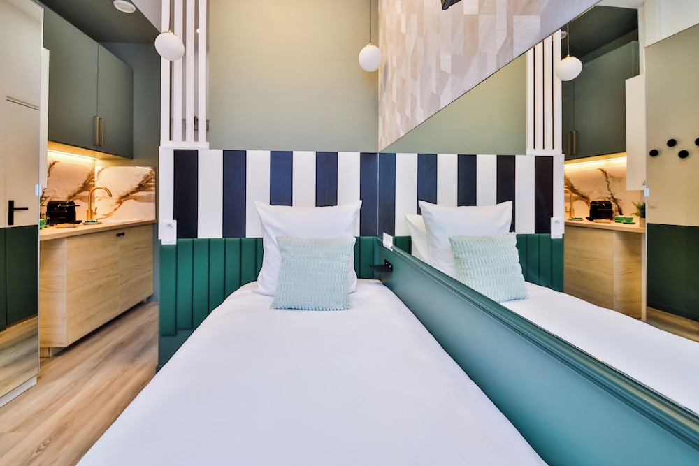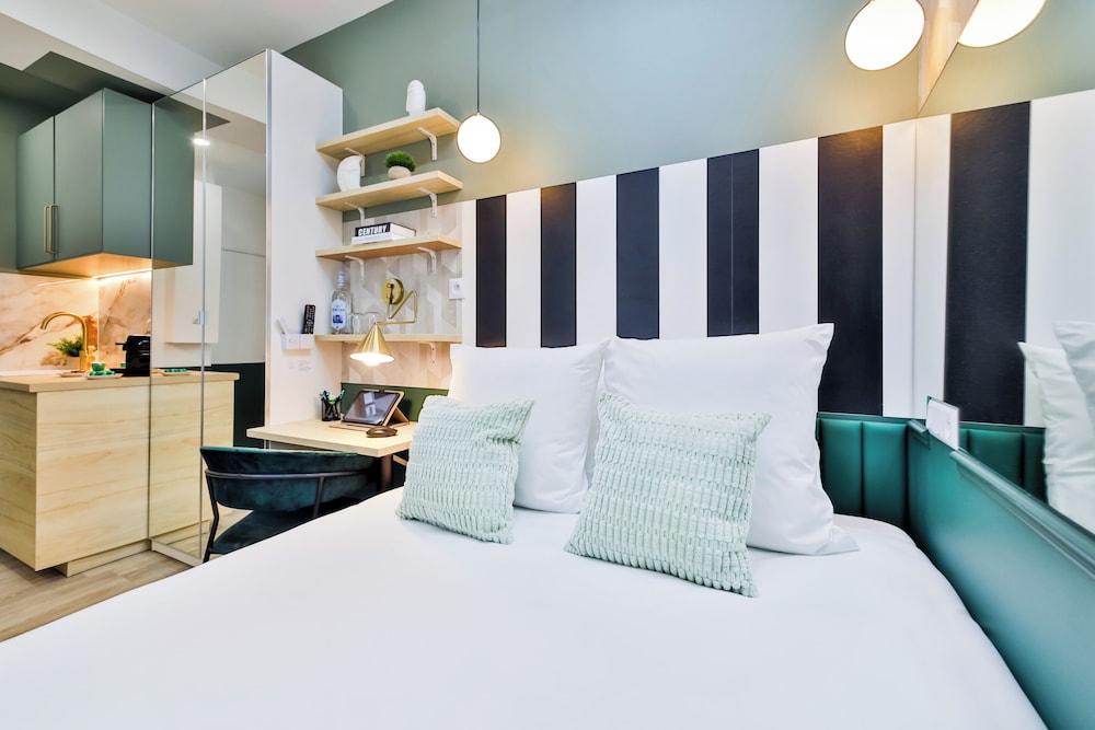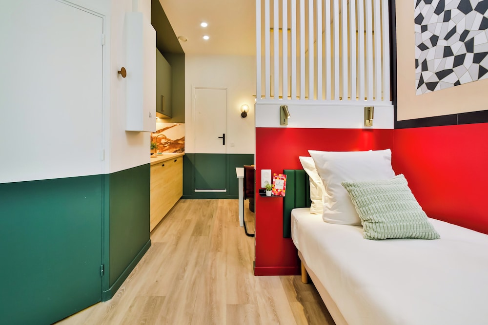 The room was as expected in terms of size. It was modern and had a handy little kitchen. The drawbacks were that the floor wasn't clean enough in my view and the kitchen bin was full of rubbish. I let the staff know by WhatsApp which was an easy process and the issues were resolved immediately. The windows are dirty and there is a lack of love given in general to the standard of the room which could have been so much better with just a little attention. Very reasonable rate for Paris though!