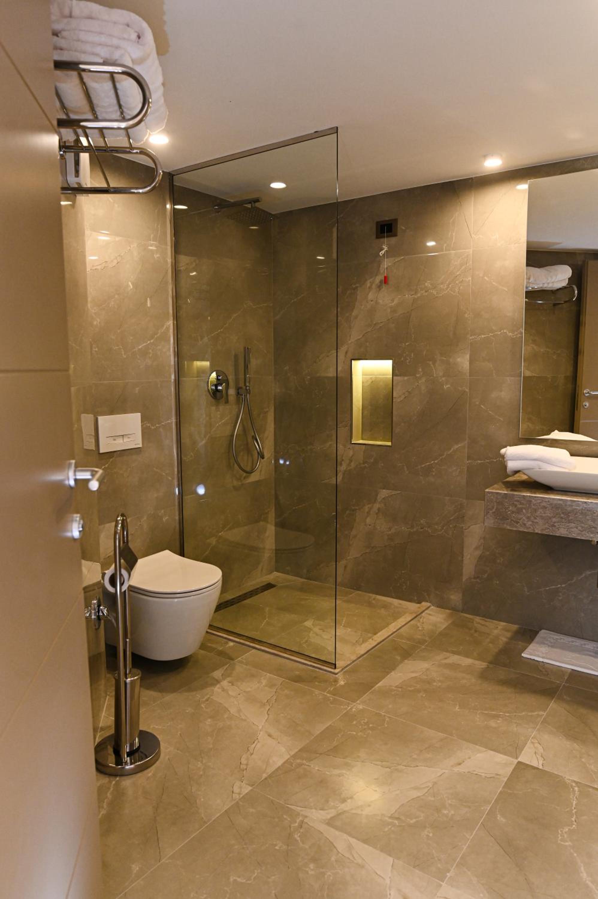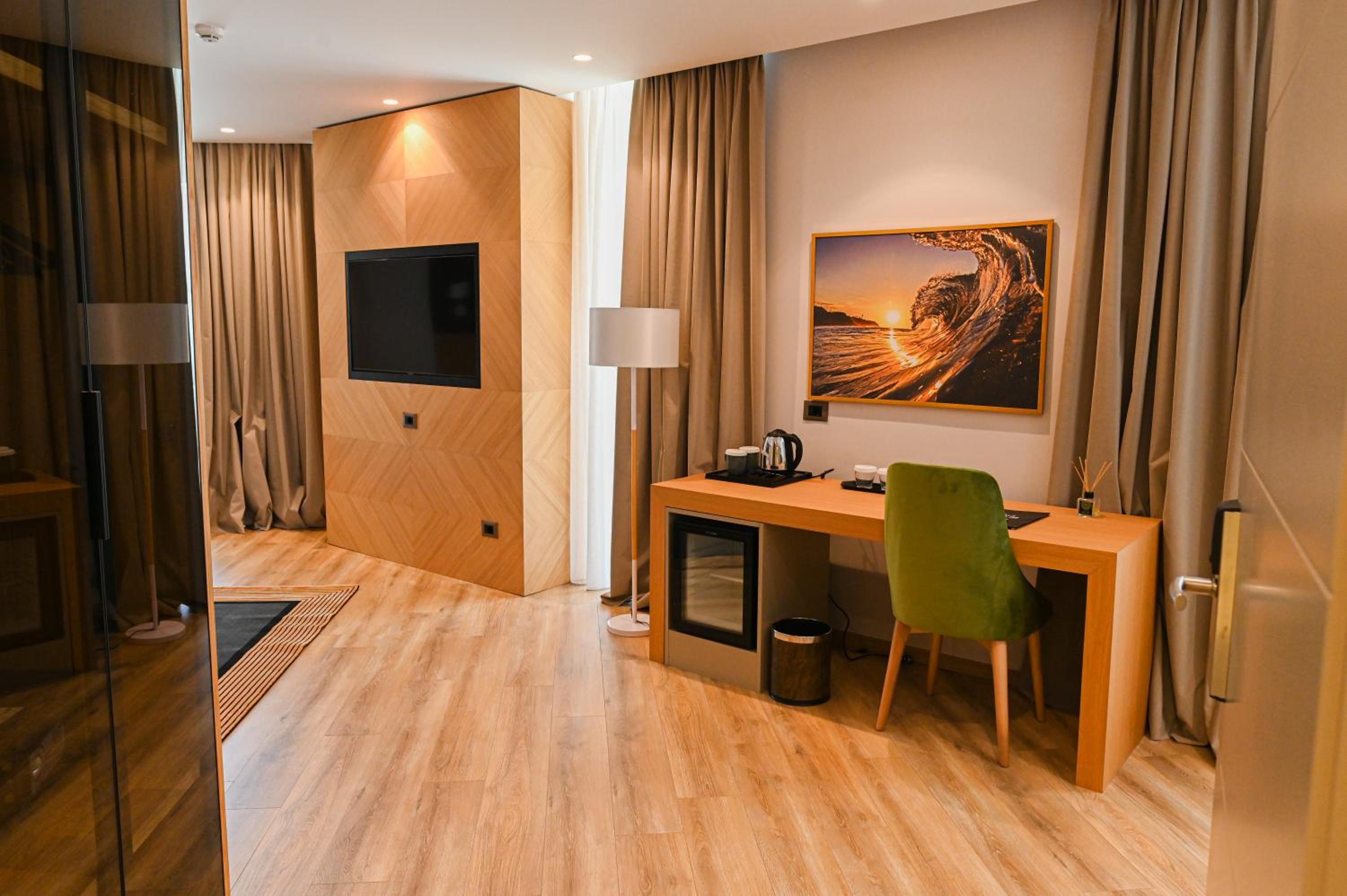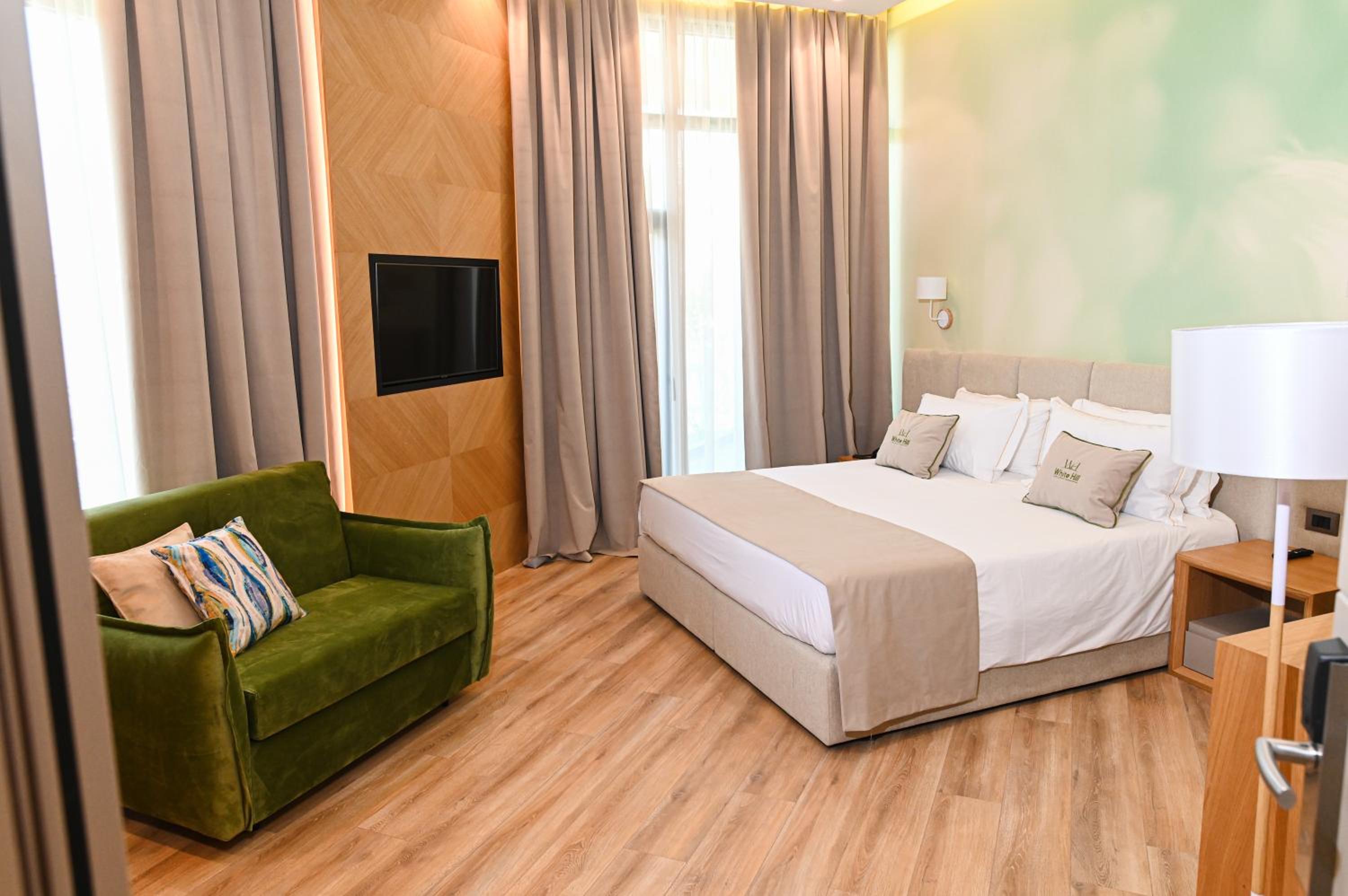 Stunning Outdoor Amenities: Enjoy a seasonal outdoor swimming pool, a garden, and a terrace overlooking the beachfront at White Hill Hotel in Durrës. The private beach area and bar add to the allure of this 4-star accommodation.