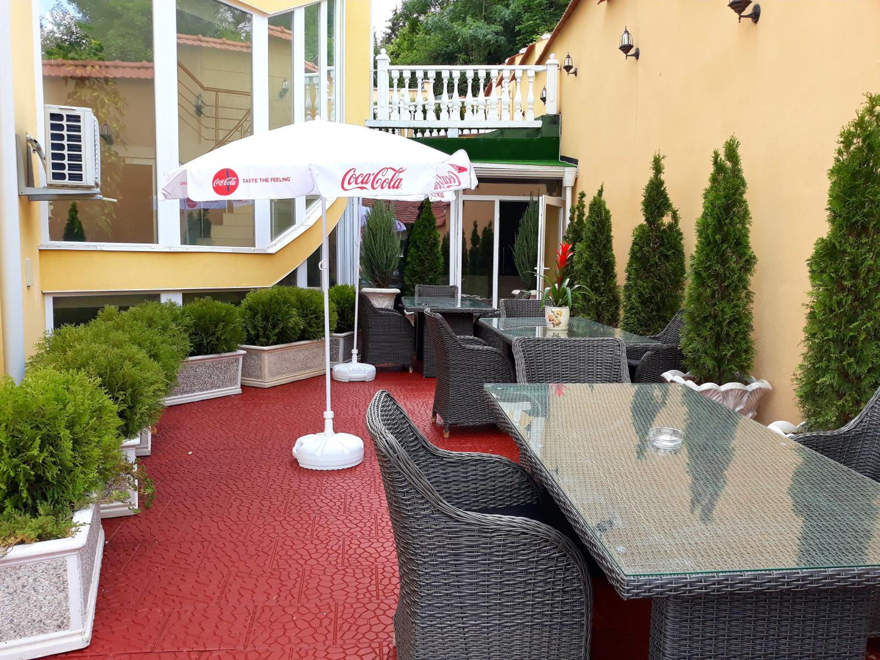 Garden Oasis: Enjoy the serene garden and terrace at Hotel Megas Bankya, perfect for relaxing after a day of exploring.