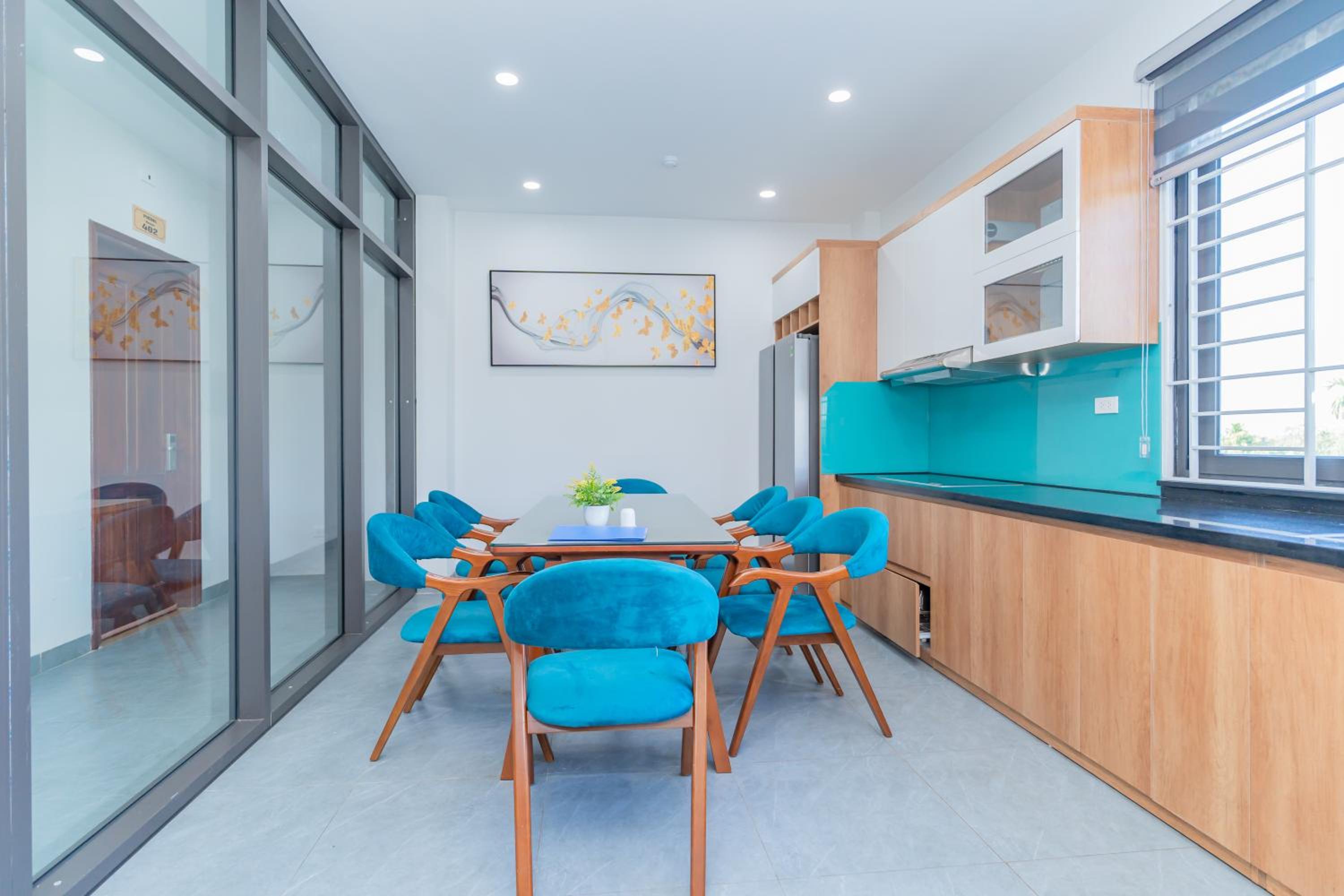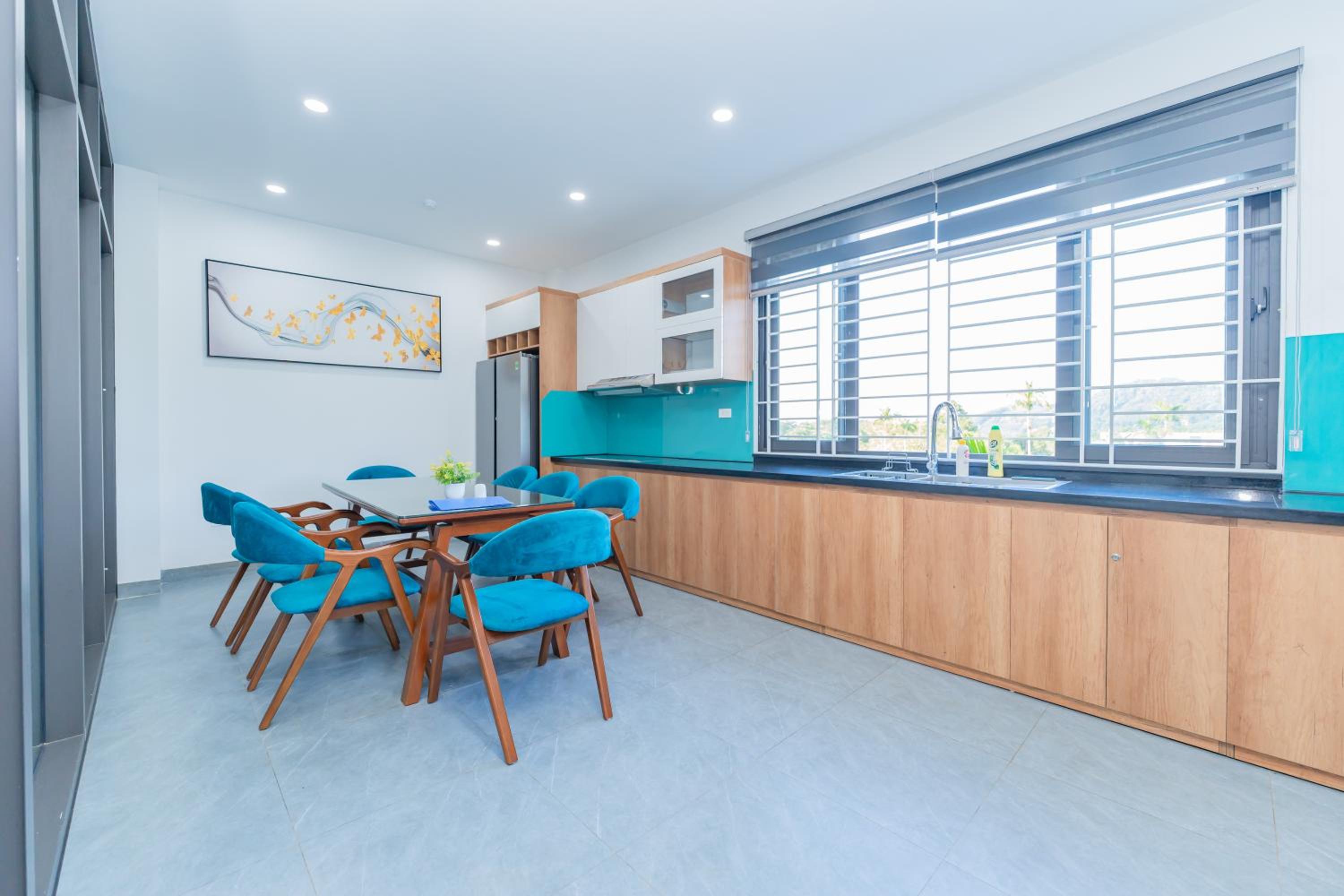 Having one kitchen per floor works perfectly especially when you are a group. Our breakfast was served in our kitchen, making it possible to have flexible timing.