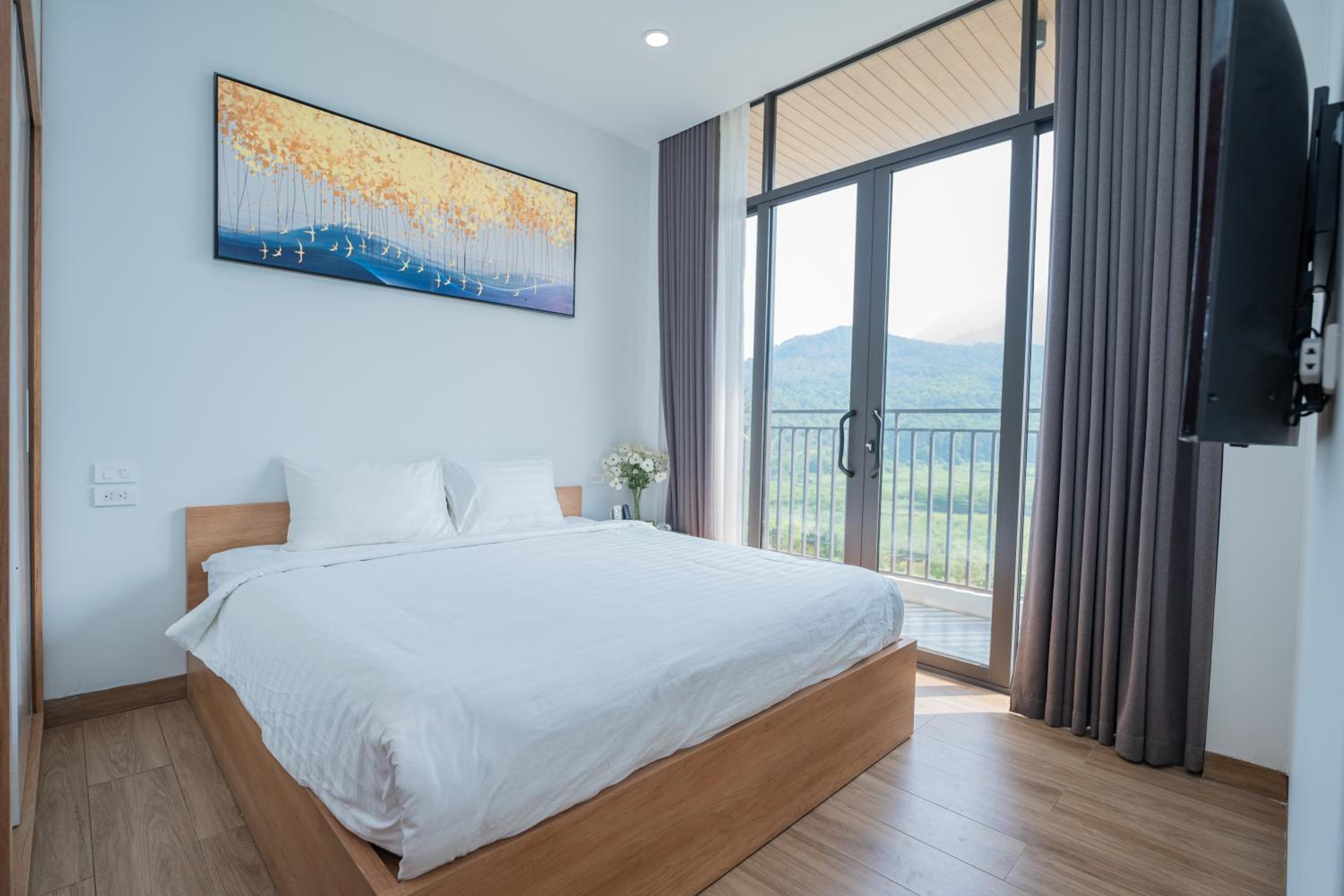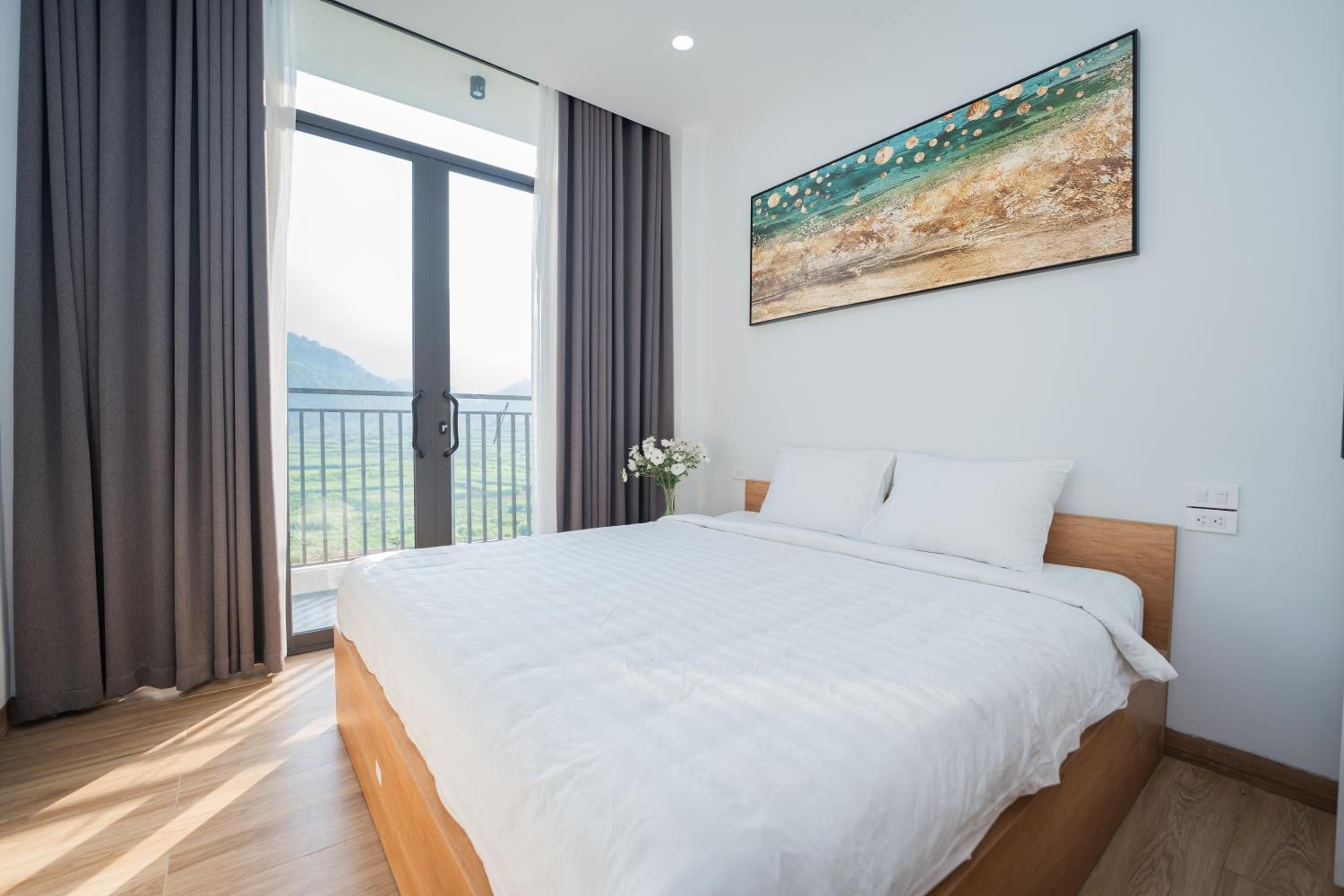 Crean and new with fabulous views of the mountains and national park. The staff were exceptional and couldn’t do enough for us. Nothing was to much trouble. We hired a motorbike off them and went exploring. Lovely welcoming family. Great to escape the chaos of Hanoi. 100% recommend .
