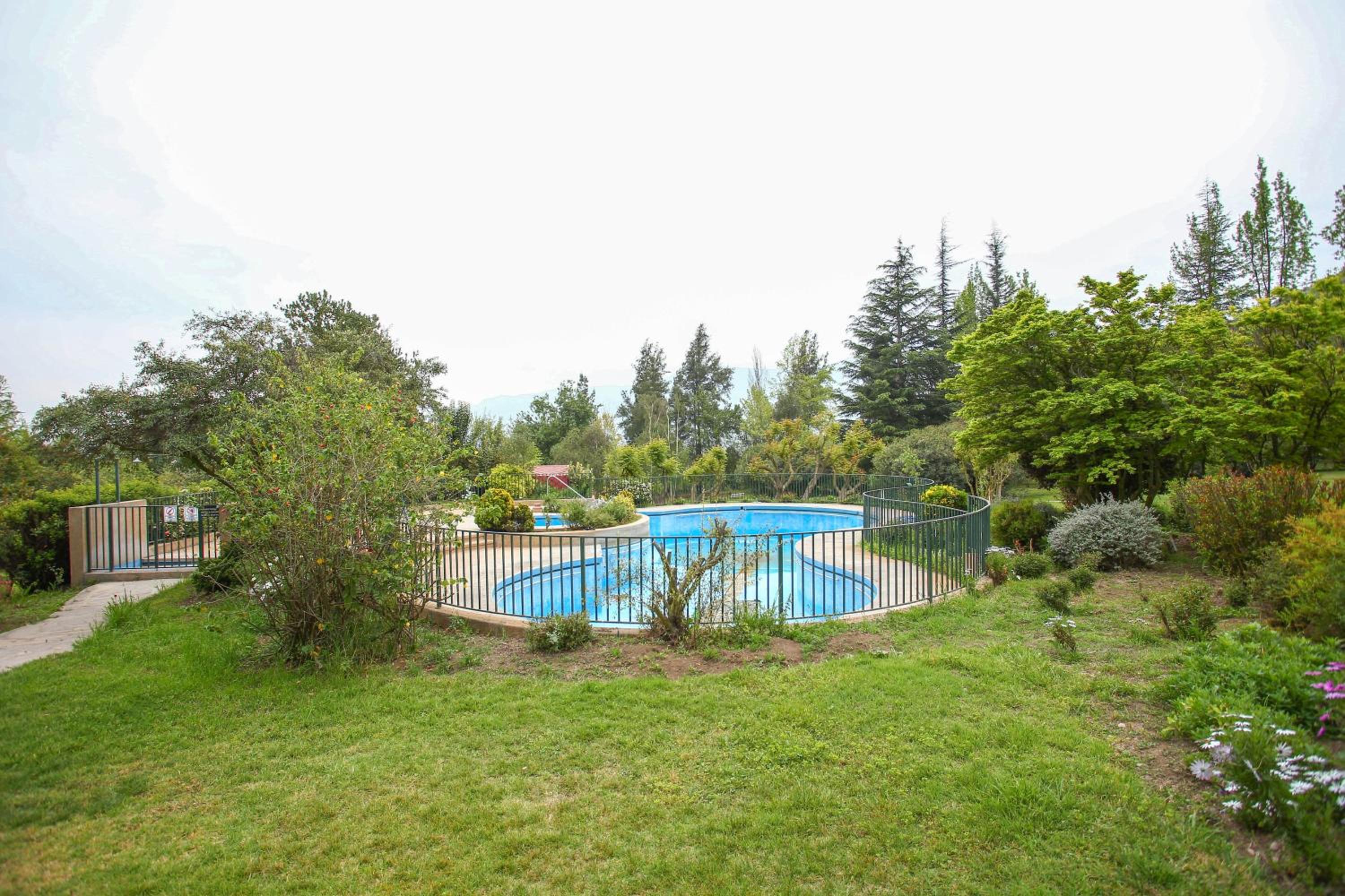 Cabaña con lo necesario, el recinto cuenta con varias piscinas, áreas verdes canchas de fútbol y tenis.