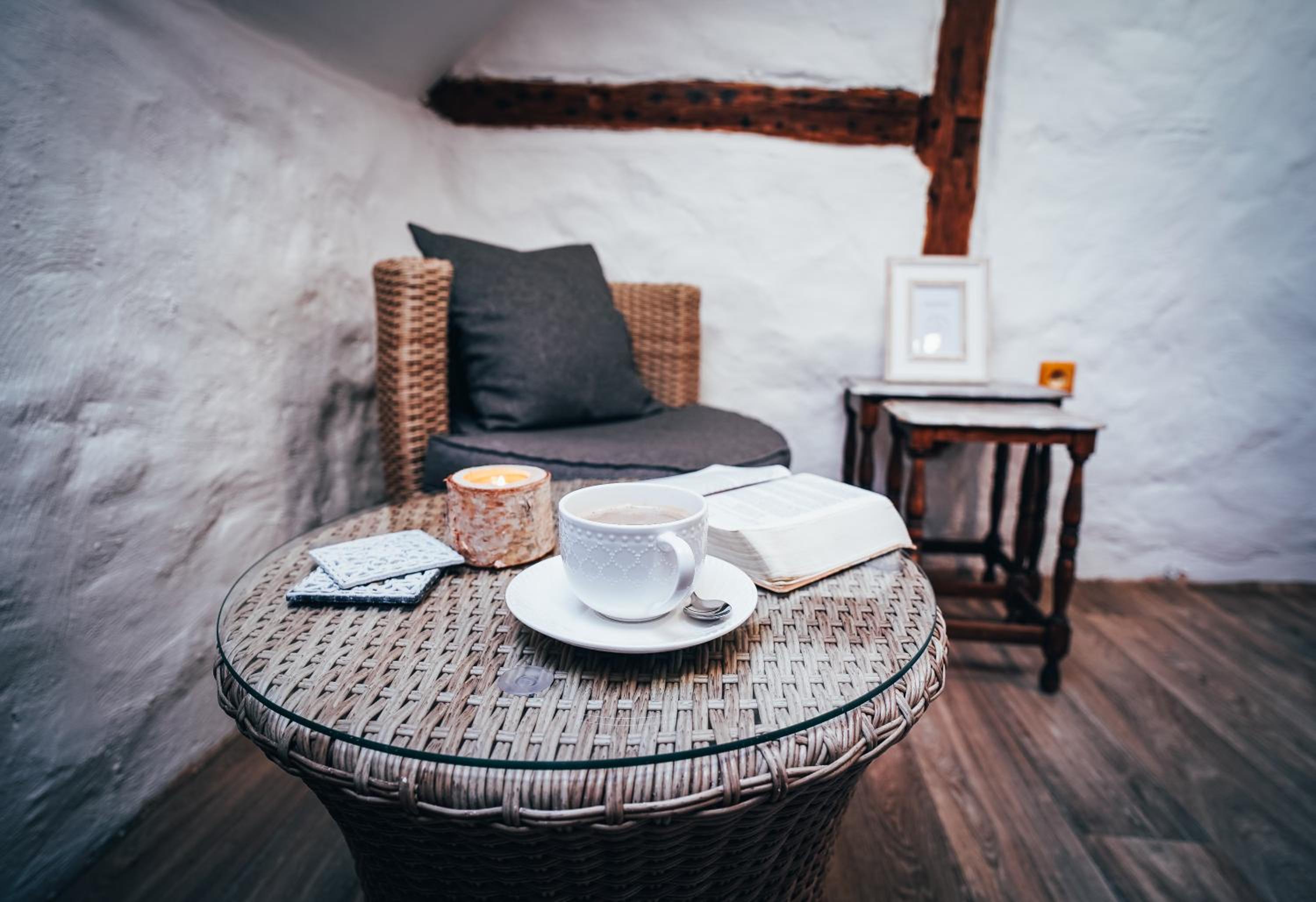 Een hele goede locatie, overal wandelpaden en prachtige natuur. Hele leuke, knusse kamer. Fijne keuken met alles wat je nodig hebt (kookspullen, magnetron etc.). Sfeervol. Aardig personeel.