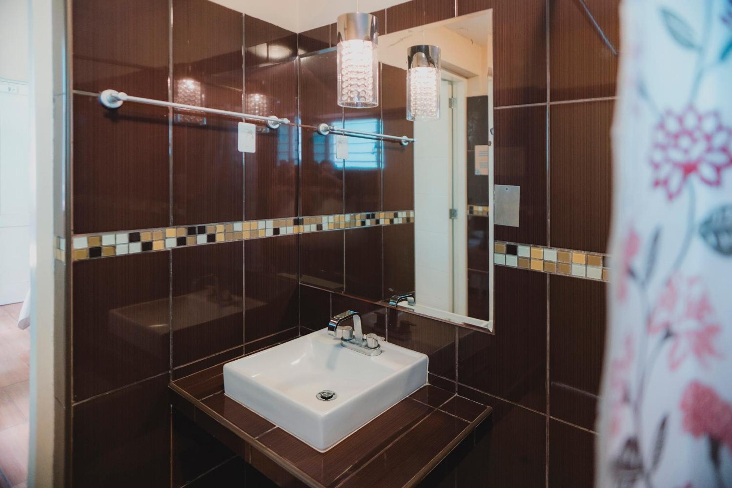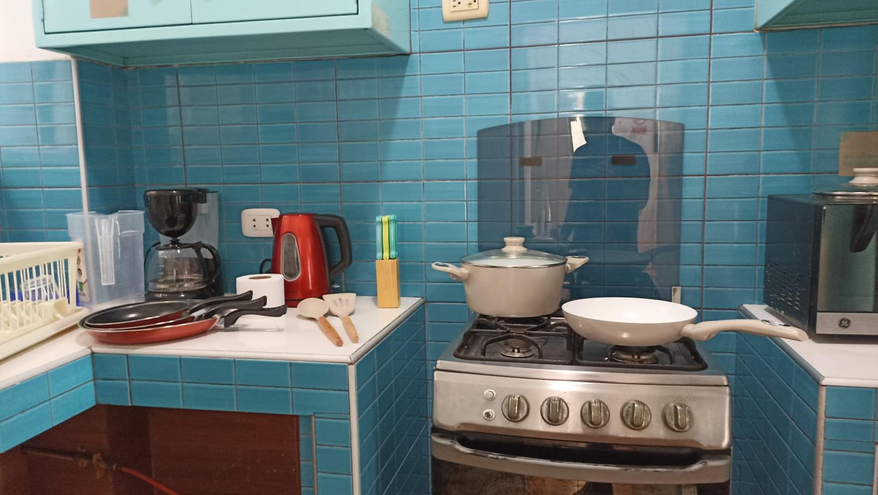 en el baño habían ceramicas de la pared faltantes donde se escondian cucarachas, tres veces tuve q matar una cucaracha durante media noche