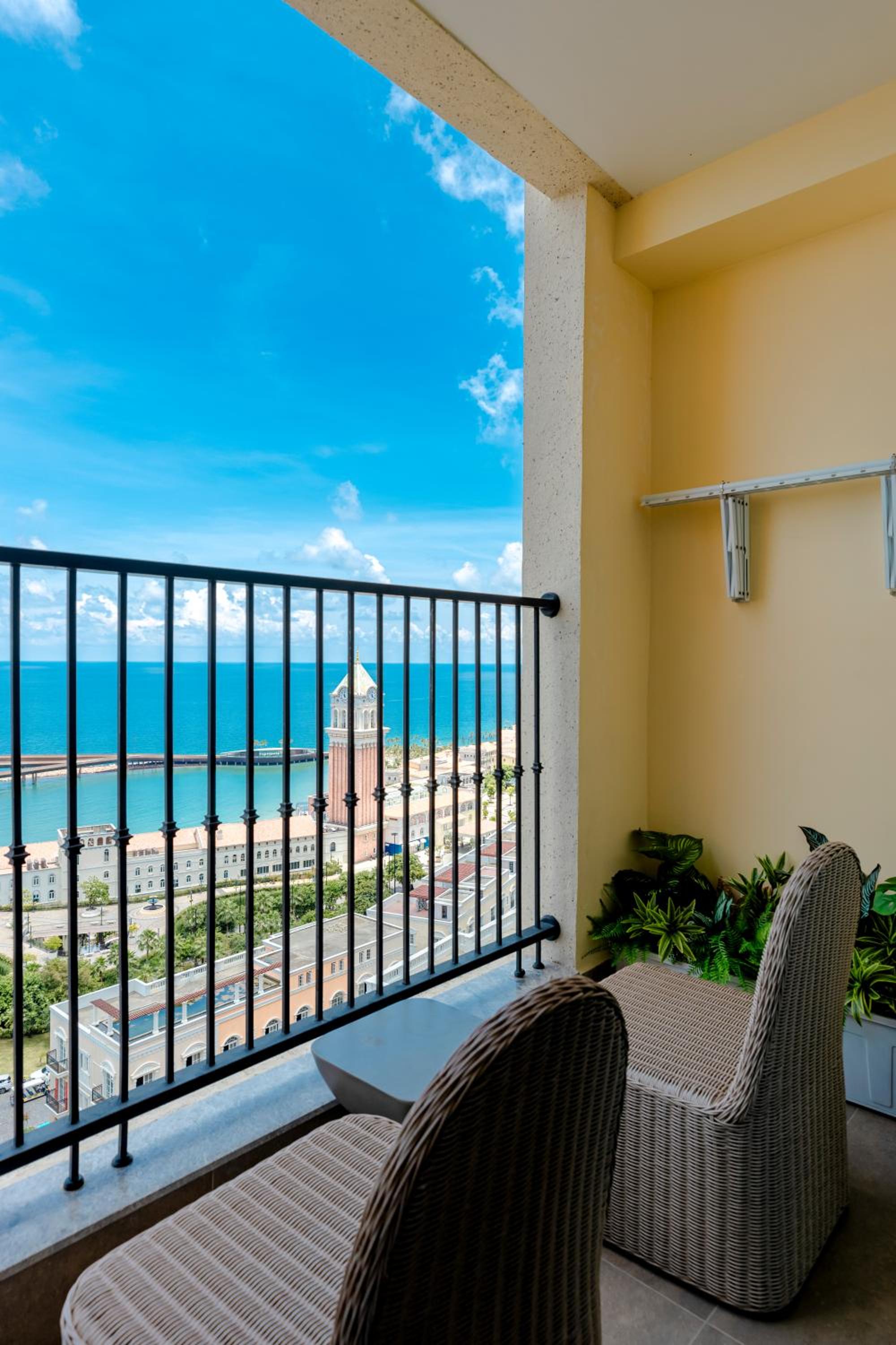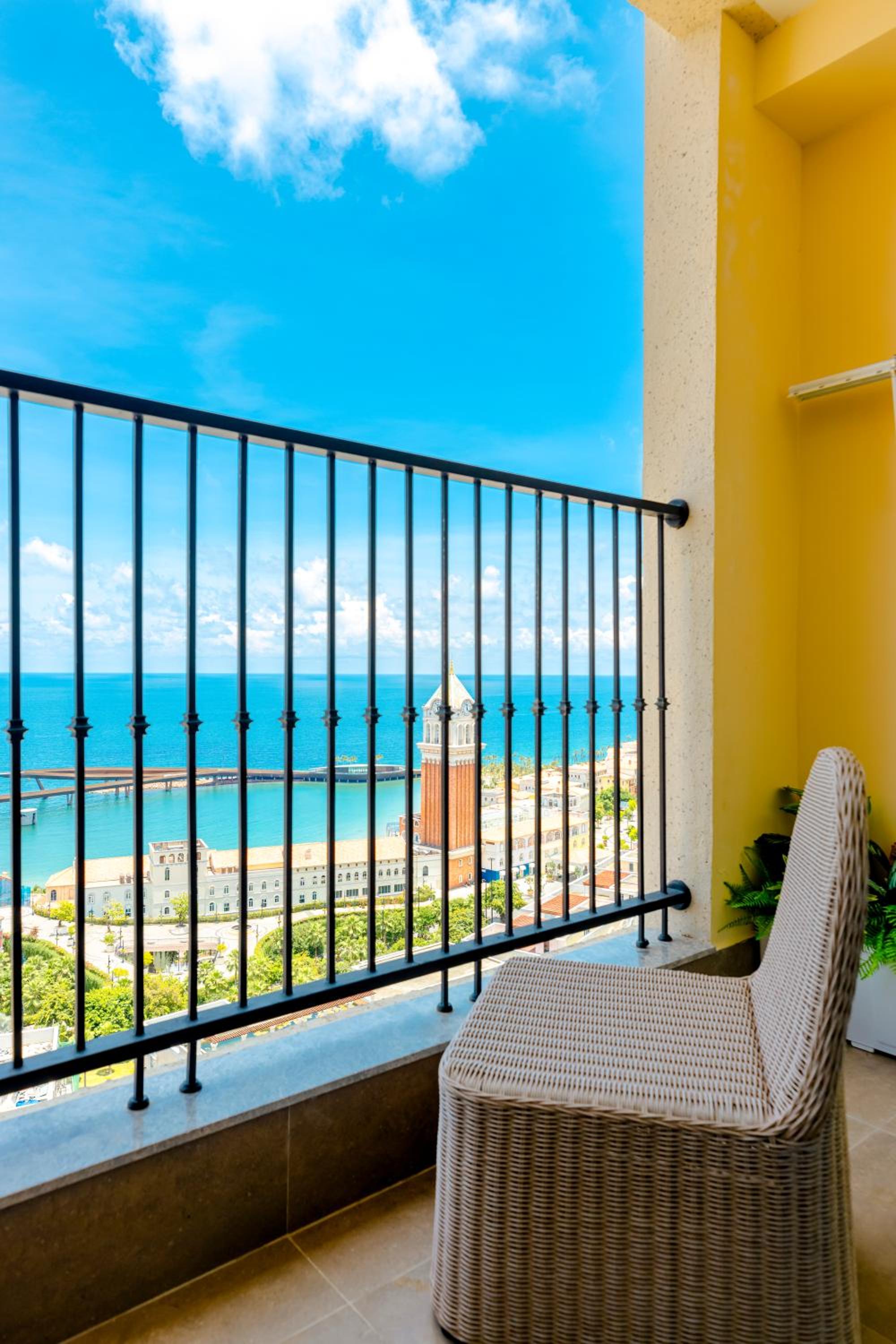 環境舒適,房間整潔,海景房間坐著露臺觀賞住接吻大橋、日落、晚上近距離觀賞煙花表演,超美麗;步行十分鐘便可到日落小鎮夜市;如不趕,可從中站坐免費巴士到太陽世界,步行數分鐘便到旅館。