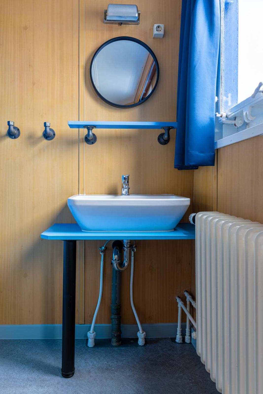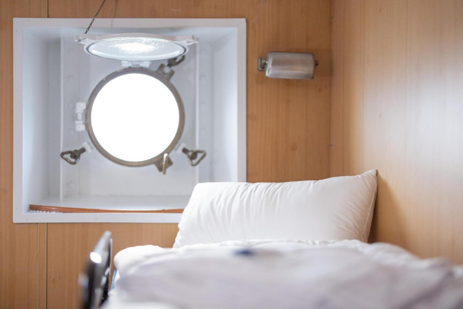 Es ist ein Schiff, also sind die Zimmer klein, die Fenster sind Bullaugen und die Wände aus Blech, also hellhörig. Das war zu erwarten. Aber man hat ja das besondere Erlebnis auf einem Schiff zu schlafen und draußen ist Wasser, direckt unter'm Bullauge. Ich hatte ein Bißchen Pech: Die Nachbarn kamen spät und waren laut und dann standen sie früh auf und waren wieder laut.