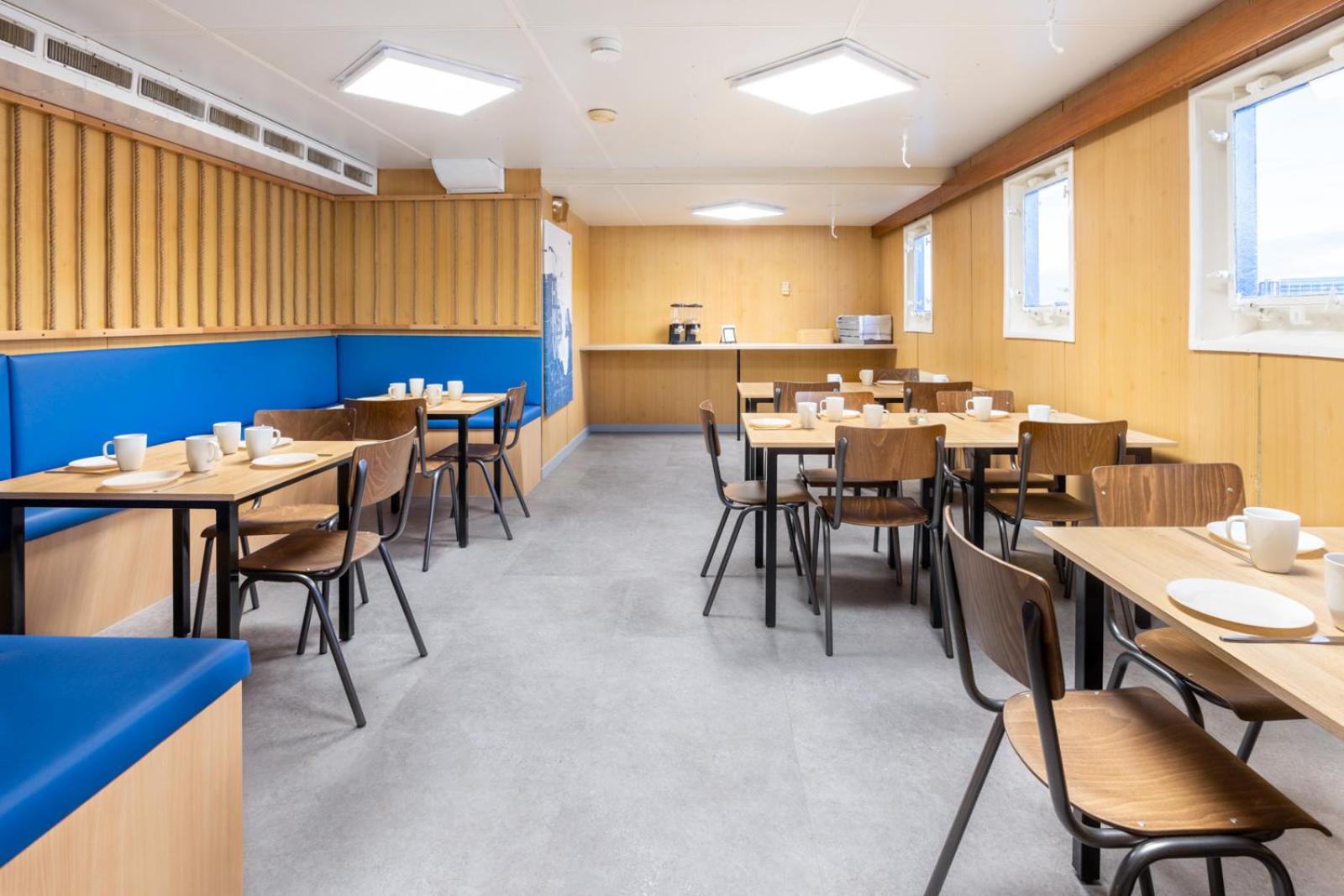 Die Kajüten hatten diesen originellen Charme der zu einem Mannschaftsschiff gehört. Für ein Schiff im Winter gab es eine angenehme, wohlige Wärme. Und der selbstgemachte typische Eiersalat rundete das umfangreiche Frühstück ab.