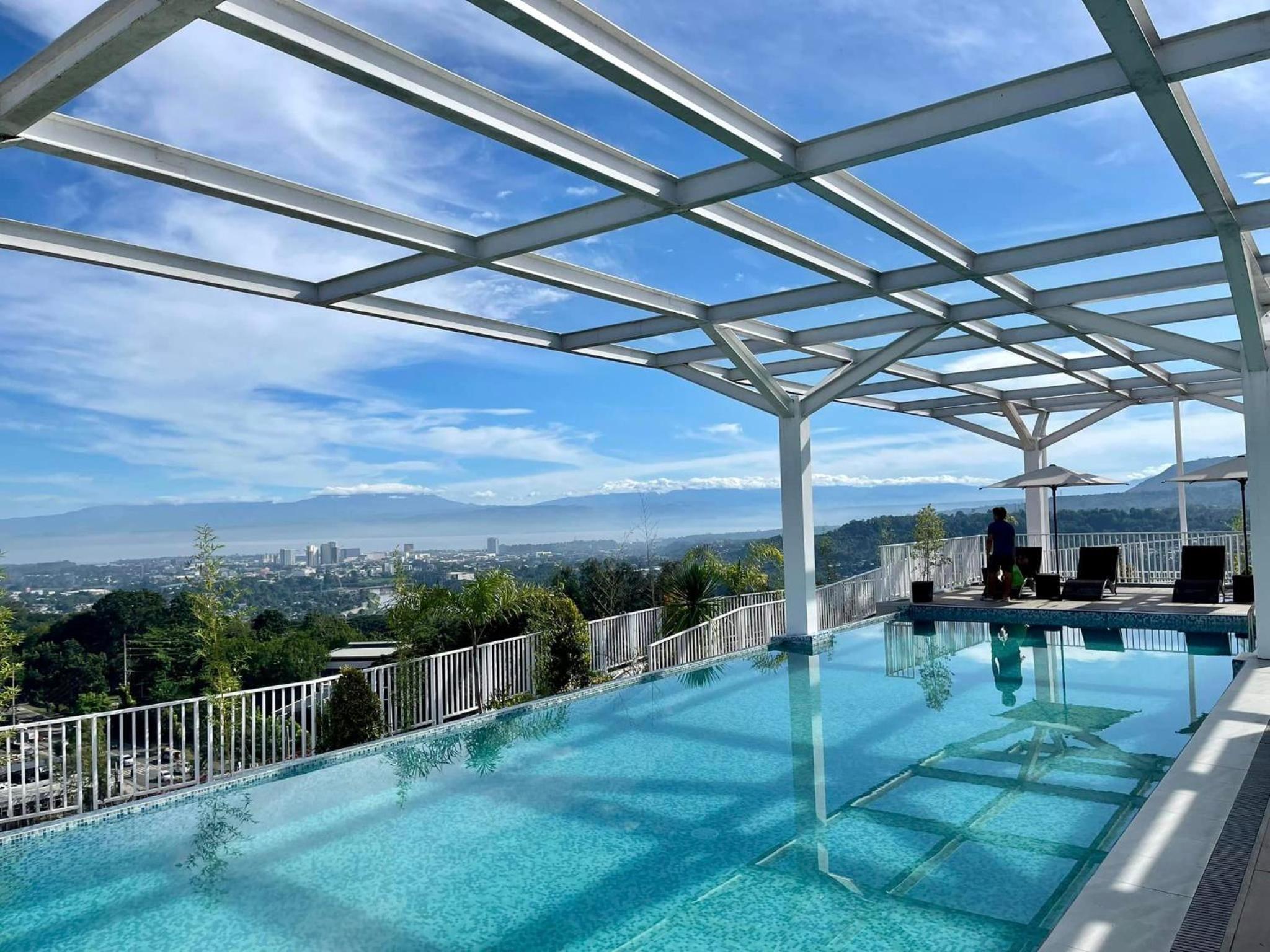Experience a luxurious stay at The Crib at Citta Verde - Primavera City Uptown CDO. Enjoy the refreshing rooftop pool, quiet street views, and a relaxing terrace. The air-conditioned rooms feature a balcony, perfect for taking in the scenery.
