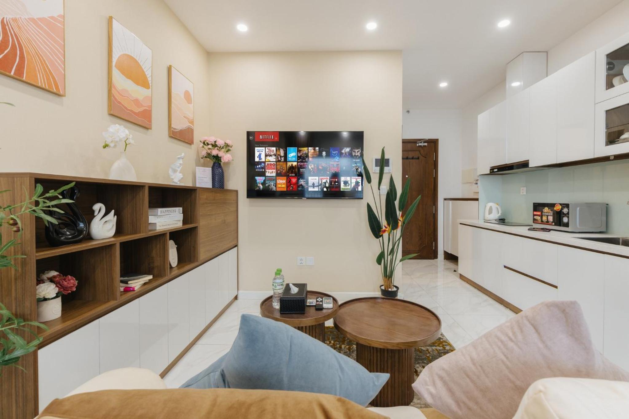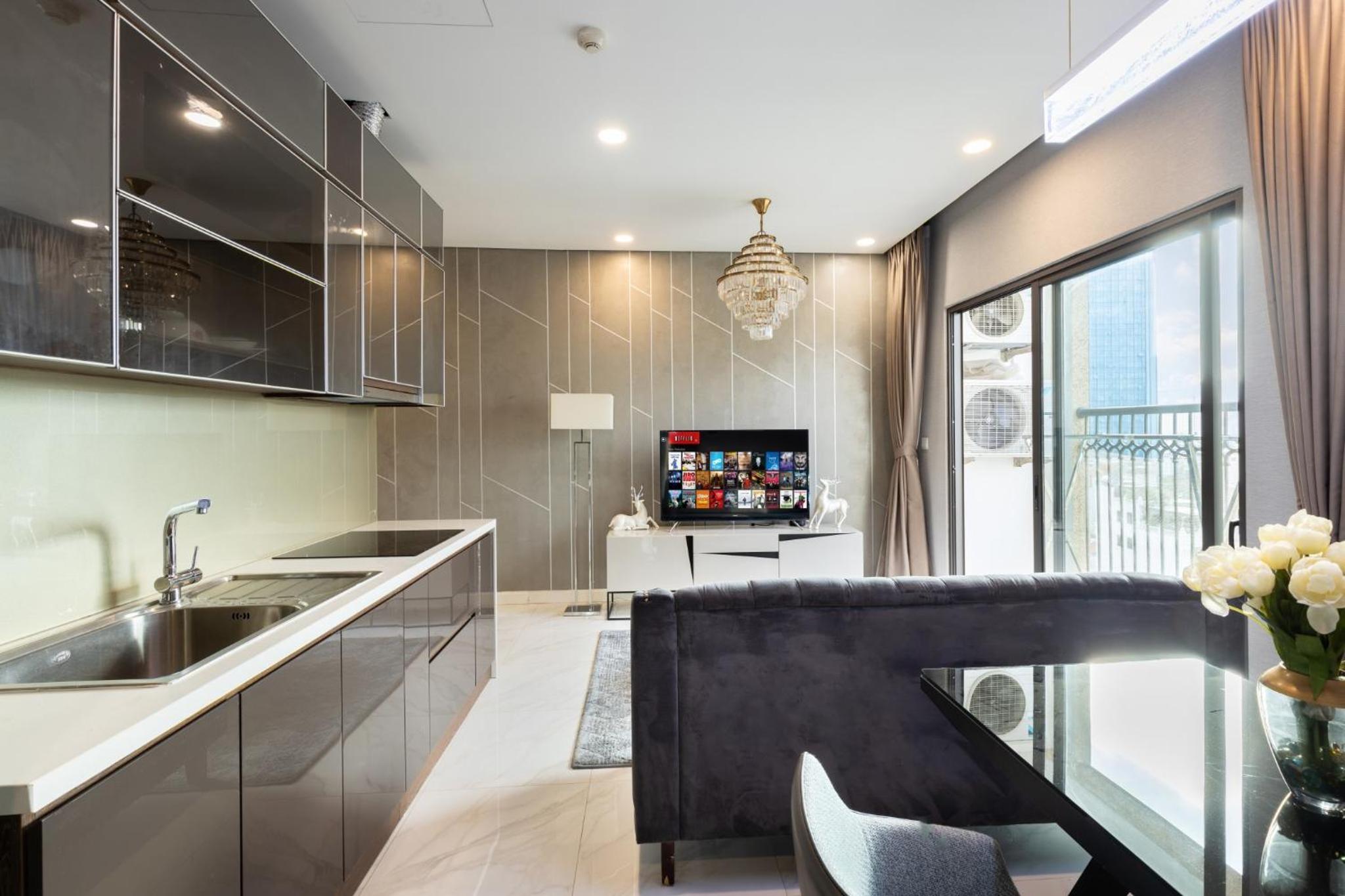 This place was exactly as described. The pictures were exact. There was everything you needed from rice cookers to pans to utensils. Extremely well equipped apartment. Fast elevators. Good security. I can’t say enough good things.