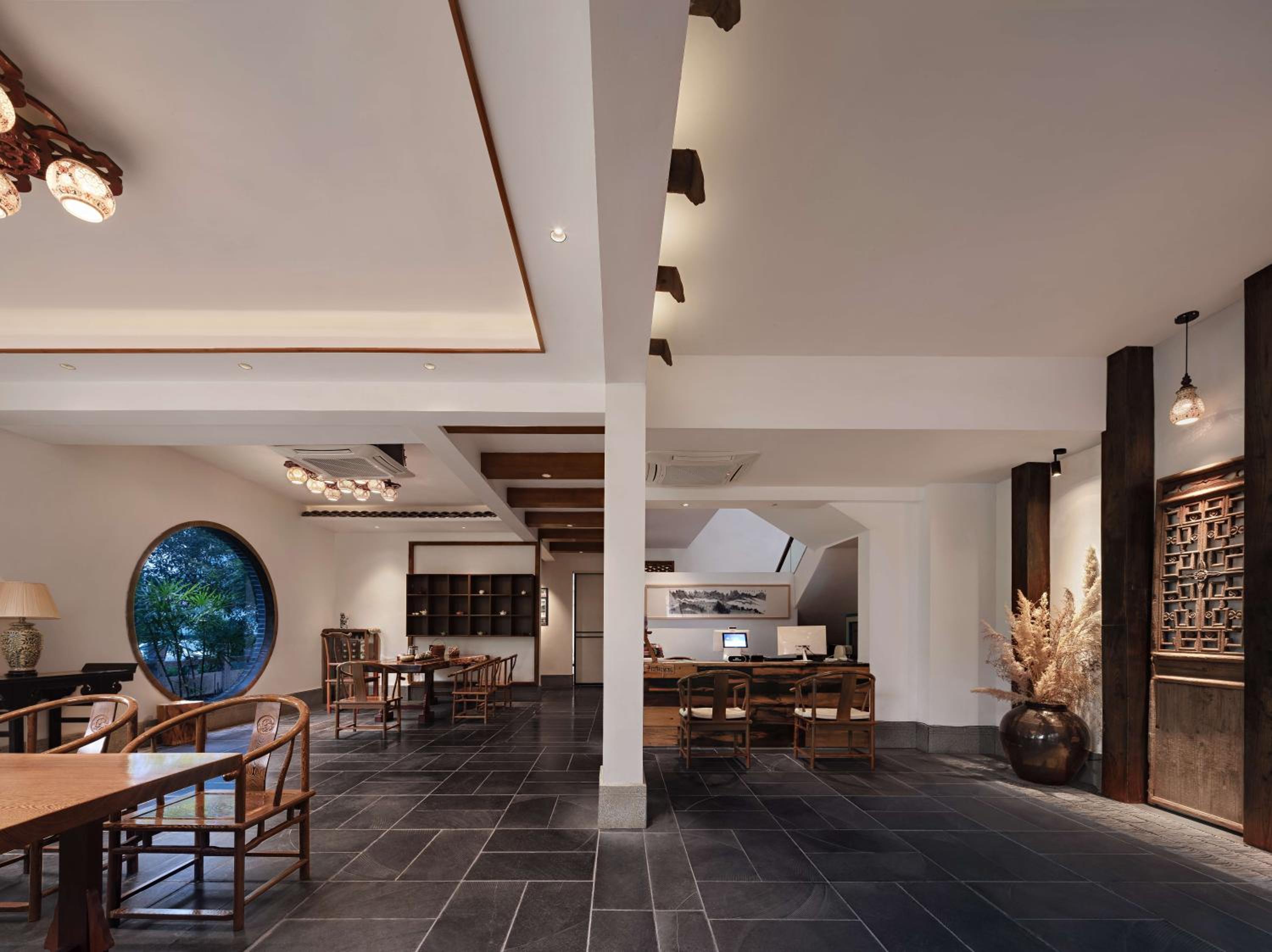 The building is beautiful, located in a small old-style village on the bank of the river. It's very quiet at night. The views from the windows are beautiful, rooms are big and well furnished. The style of the building and the lobby is that of an old Chinese-style house, it has a cozy atmosphere. The staff are friendly and speak English and Mandarin. There's no lift - but that's understandable in that type of building. The staff helped me with my suitcases.