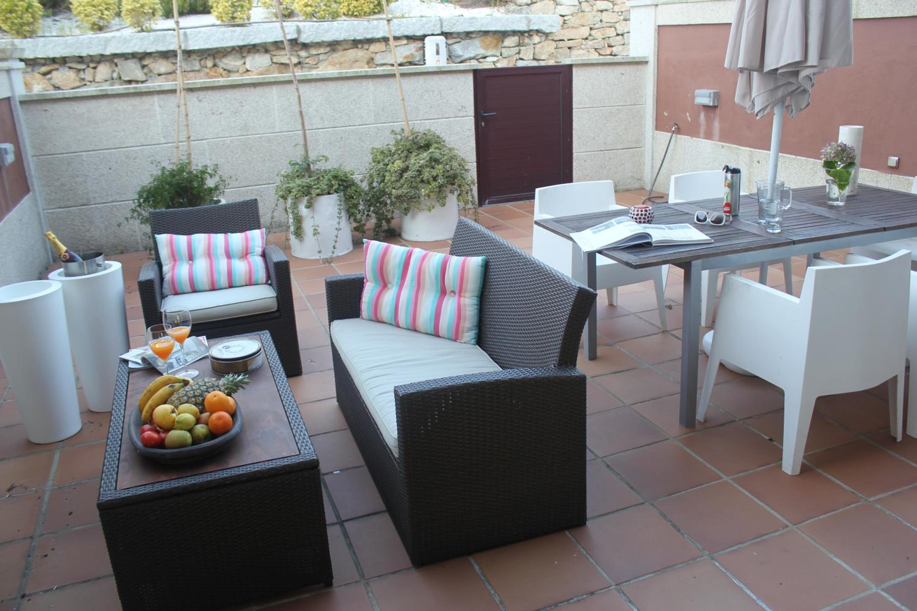 Un chalet de 10 con todas las comodidades, con garaje cerrado para 2 coches que va directo a la vivienda, muy práctico. Tiene varias terrazas, todas espectaculares, sobre todo la que tiene vistas al mar, con toda clase de mobiliario exterior. Camas grandes y muy cómodas, mucho menaje de cocina, electrodomésticos, hilo musical, wifi, aire acondicionado, de todo ... no le falta detalle. Muy espacioso y luminoso. La urbanización está muy cuidada, con paseo para caminar, spa, zona de juegos, cafetería (hacen una tortilla muy buena) y una gran piscina con hamacas, pista de padel y de tenis, etc. Eva, la anfitriona, encantadora y muy atenta, muy flexible en el horario de entrada y salida, nos ha dejado estar más tiempo, todo un detalle que se agradece mucho. Enfrente de la playa de Raeiros a la que puedes ir caminando. Mucha tranquilidad en el complejo en esta época, ideal para desconectar. Nos hemos quedado con las ganas de estar más días. Totalmente recomendable. Repetiremos seguro.